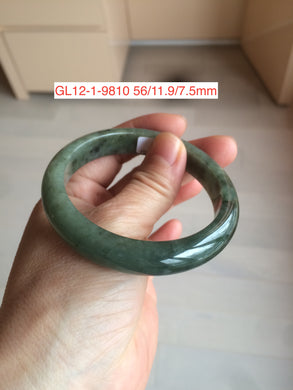 56-57mm Type A 100% Natural dark green/black Jadeite Jade bangle (with defects) group GL12
