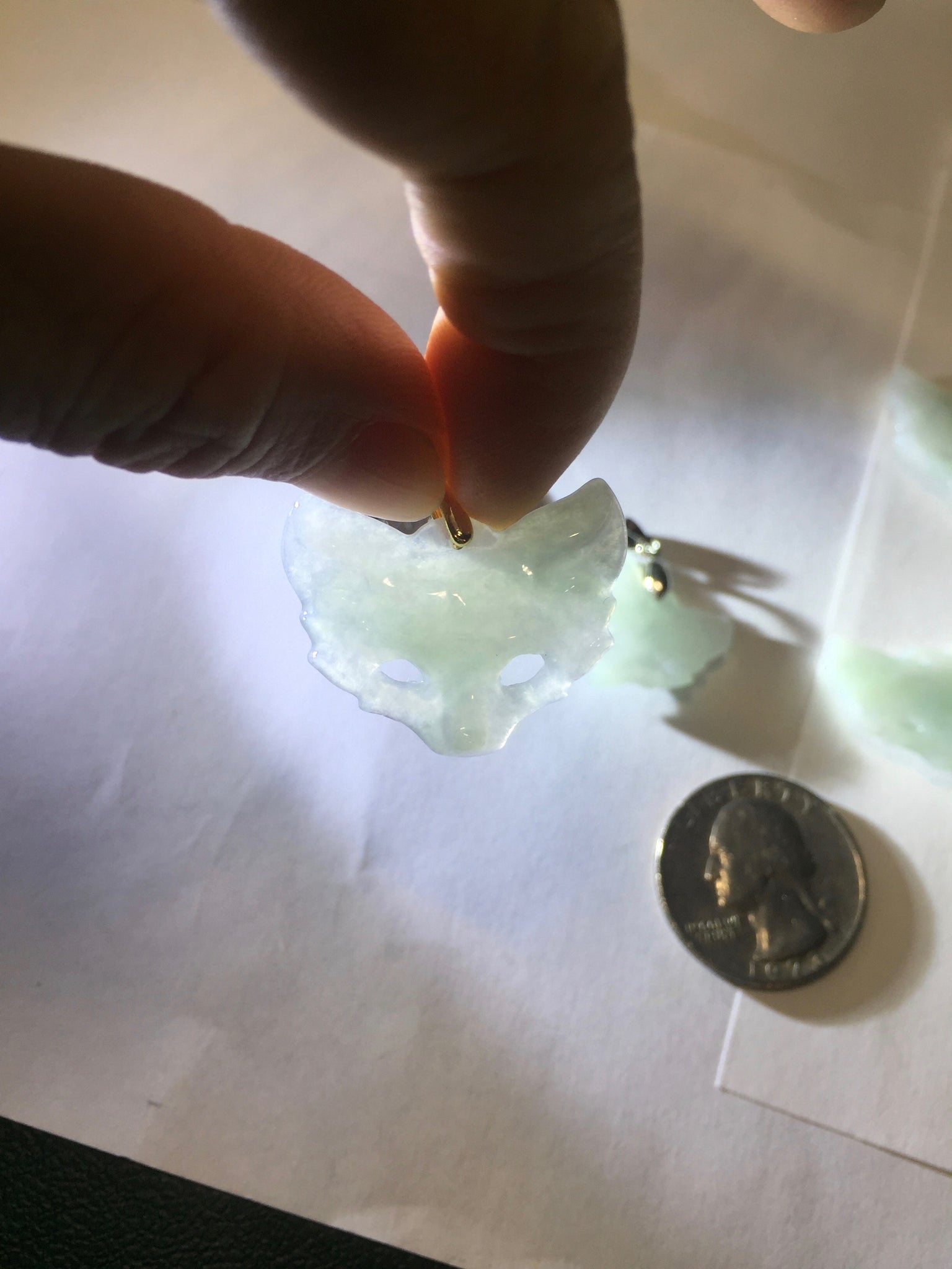 100% natural type A white light green jadeite jade fox mask pendant necklace PD101