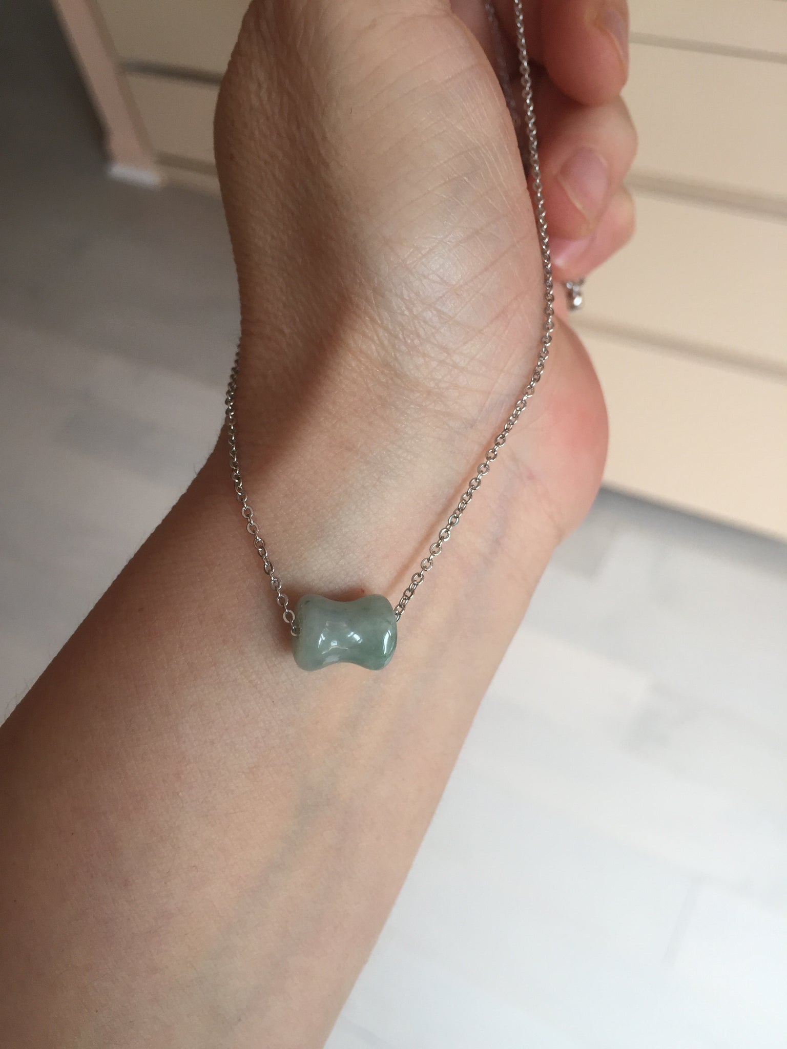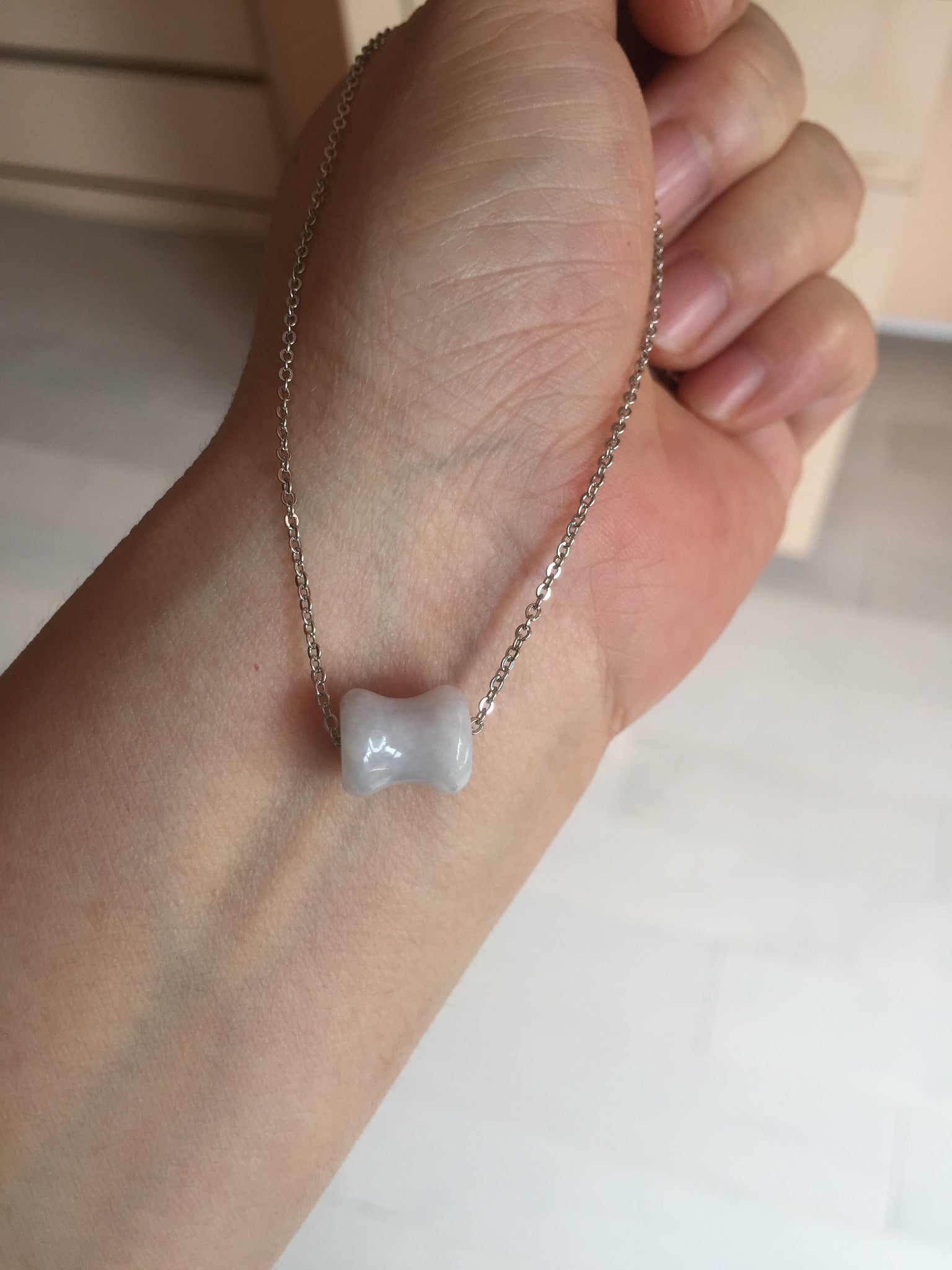 Jadeite Jade waist drum/yoyo pendant. Waist drum(腰鼓, 腰包鼓) means a bulging wallet, having money. YoYo homonym 有有/悠悠, means have everything you want, nothing lacking. Relaxation and peaceful mind.