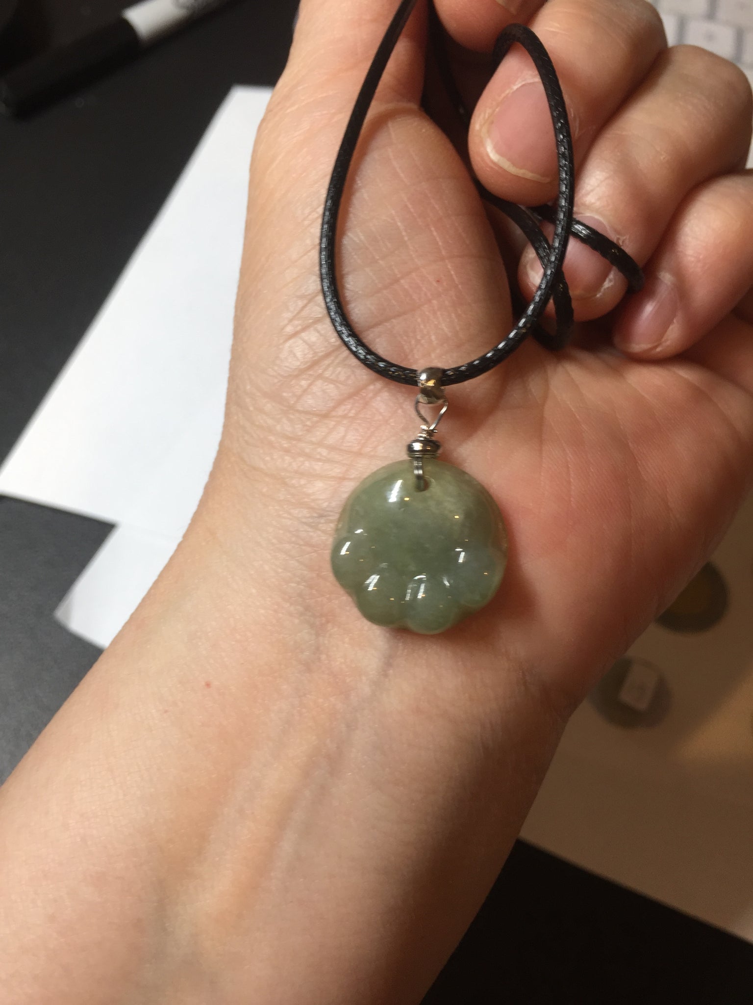 Pendant holder and chain: Alloy. As the example in the photos. The price doesn't include this. I give them as a gift. Thanks.