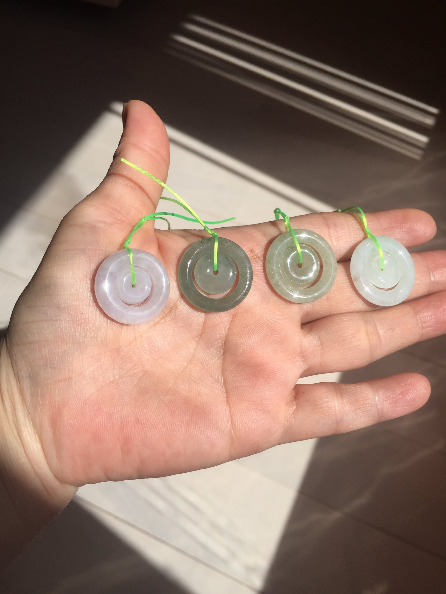 21-22mm Type A 100% Natural light purple/oily light green/gray Jadeite Jade concentric circle safety Guardian ring Pendant (子母扣,同心环) group PB45