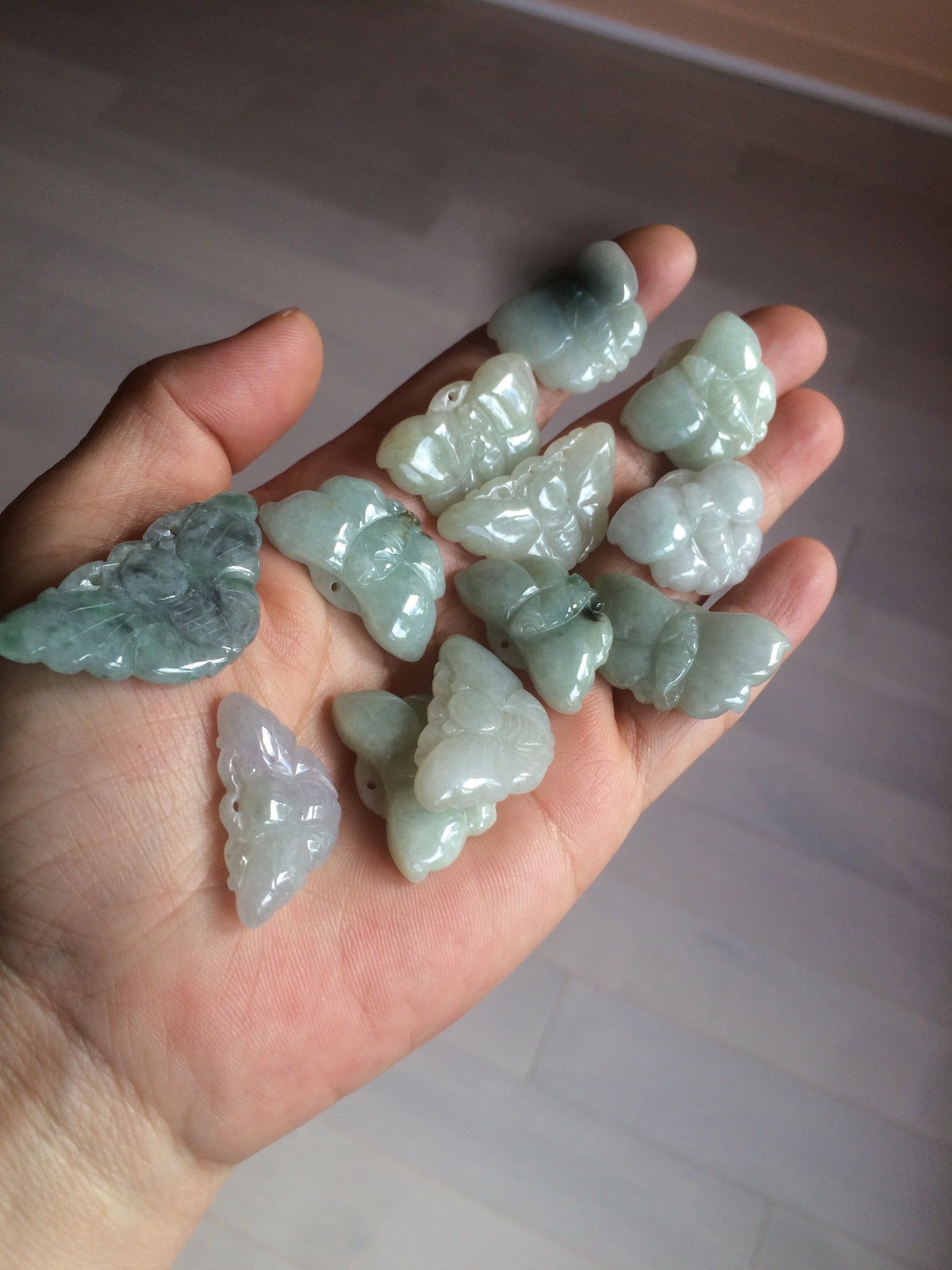 • Load image into Gallery viewer, 100% Natural light green 3D Jadeite Jade butterfly pendant KS99