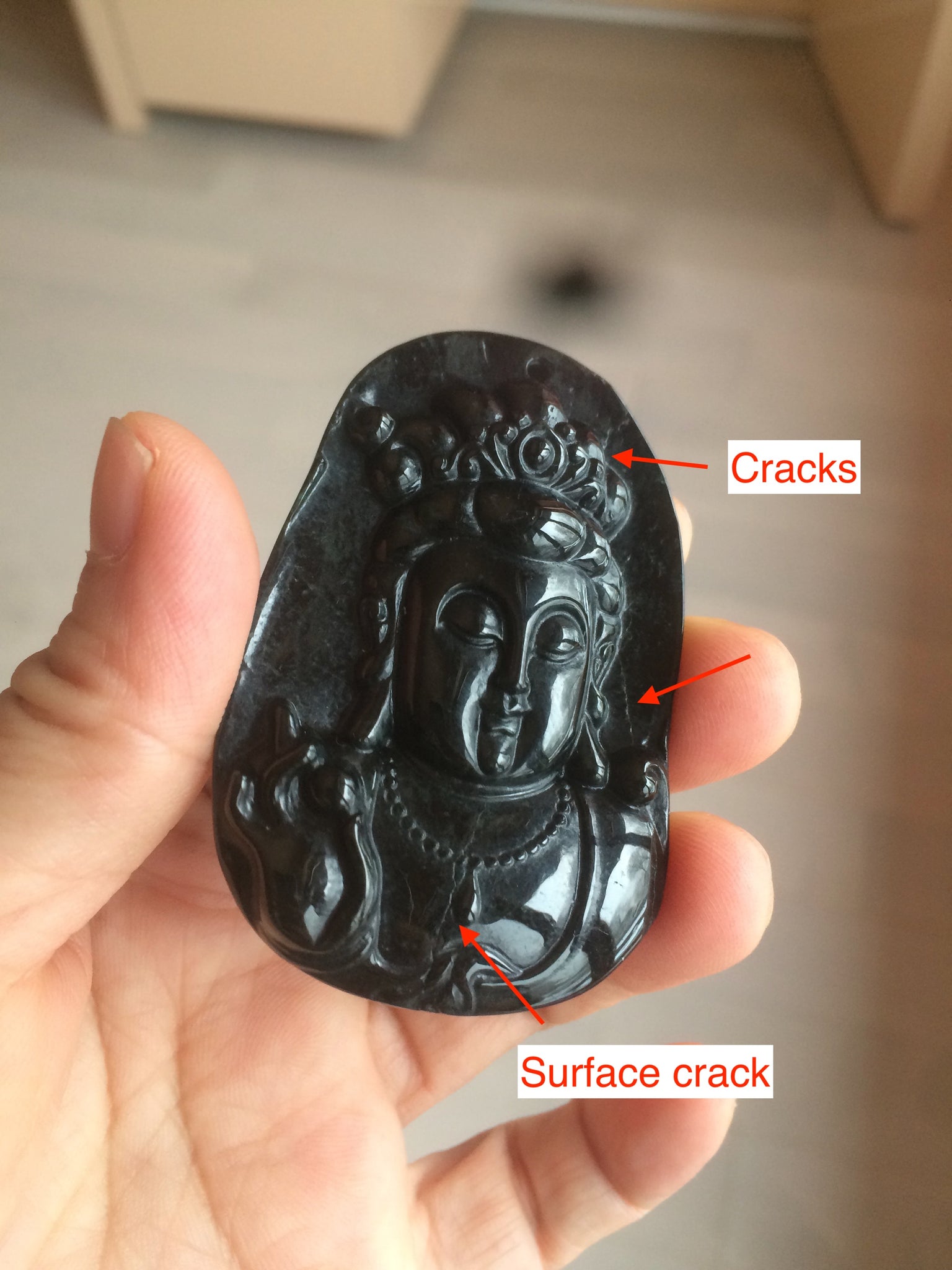 100% Natural type A black jadeite jade(墨翠, mocui) Guanyin pendant BG31-2