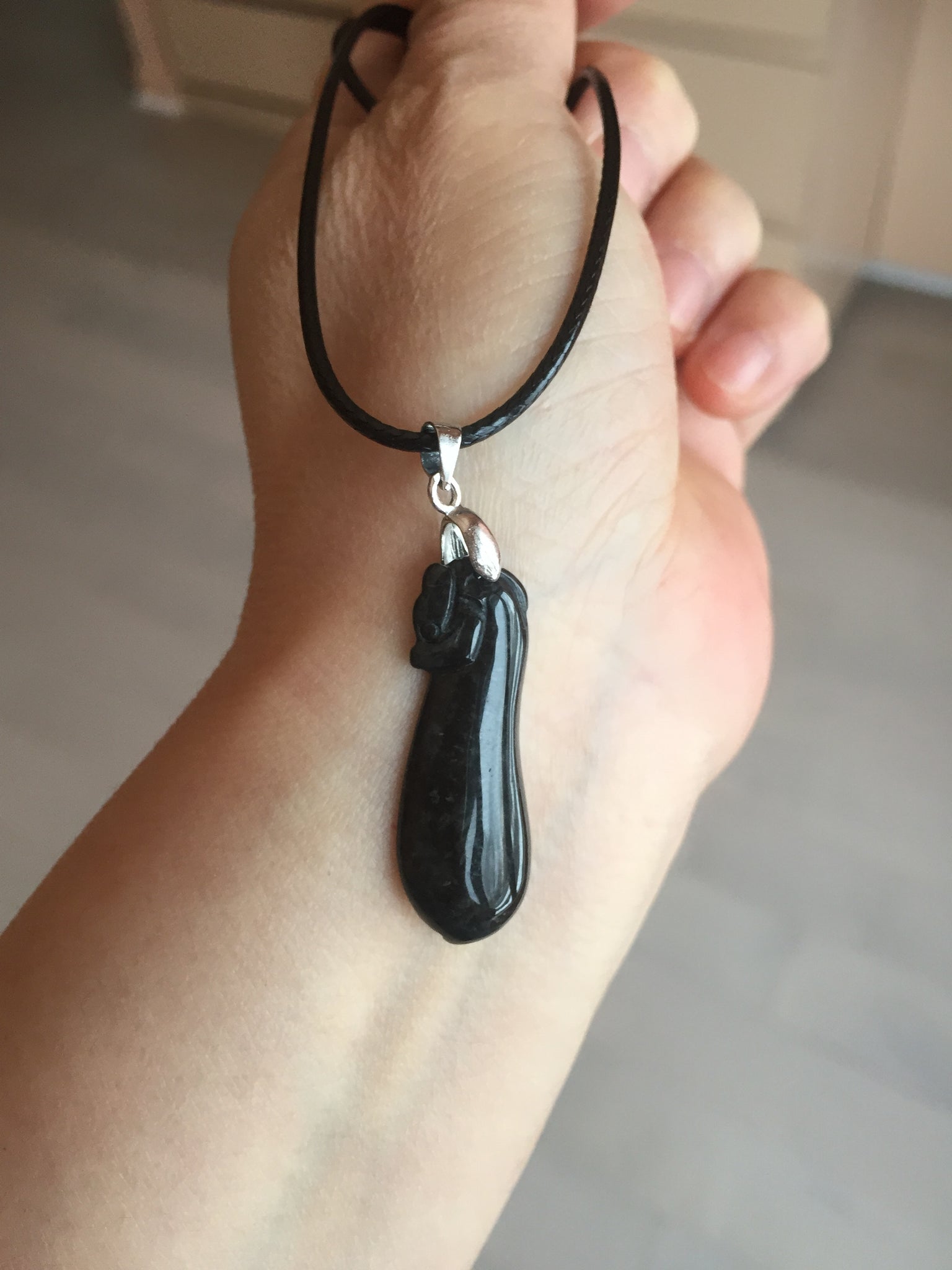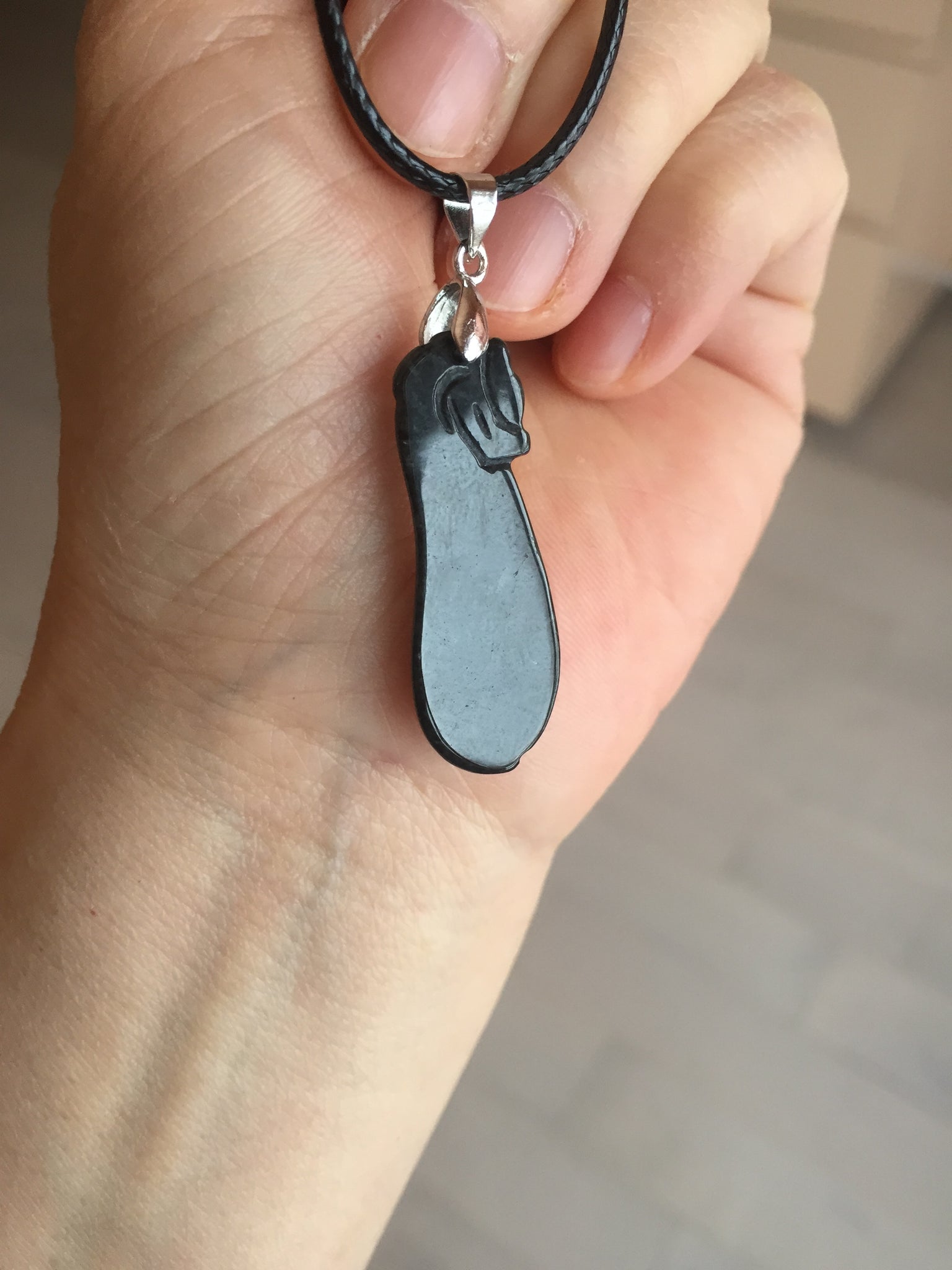 Note: This is black jadeite jade(wuji. 乌鸡). This is a special kind of Jade called "black-bone chicken". People believe this kind of jade can ward off evil spirits and attract wealth.