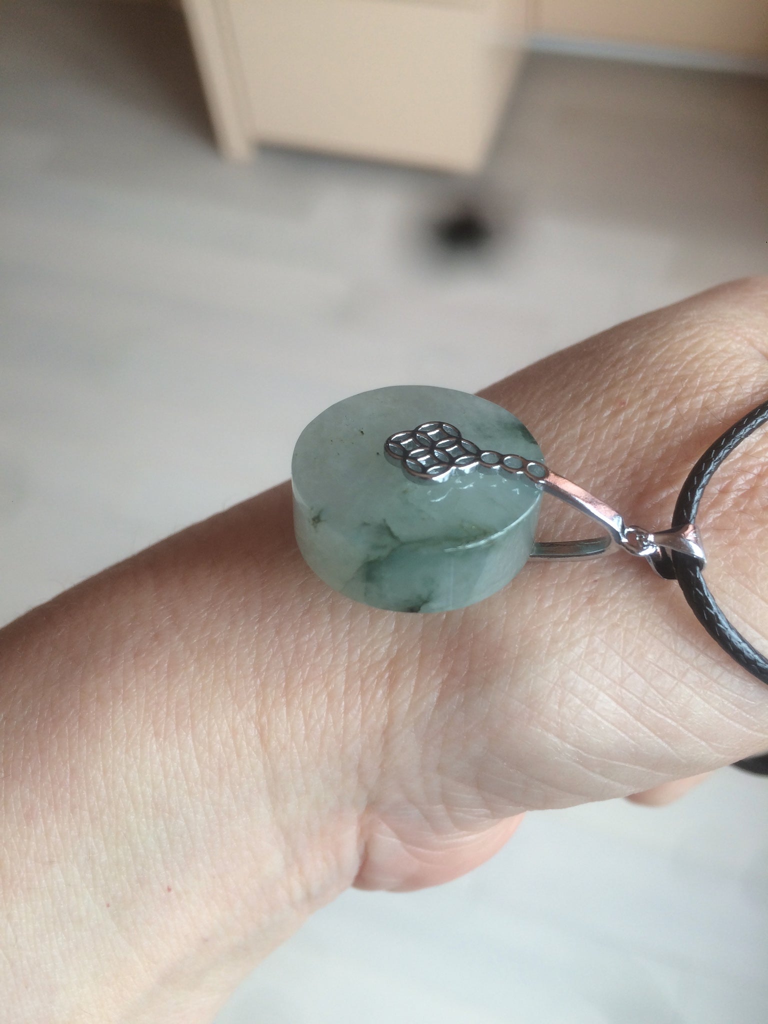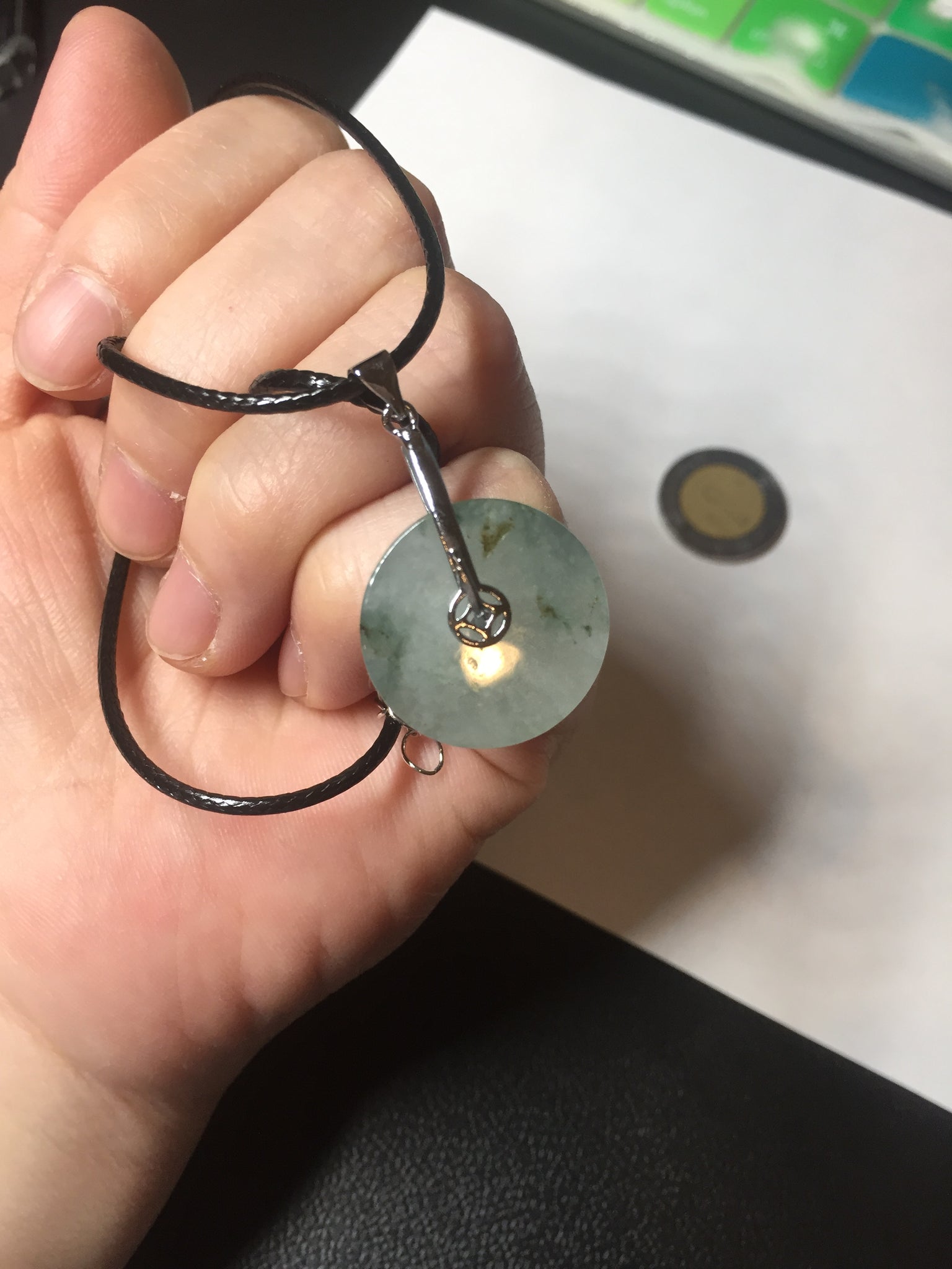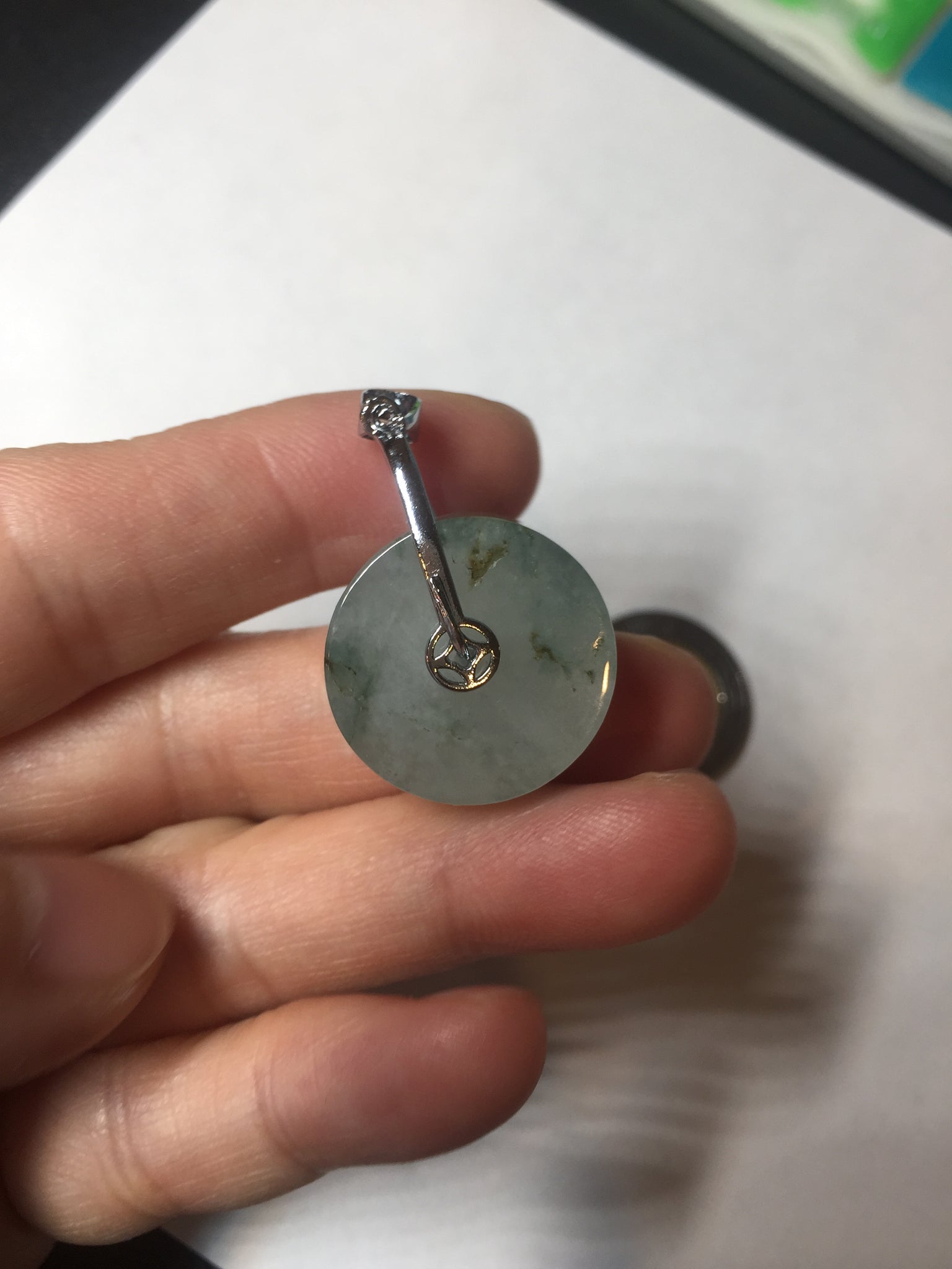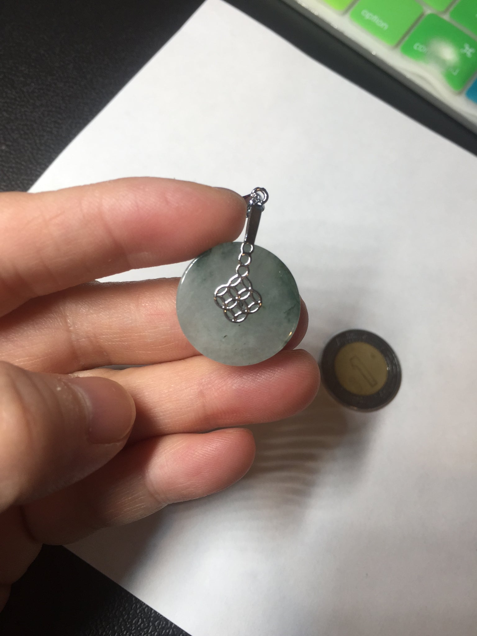 冰绿飘花翡翠平扣,这个是平扣,不是平安扣。