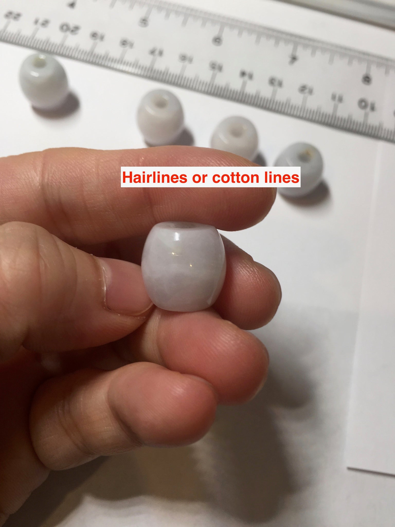 No 5 has cracks. All more or less has hairline or cotton lines or spots. If there is a hit of purple color, the purple is super light. Lighter than in photos.