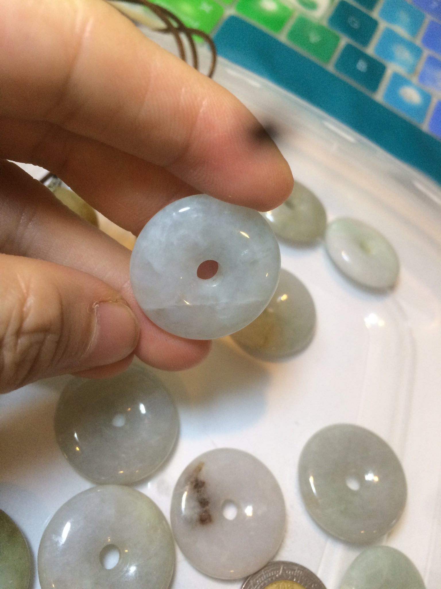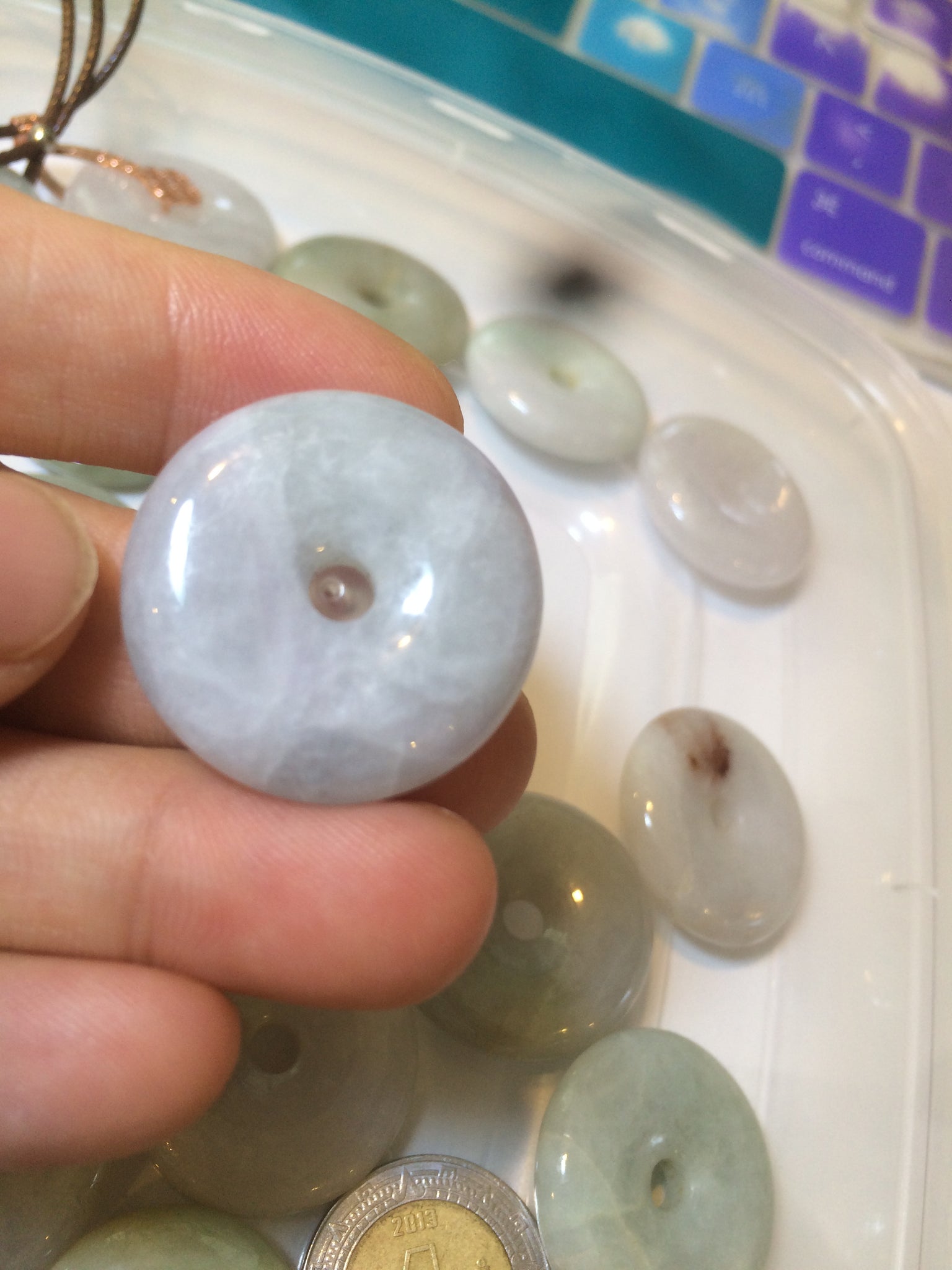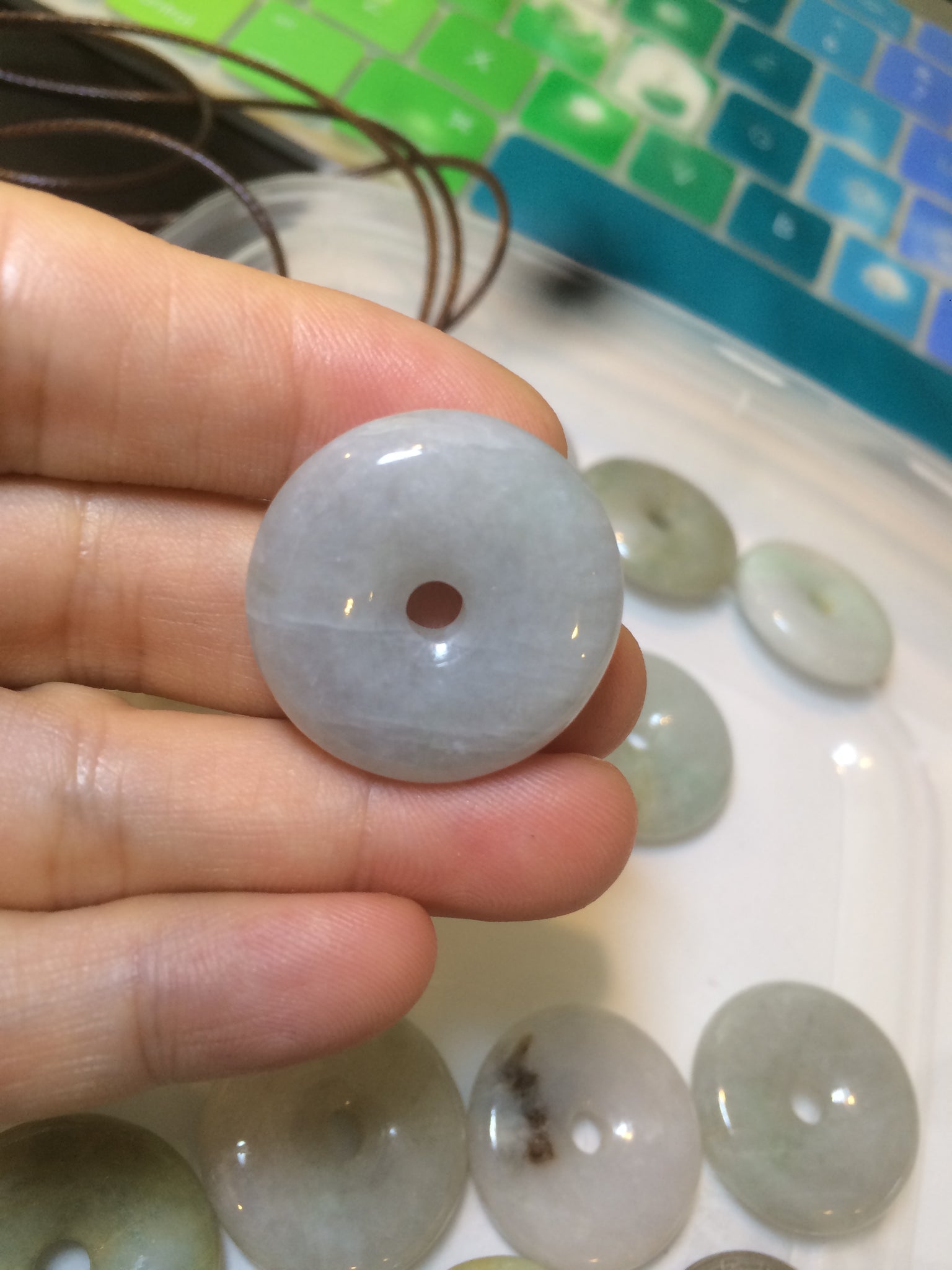24-25mm Type A 100% Natural light green/white/purple/red Jadeite Jade Safety Guardian Button donut Pendant group AK39 (Add-on items)