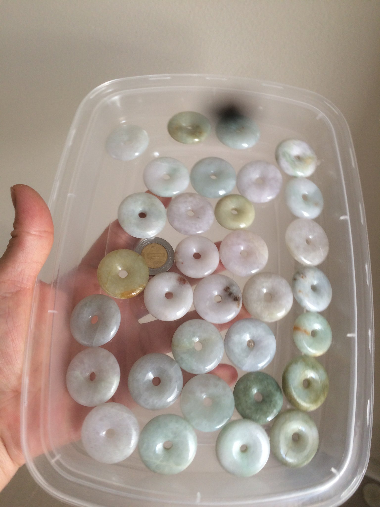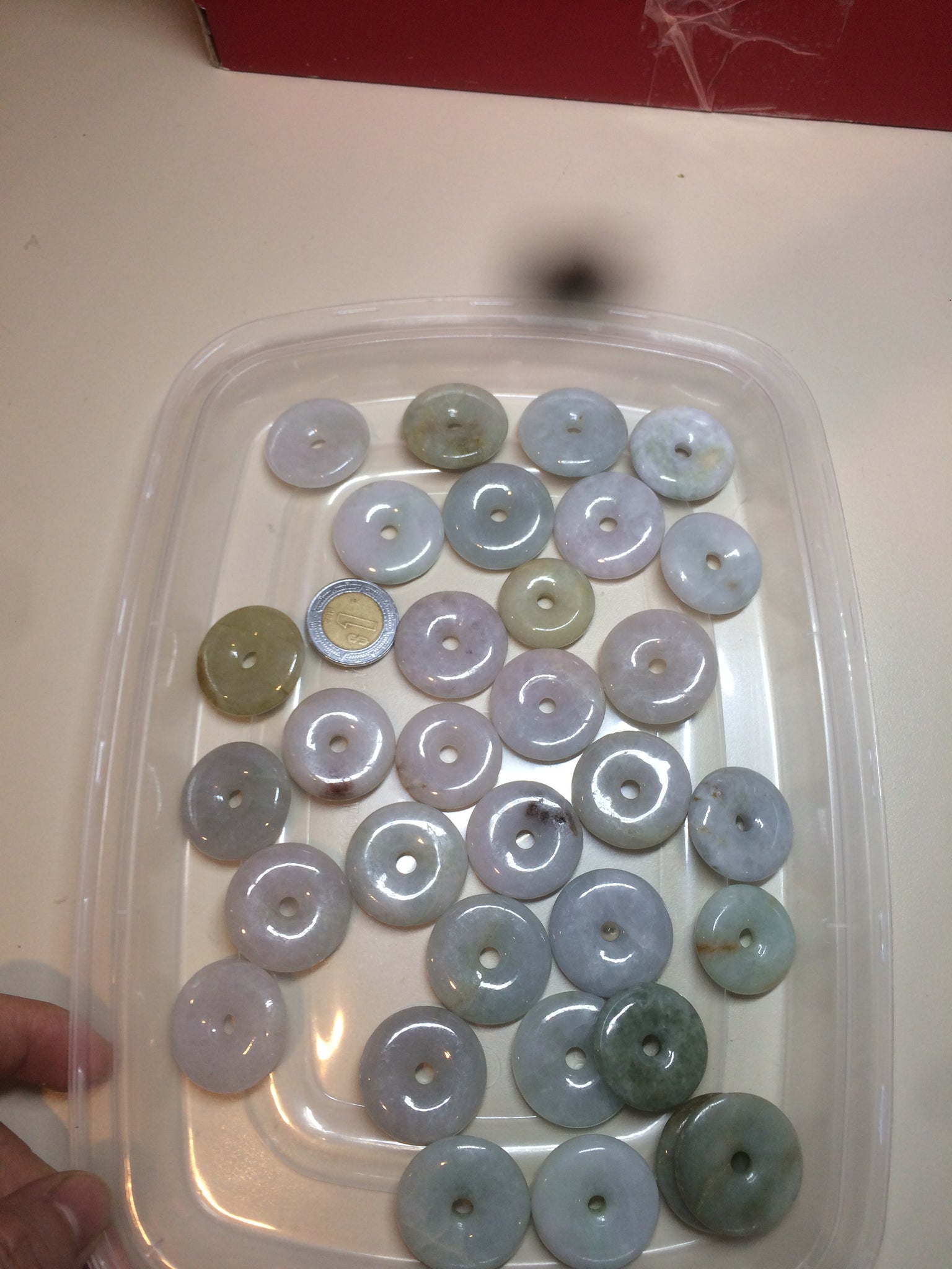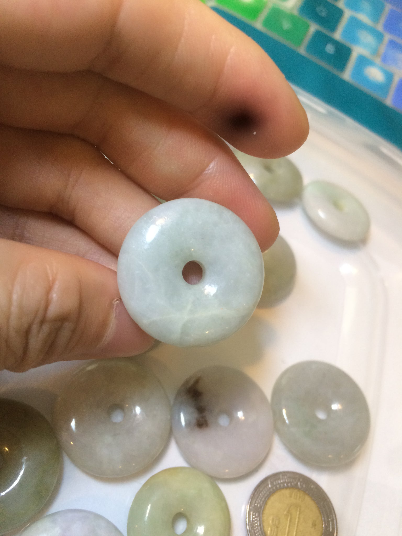 24-25mm Type A 100% Natural light green/white/purple/red Jadeite Jade Safety Guardian Button donut Pendant group AK39 (Add-on items)