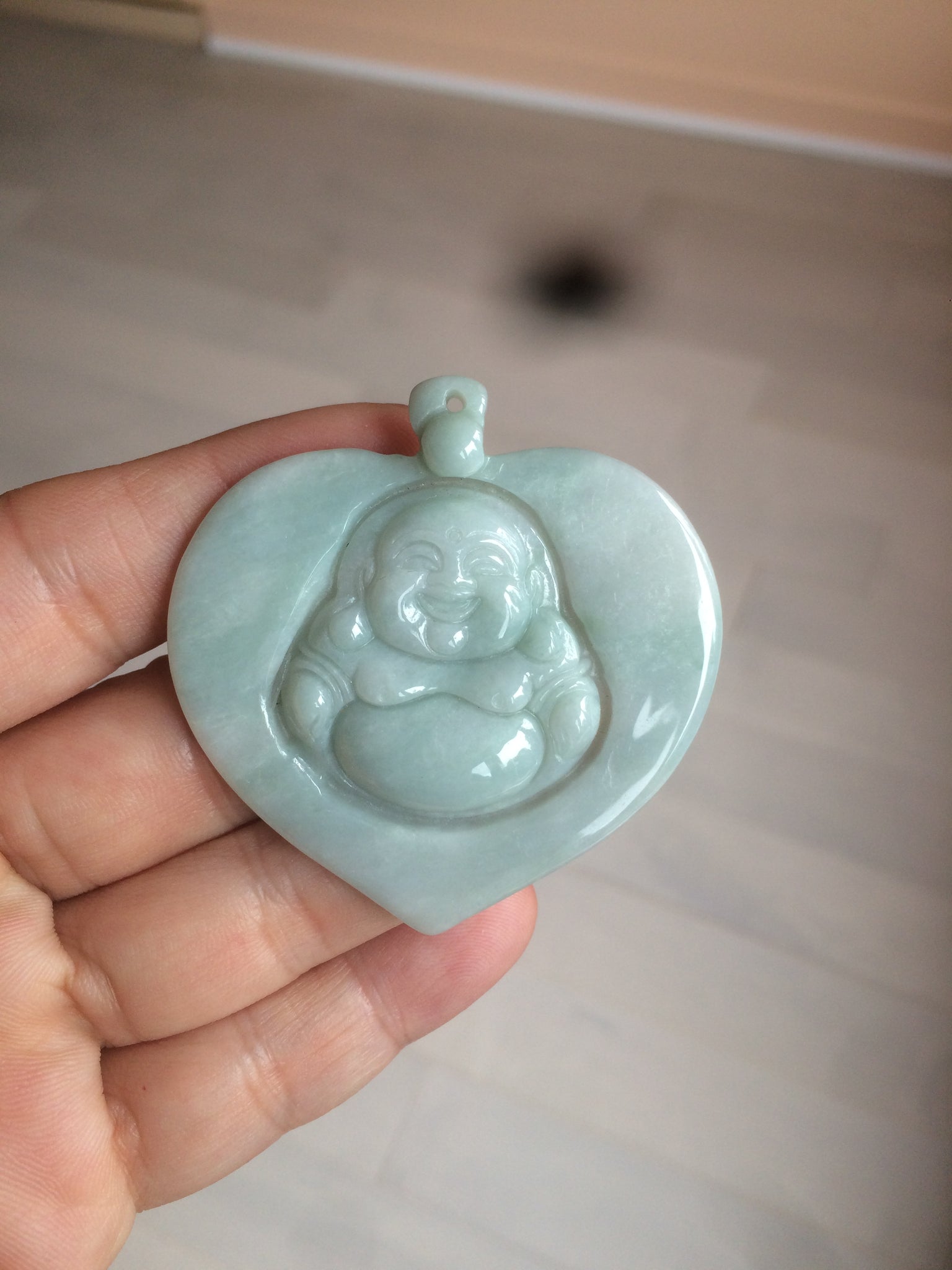 There is some wax on the edge of the carving. It is normal in carved jadeite jewelry as sometimes the edge is not easy to polish after being carved (risk of the break when polished) or not easy to polish well. Wax is used to make it shine.
