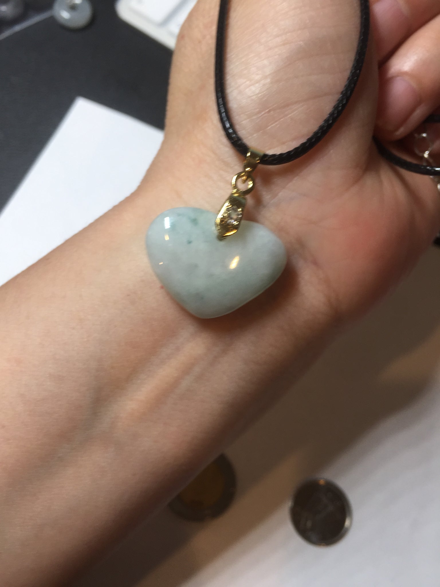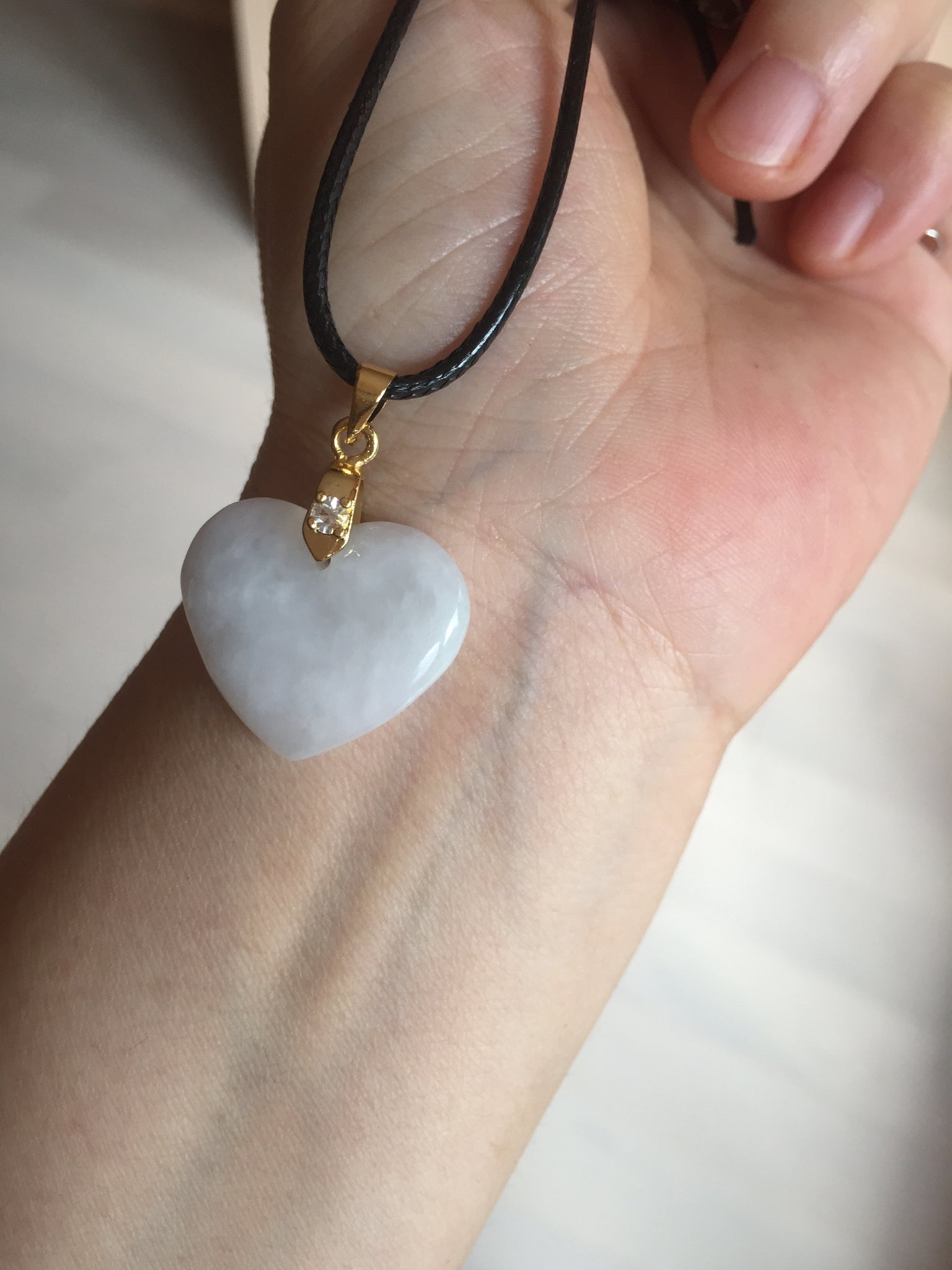 No crack. Some cotton lines, cotton areas, and spots. The heart shape may not be perfect.