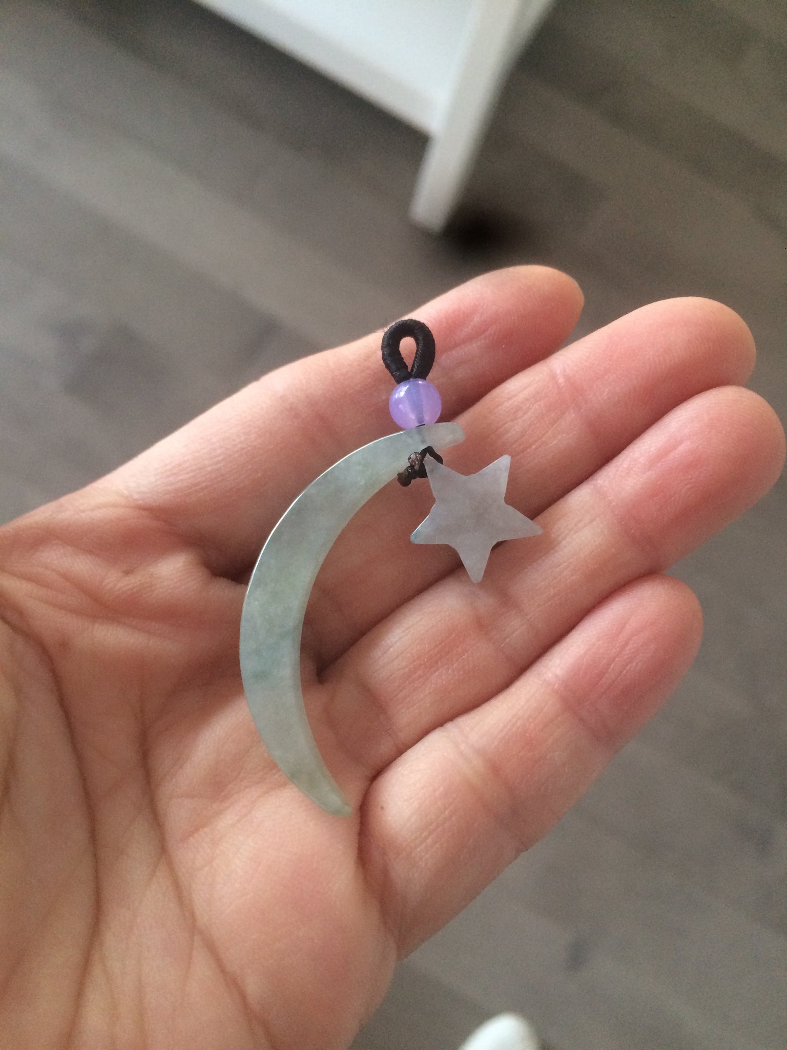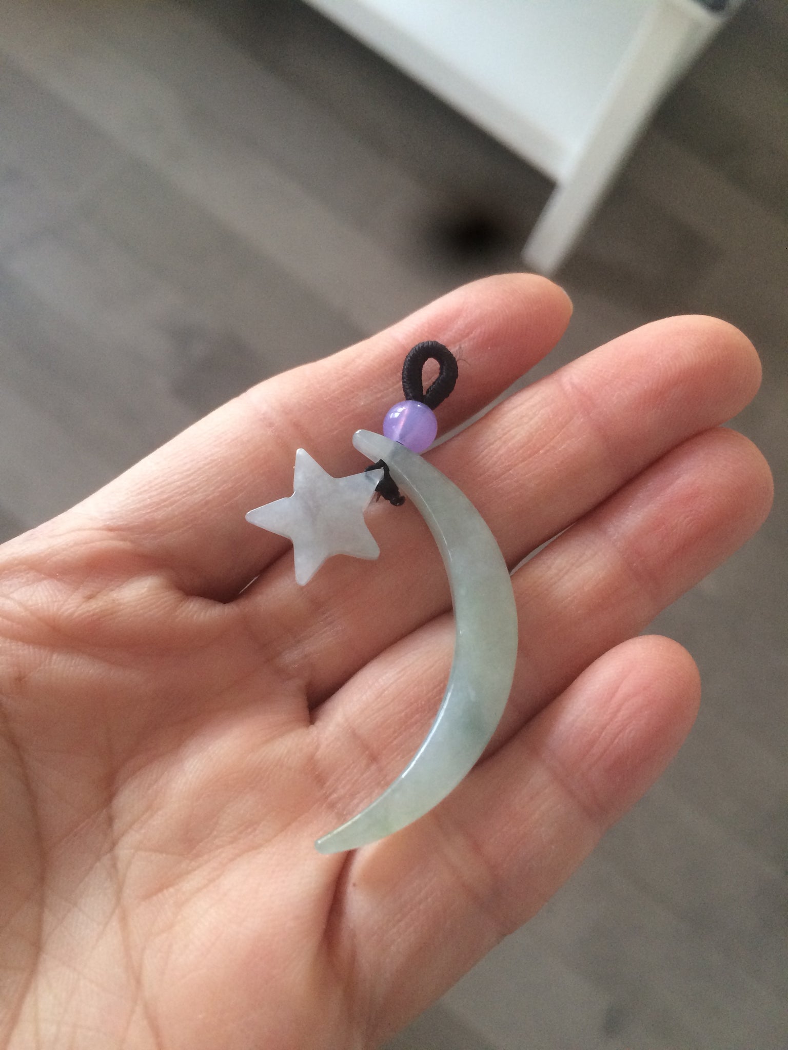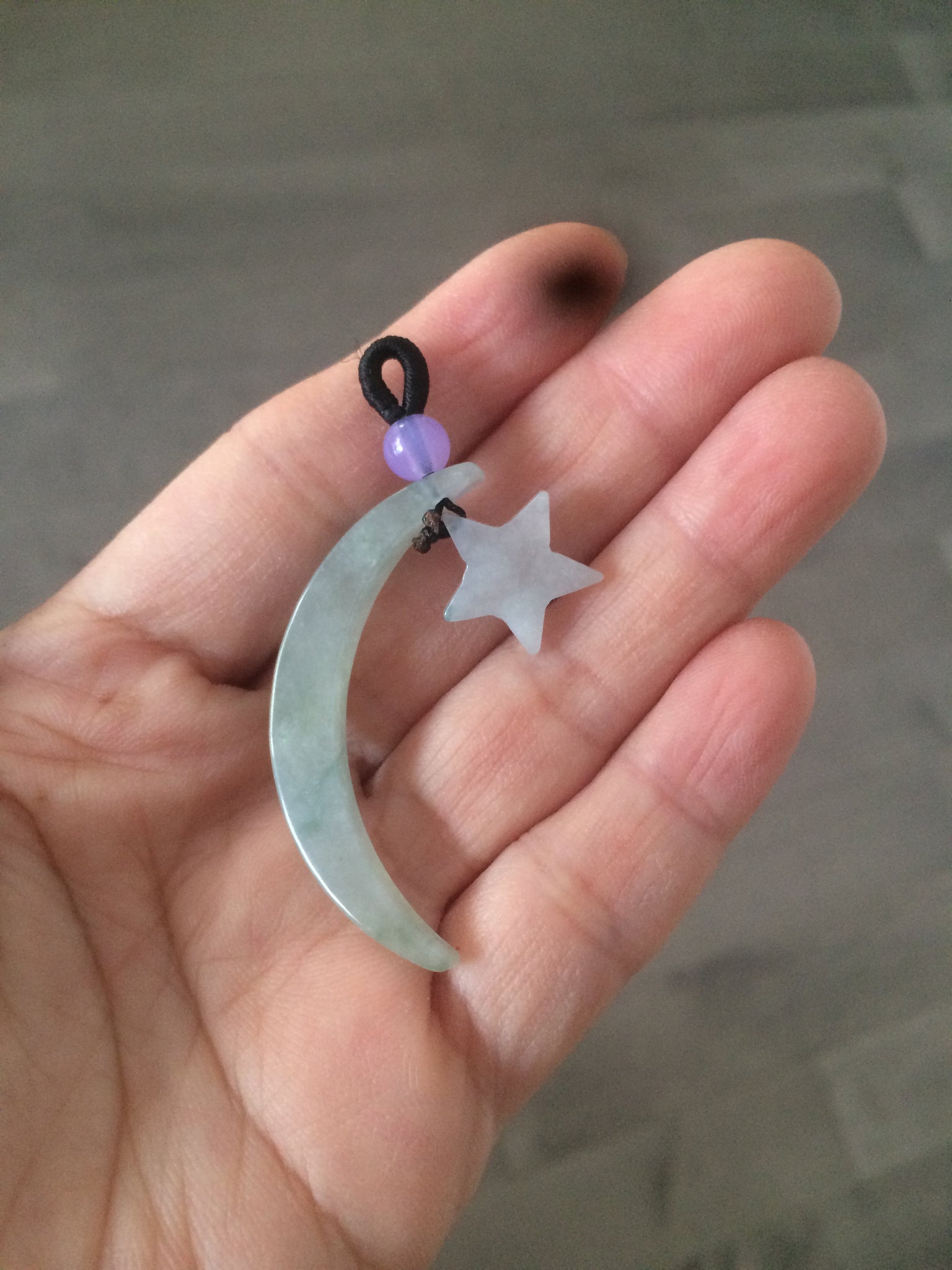 Type A 100% Natural light green jadeite Jade moon and star Pendant necklace Wp-2