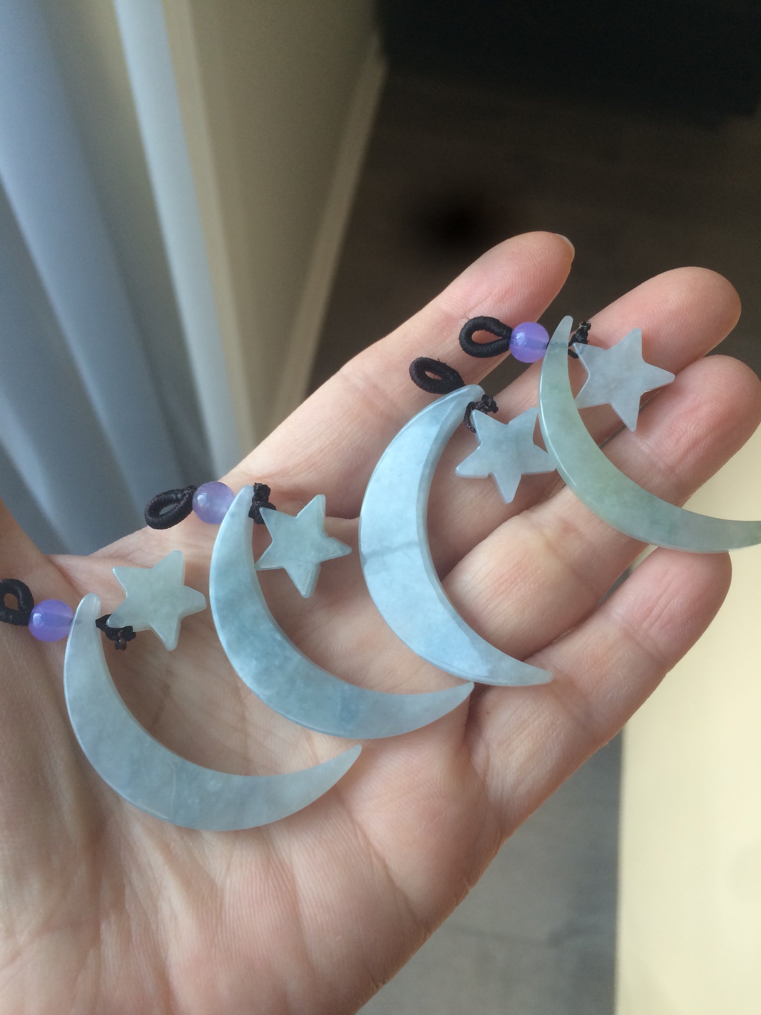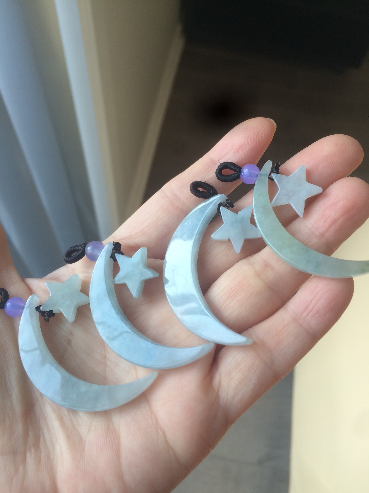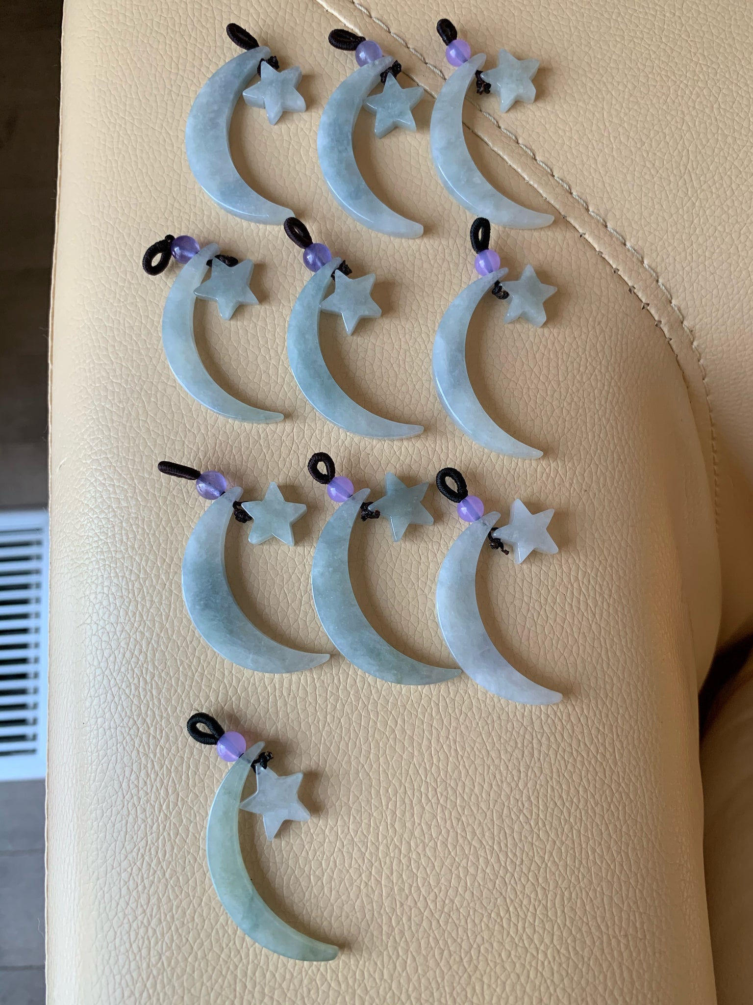 Type A 100% Natural light green jadeite Jade moon and star Pendant necklace Wp-2