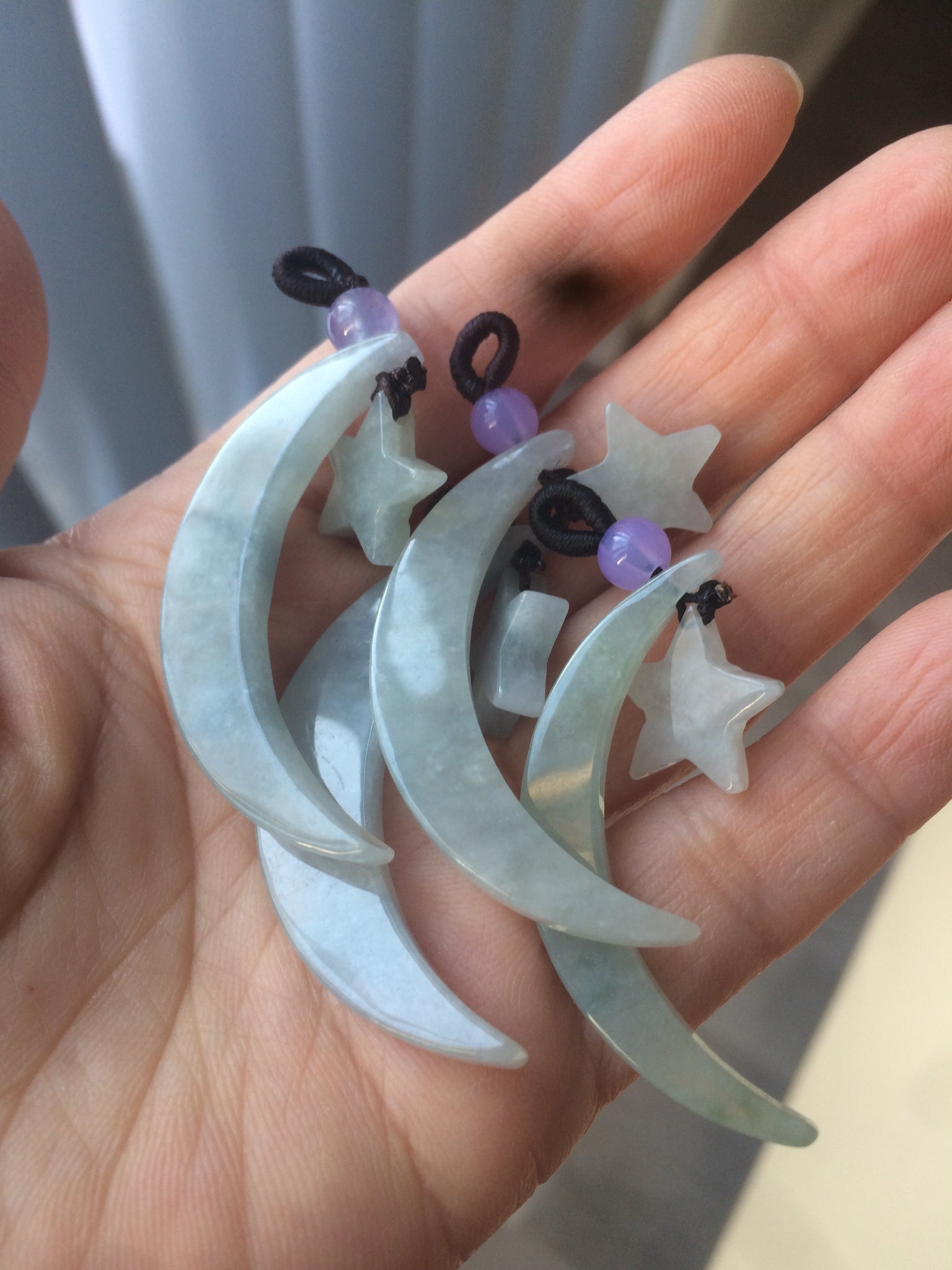 No crack. No hairline. Moon and star are 100% natural jadeite jade. Without a certificate but 100% natural jadeite jade guaranteed.