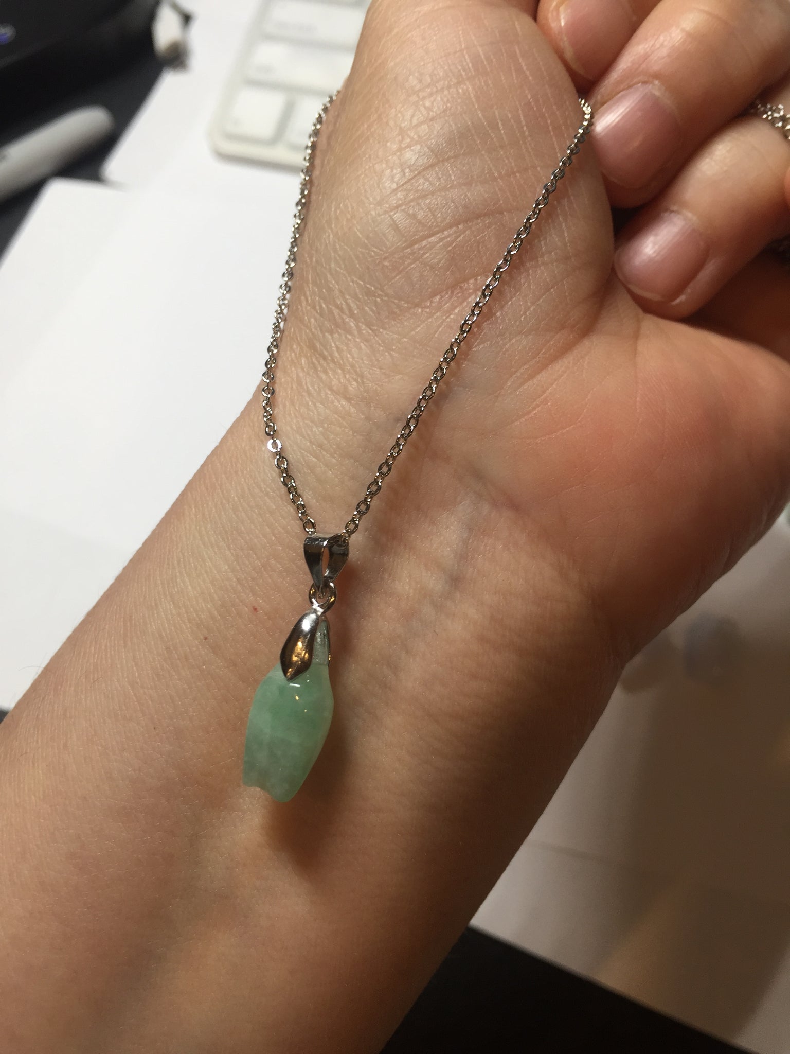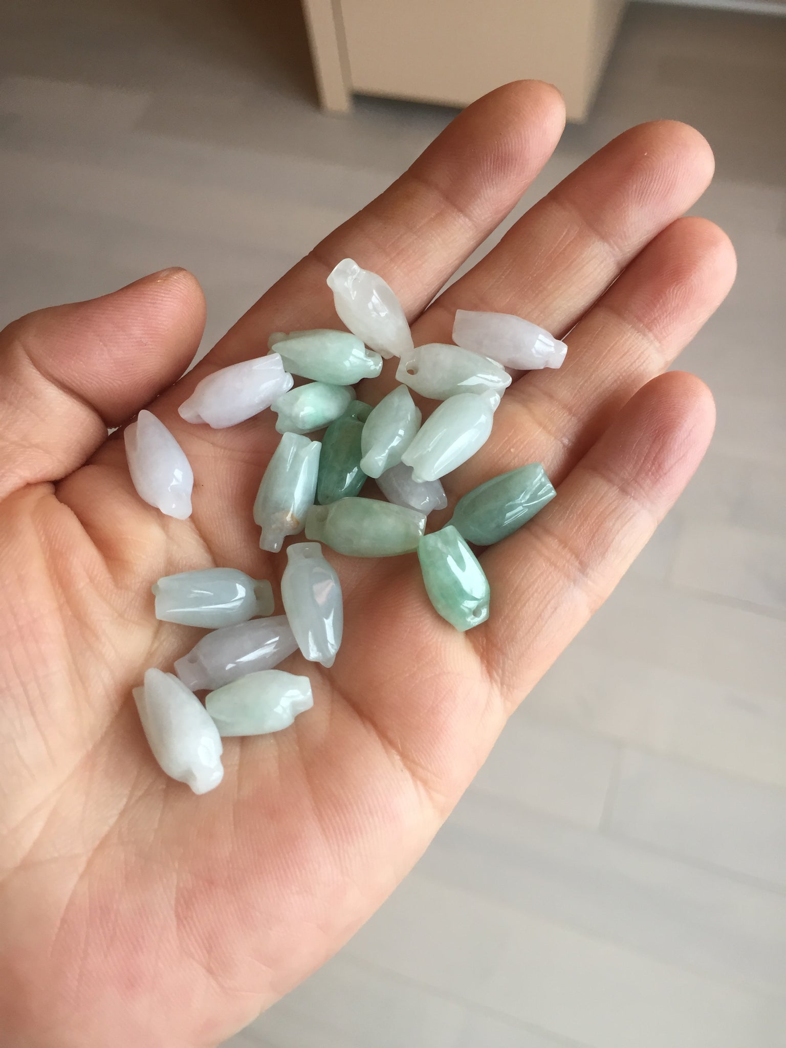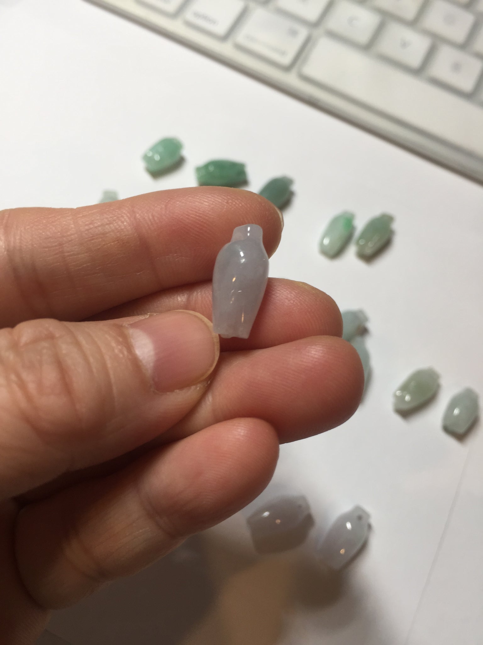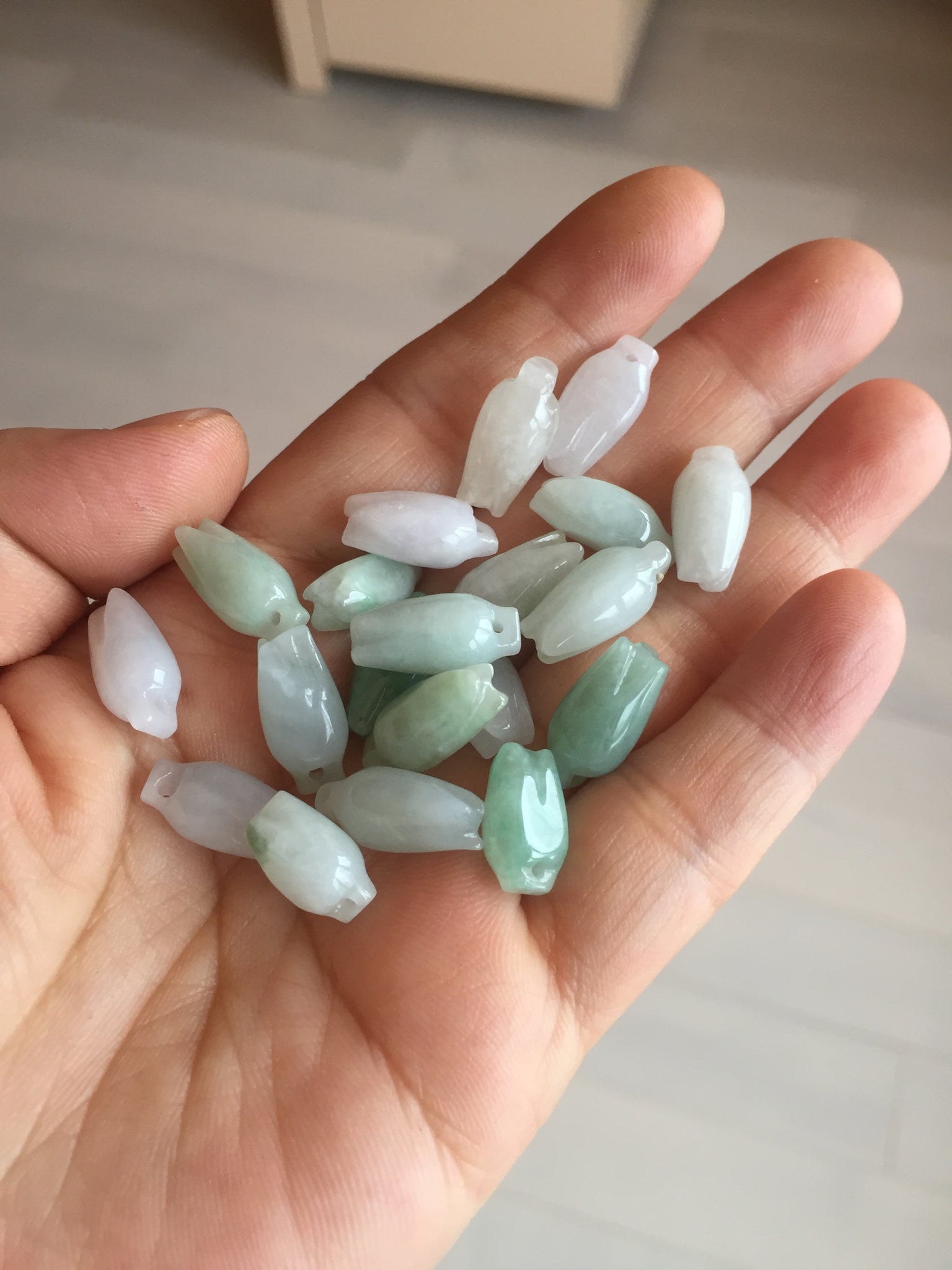• Load image into Gallery viewer, Type A 100% Natural icy watery light sunny green/white/purple jadeite Jade magnolia buds Pendant BF153