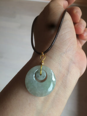 25mm 100% Natural light green/blue/gray/yellow jadeite Jade Safety Guardian Button(donut) Pendant AR101