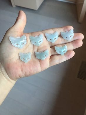 100% natural type A white light green jadeite jade fox mask pendant necklace PD101