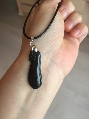 100% Natural type A icy watery dark green gray black Guatemala jadeite RuYi(如意) pendant BP185
