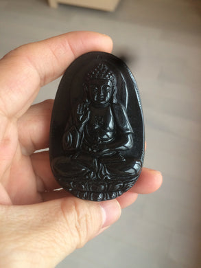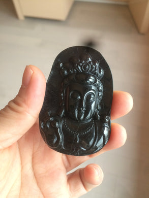 100% Natural type A black jadeite jade(墨翠, mocui) Guanyin pendant BG31-2