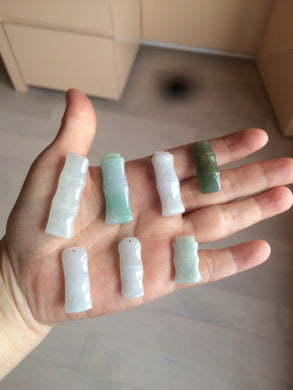100% Natural type A green/white/purple Jadeite Jade bamboo pendant group AC81