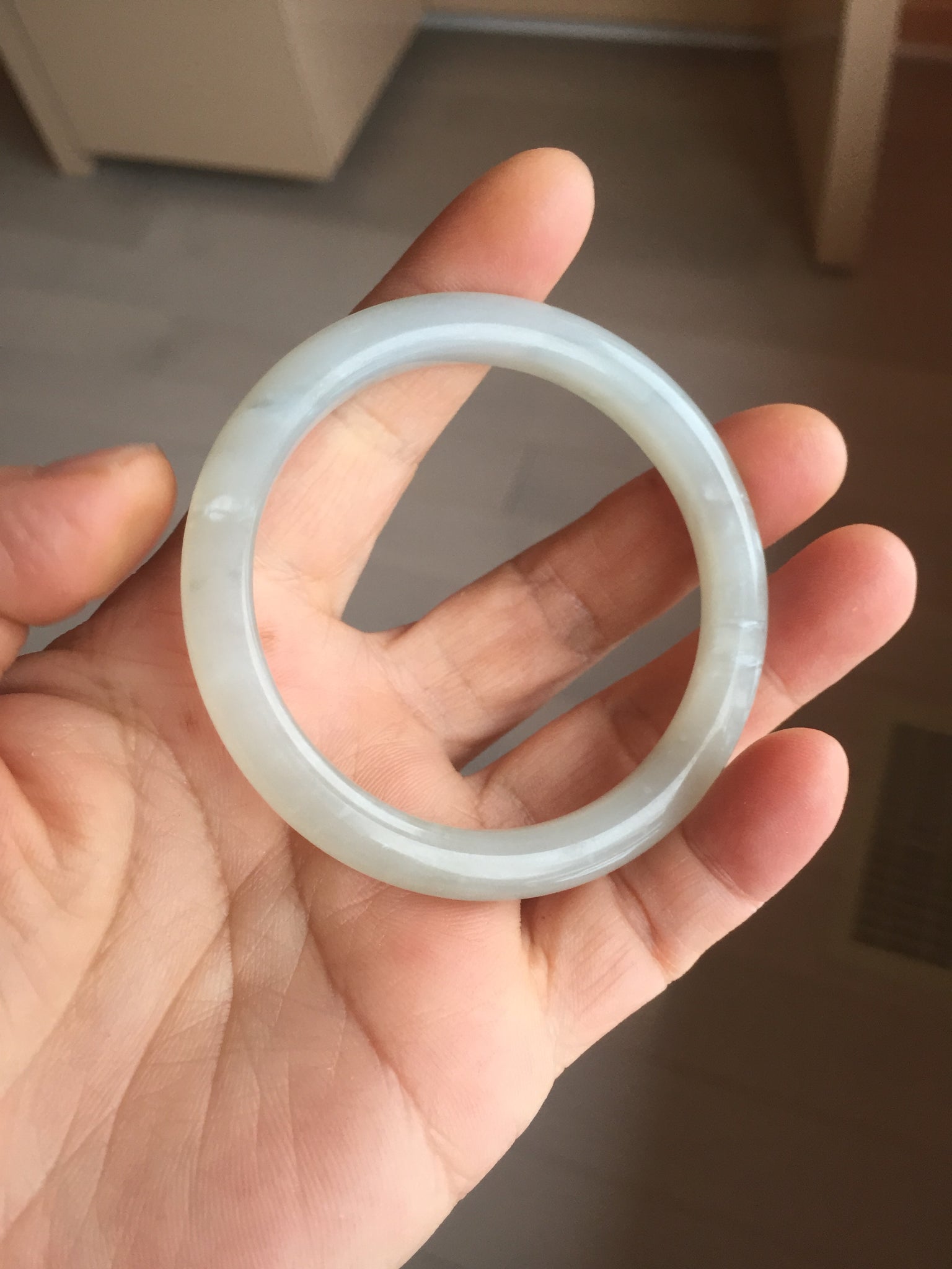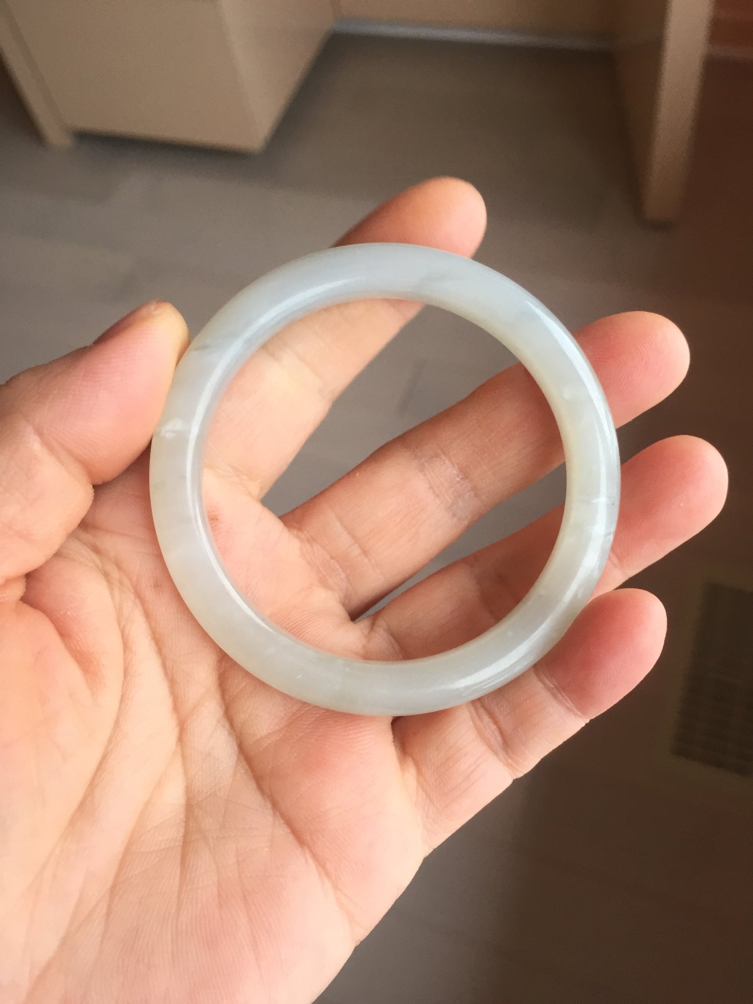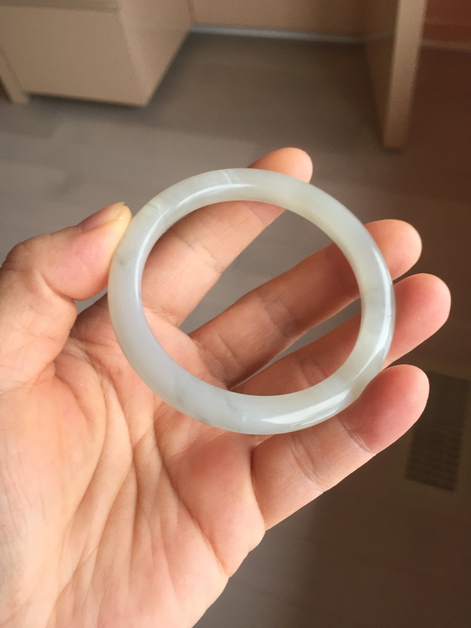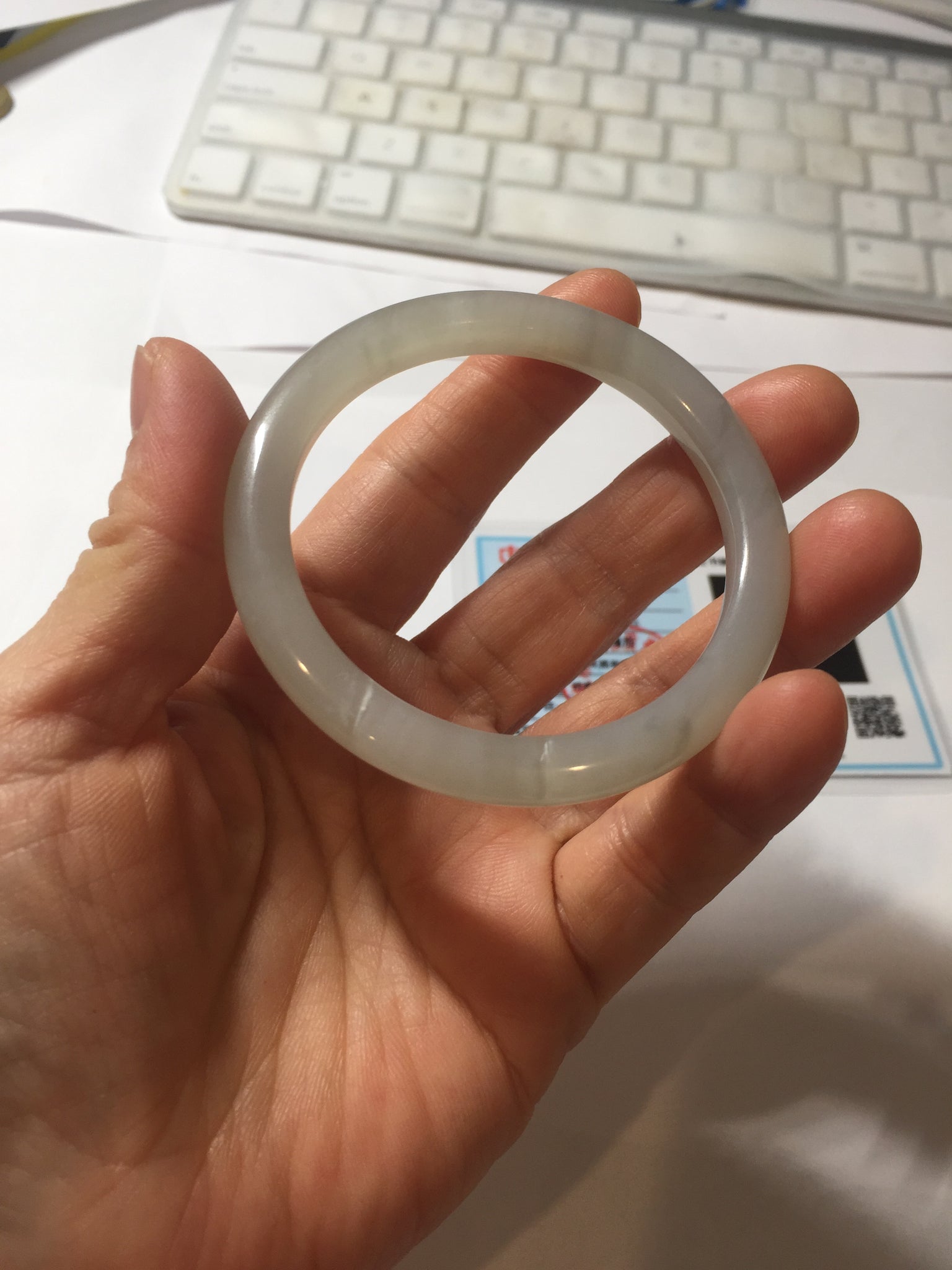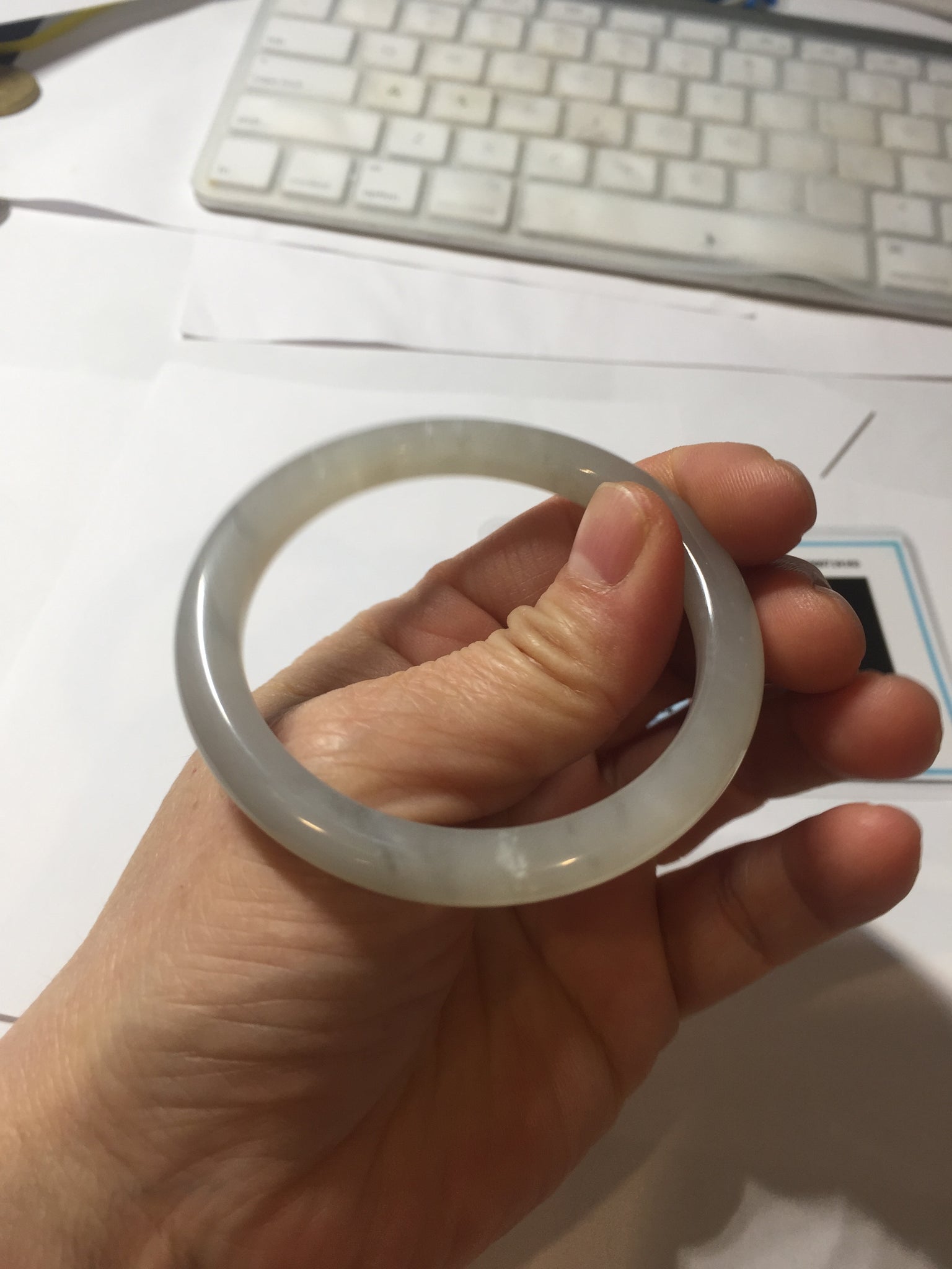 51mm Certified 100% Natural icy light gray white(灰冰) round cut nephrite jade bangle HN74-9163