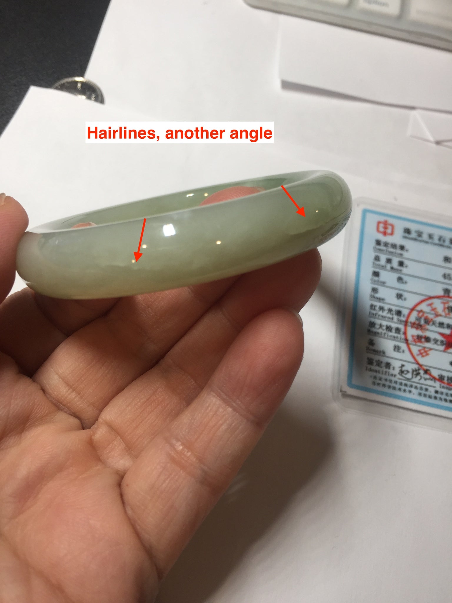 Imperfections:No crack. Some hairlines. Some white snowy cotton spots and cotton areas.