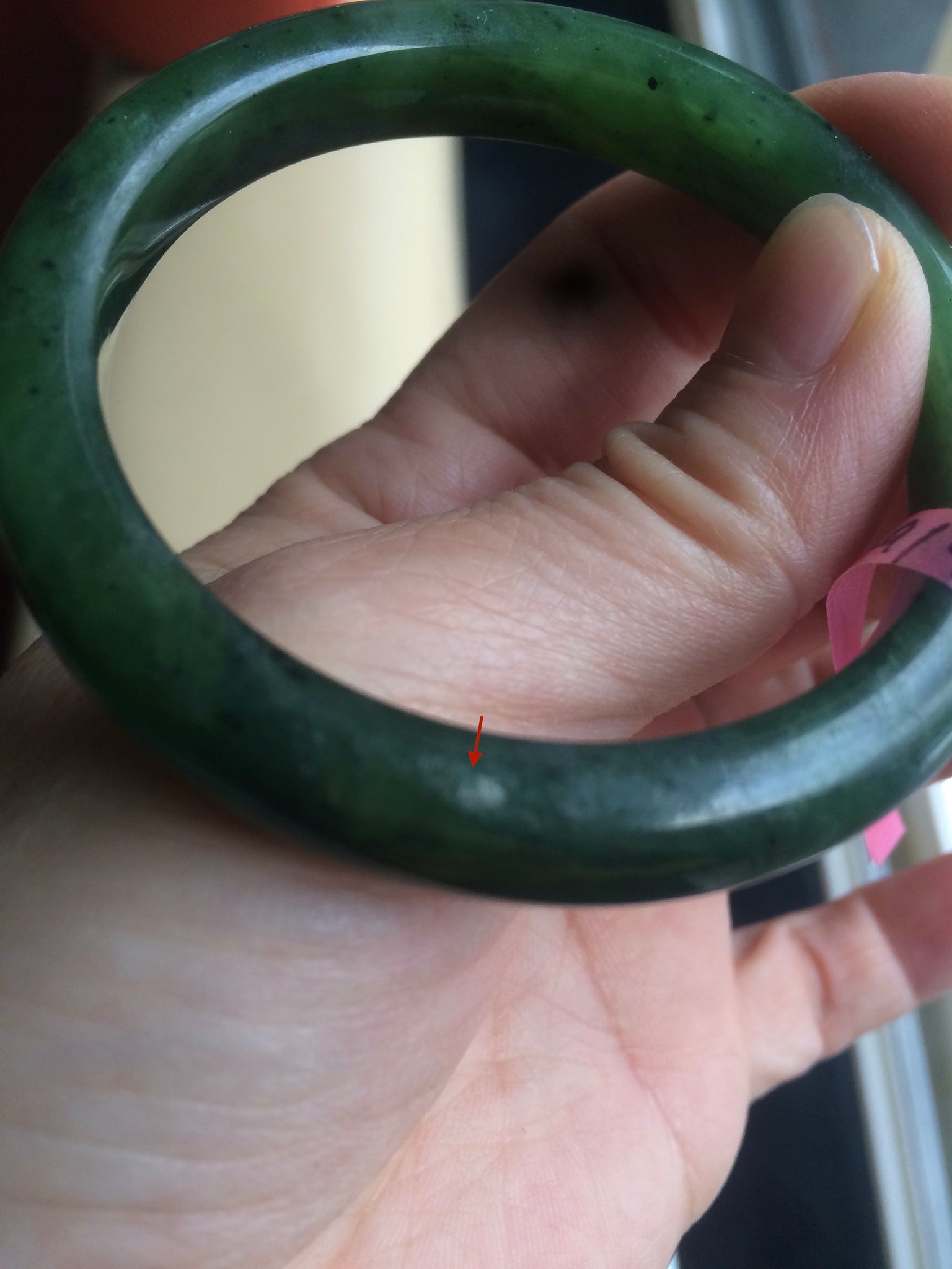 Imperfections: One surface crack. almost invisible. One small white mine pit. Semi-gloss finished.