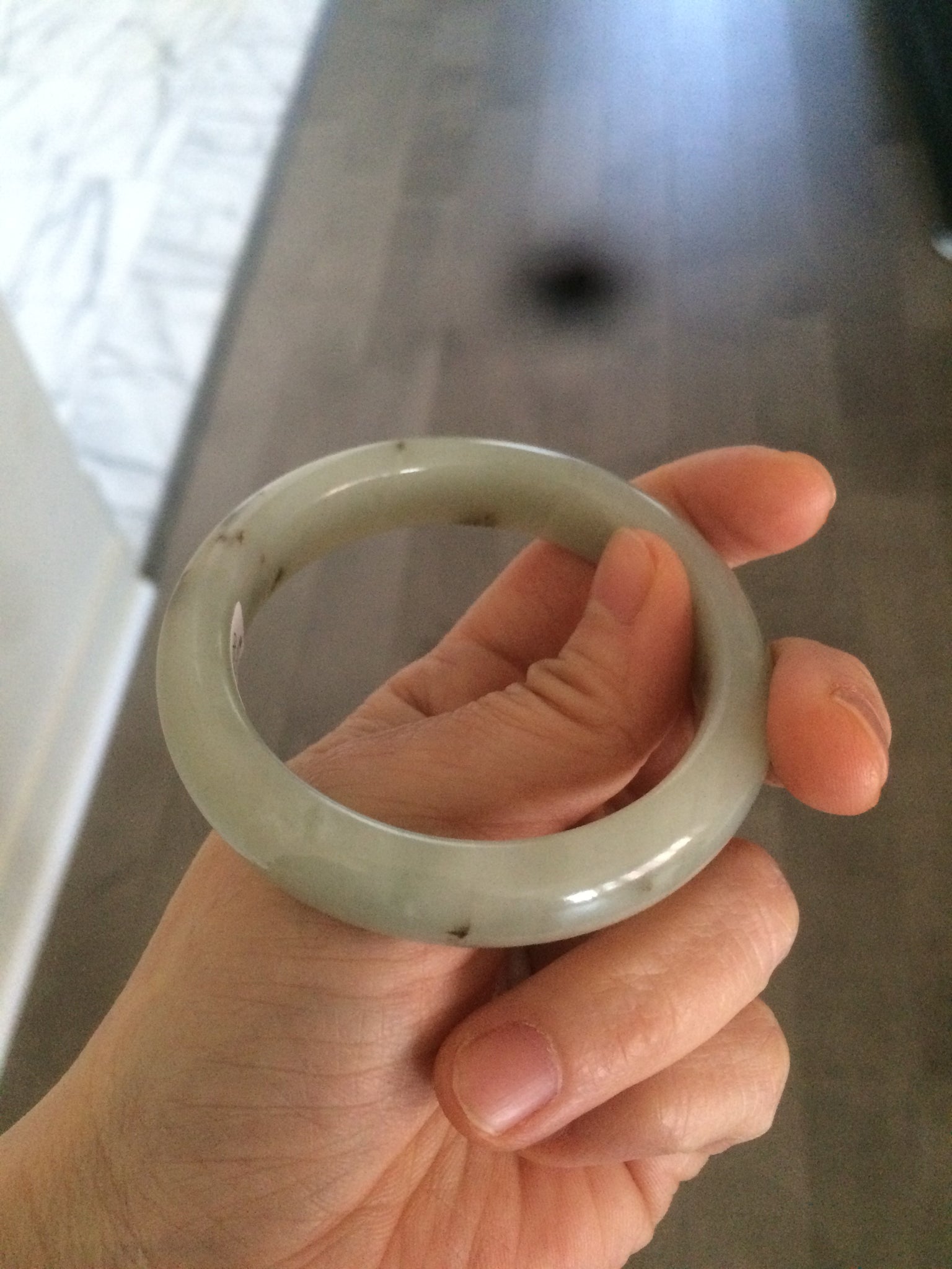 Sale! Certified 53.3mm 100% Natural light green with brown floating dandelions nephrite nephrite Jade bangle R30-0055