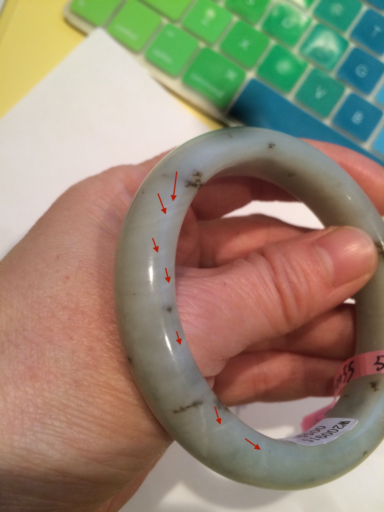 nephrite jade. They are not hairlines). almost invisible. Won't influence the firmness of the bangle.