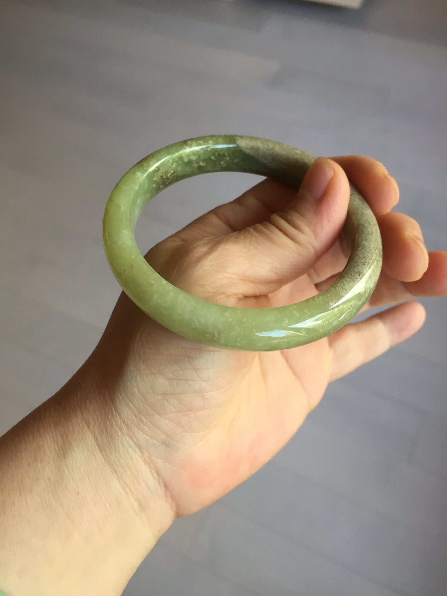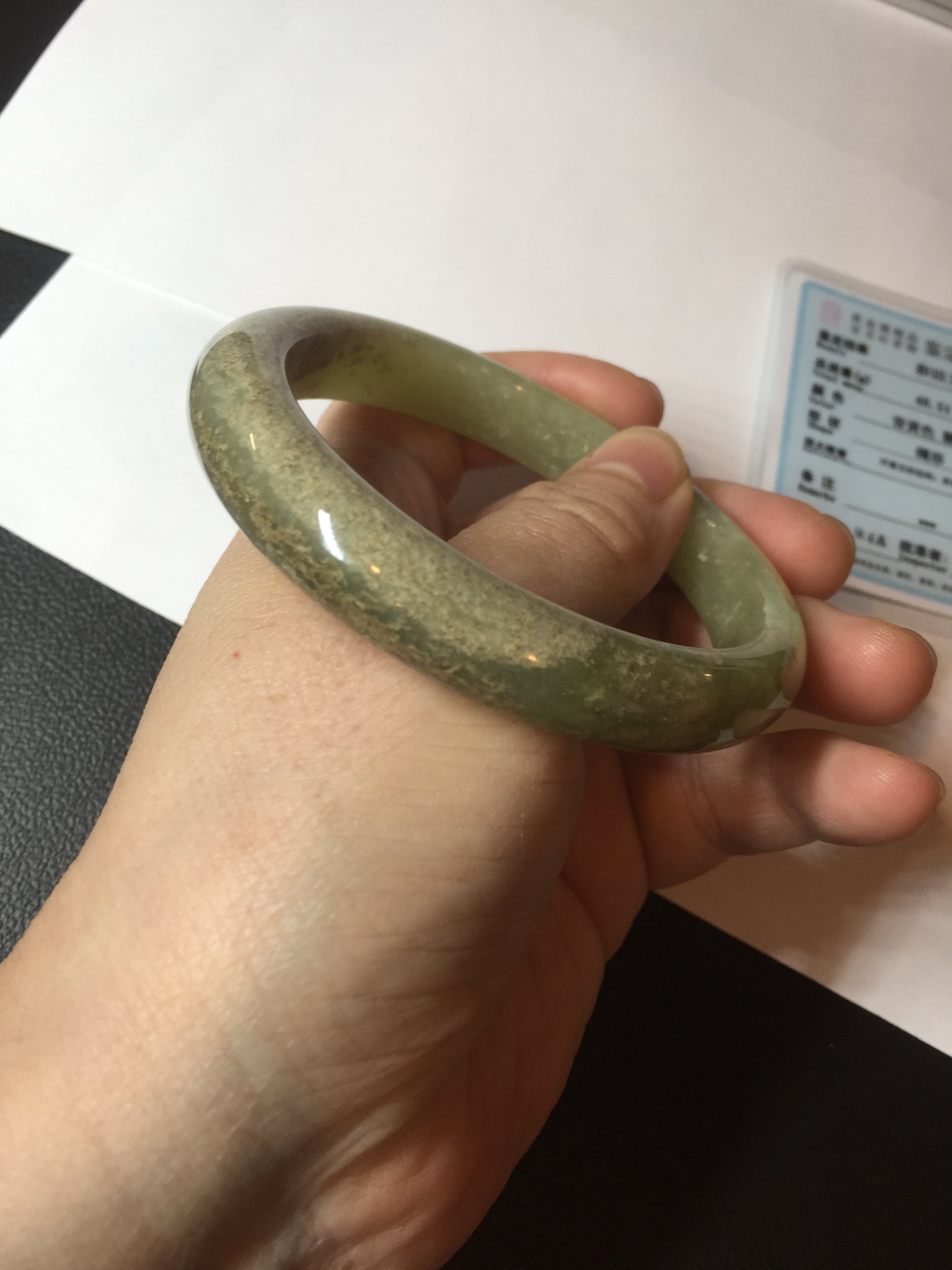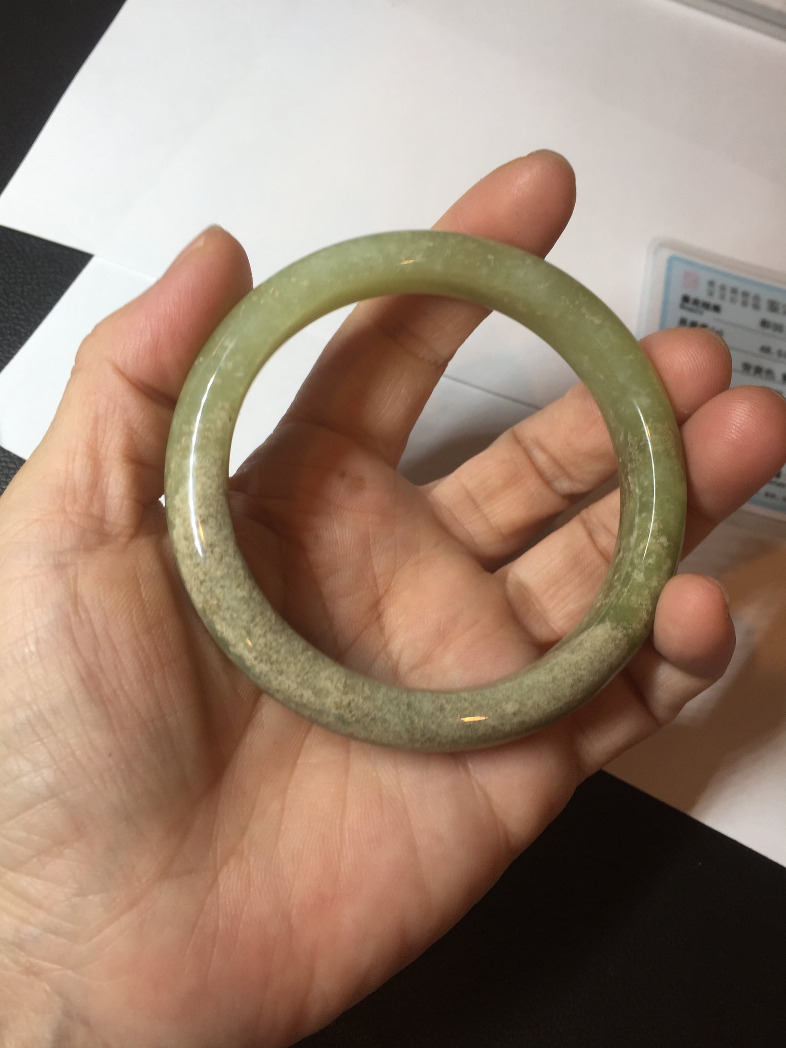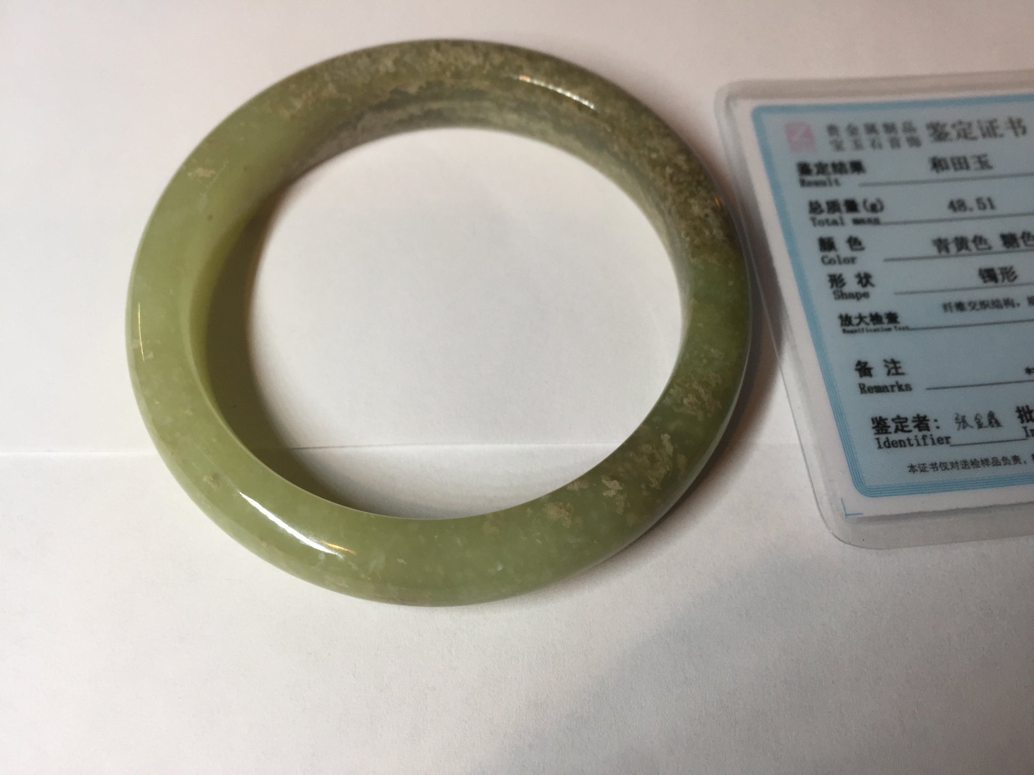 58.4mm certified Type A 100% Natural yellow/brown flying dandelions nephrite Jade bangle HF80-0469