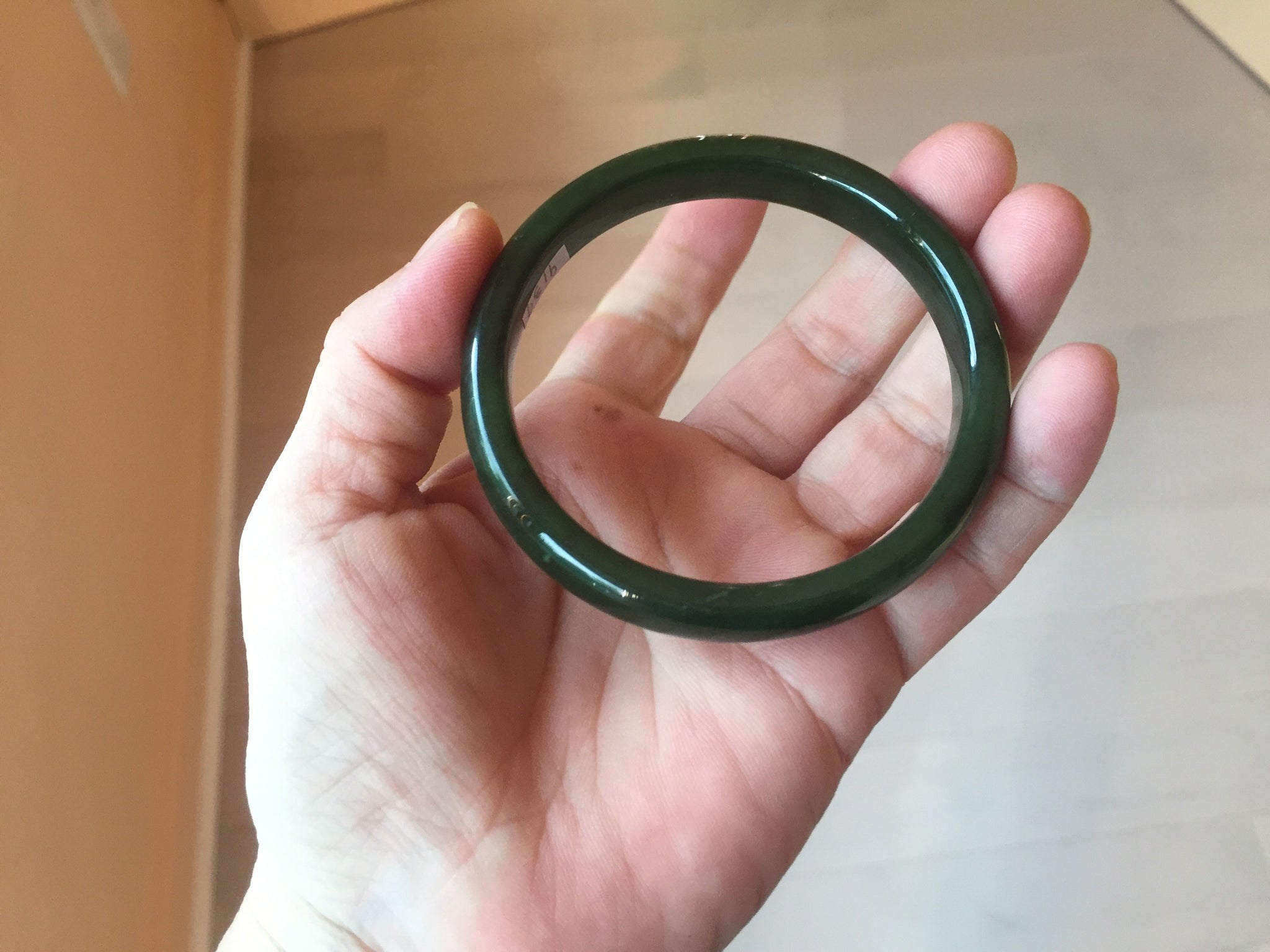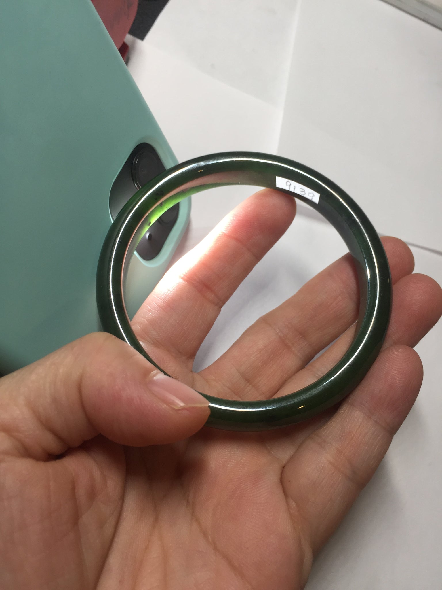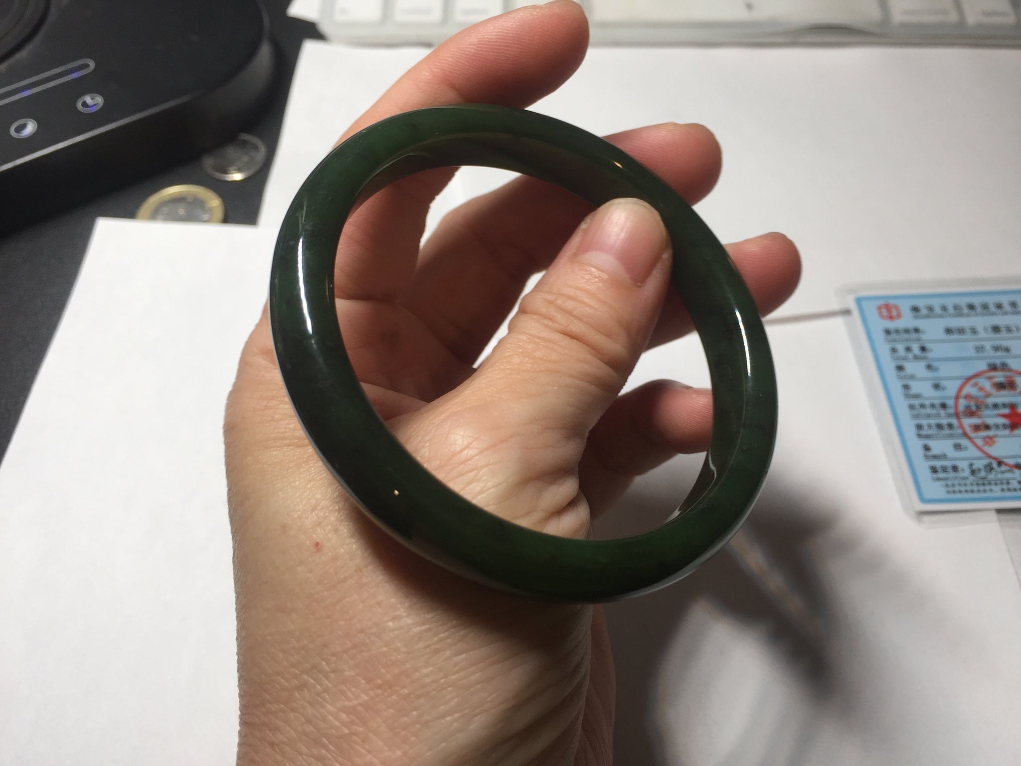 59.2mm certified 100% Natural dark green/black nephrite (碧玉) bangle HN24-9139