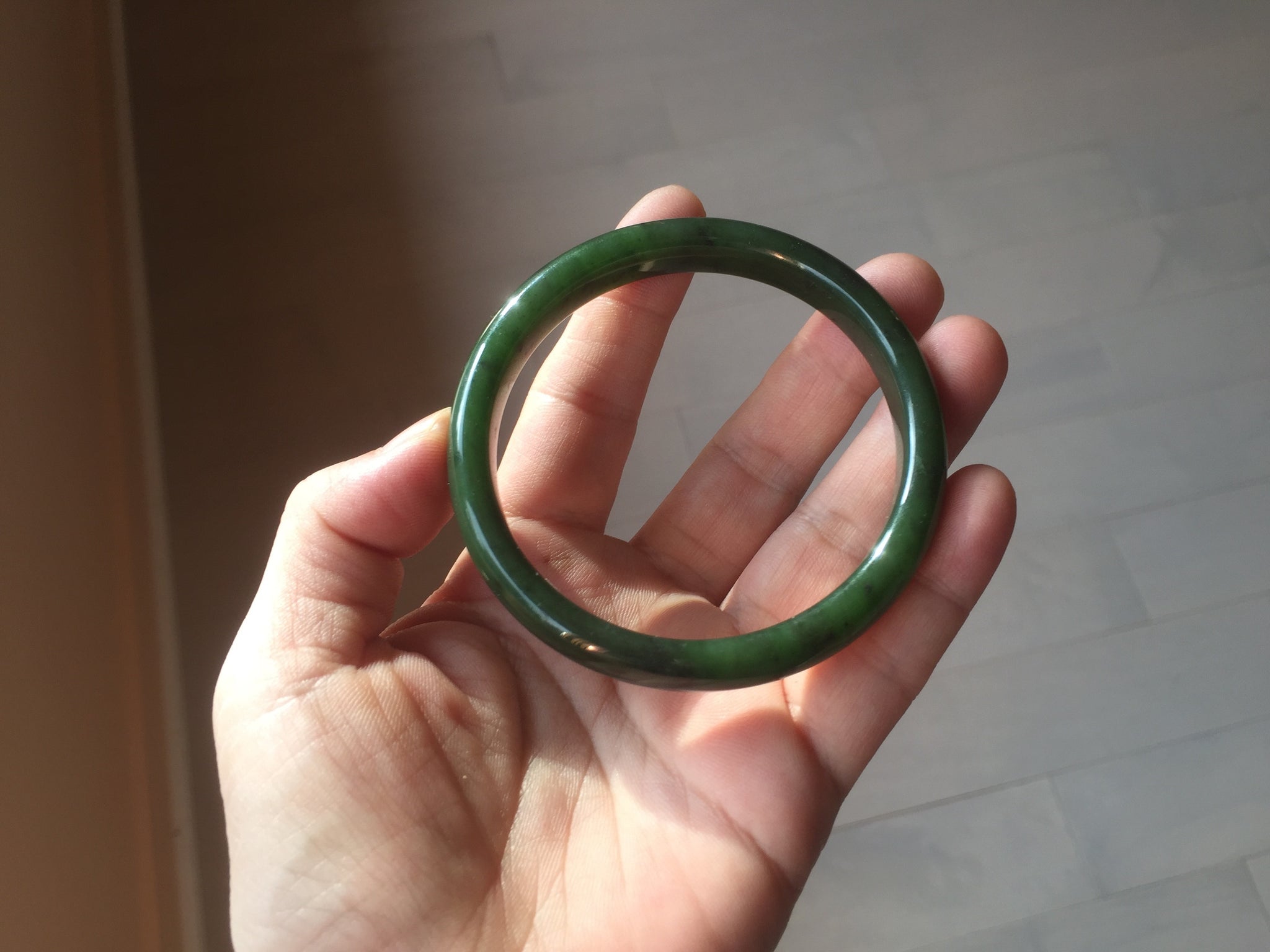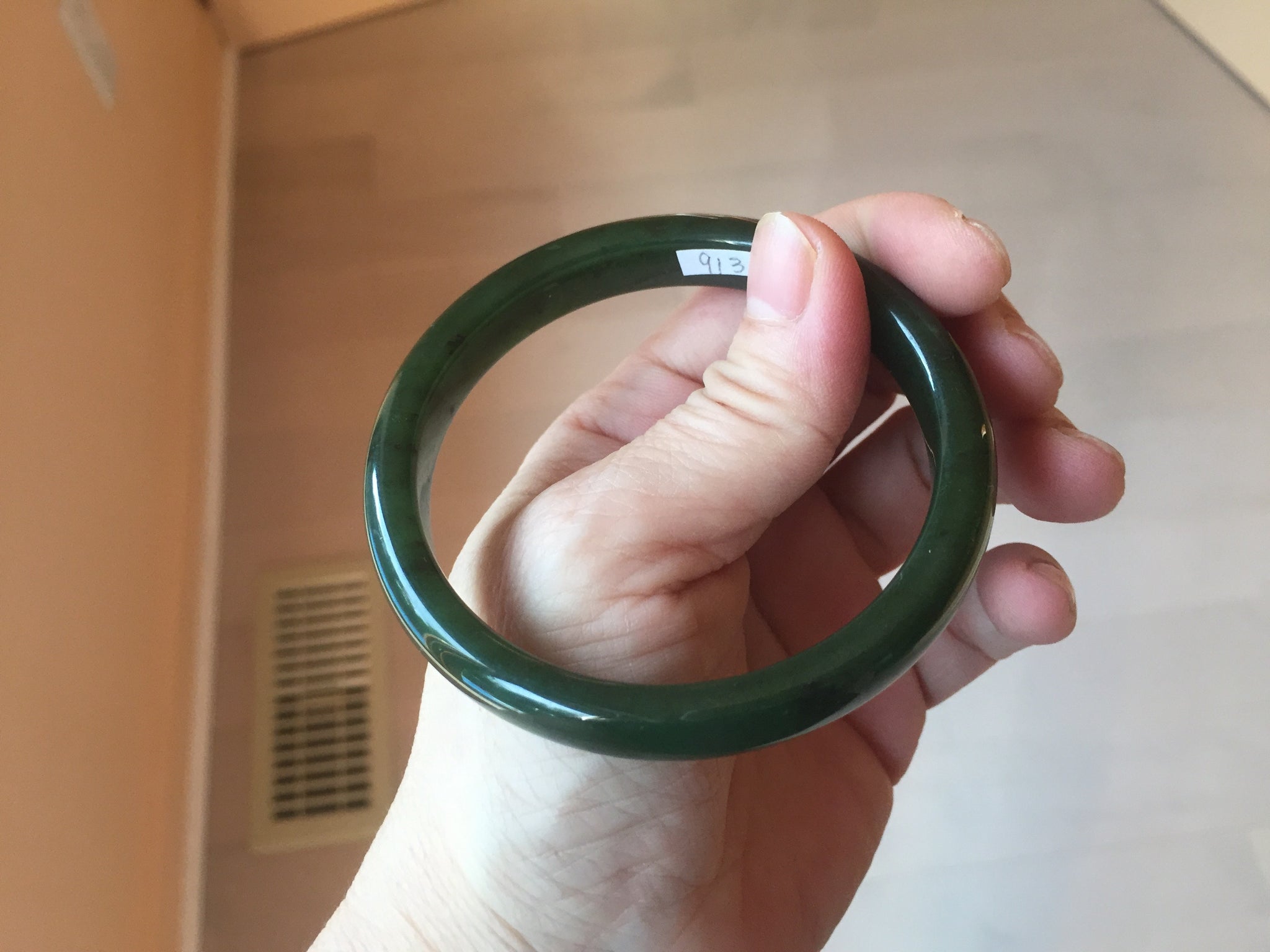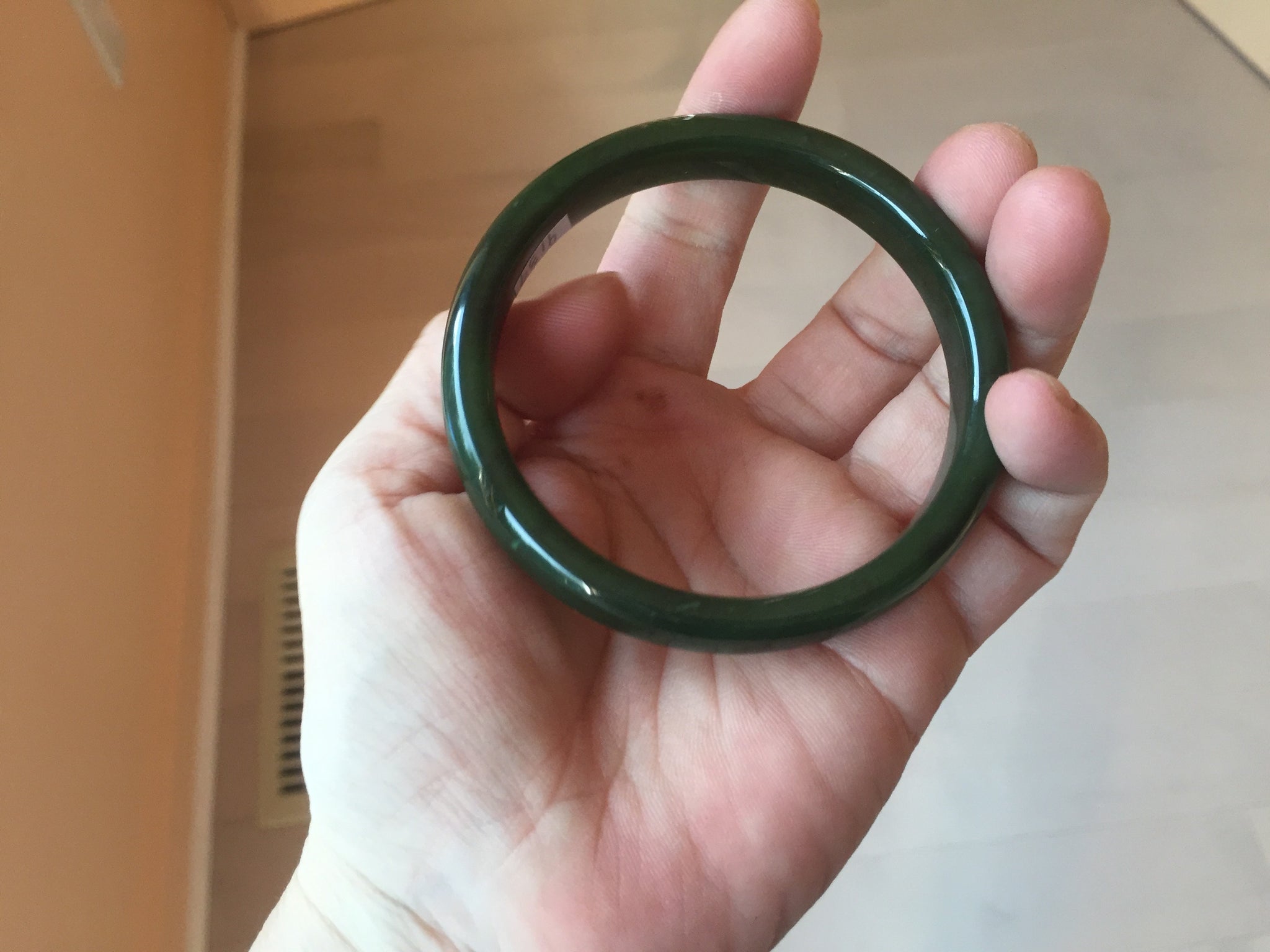 59.2mm certified 100% Natural dark green/black nephrite (碧玉) bangle HN24-9139