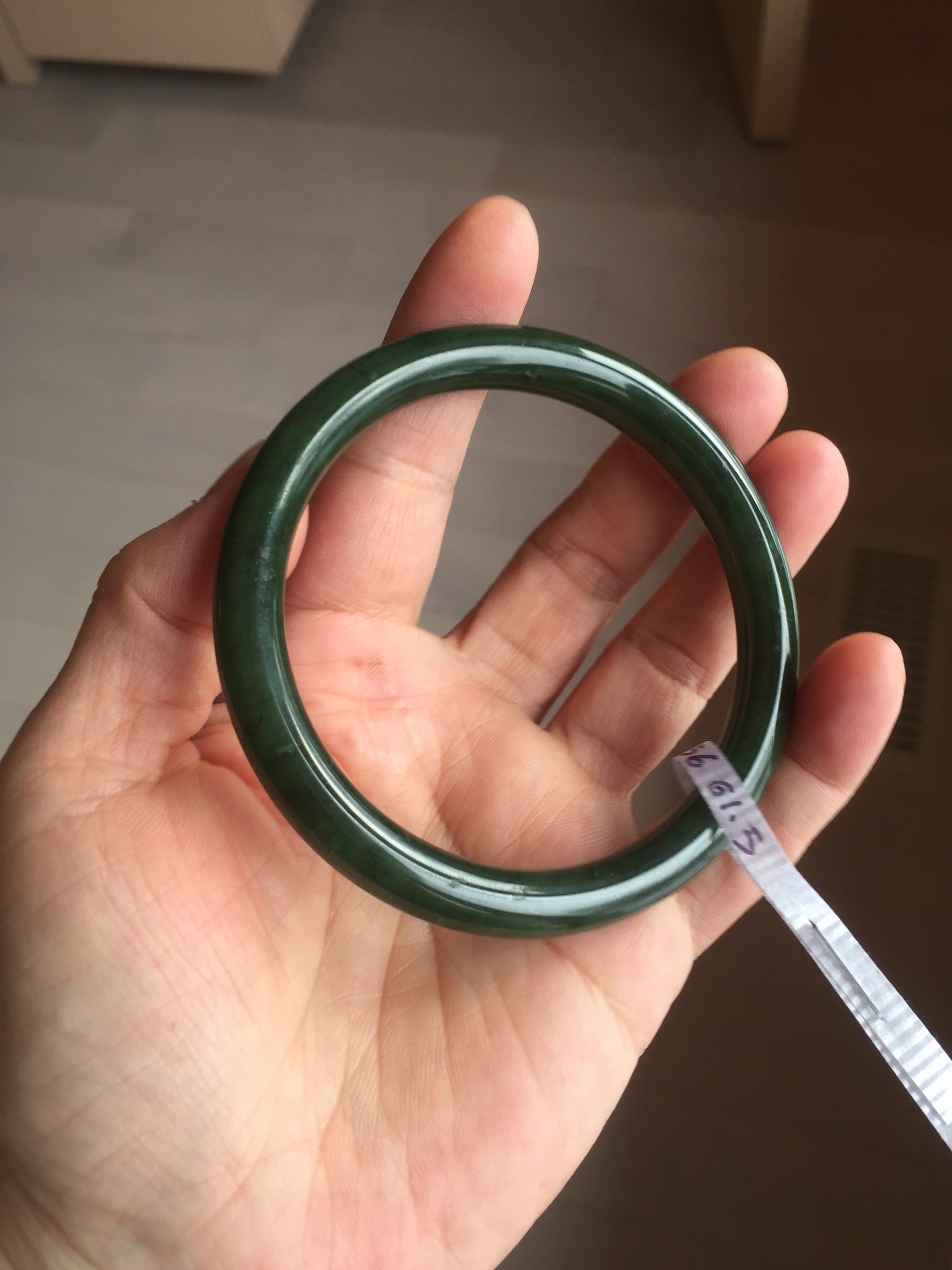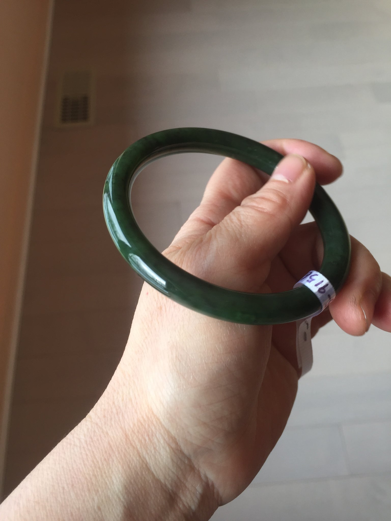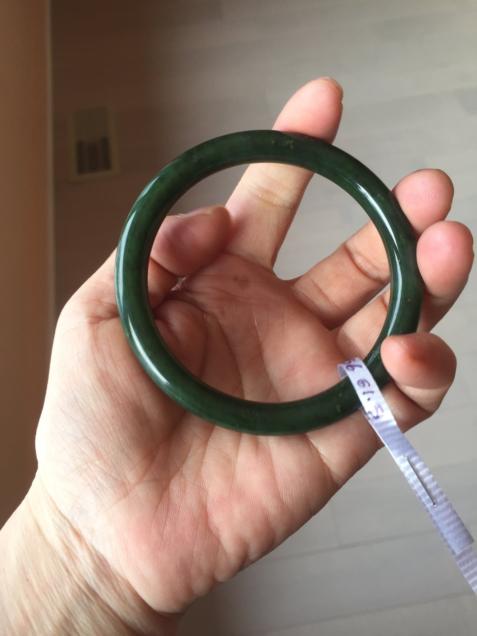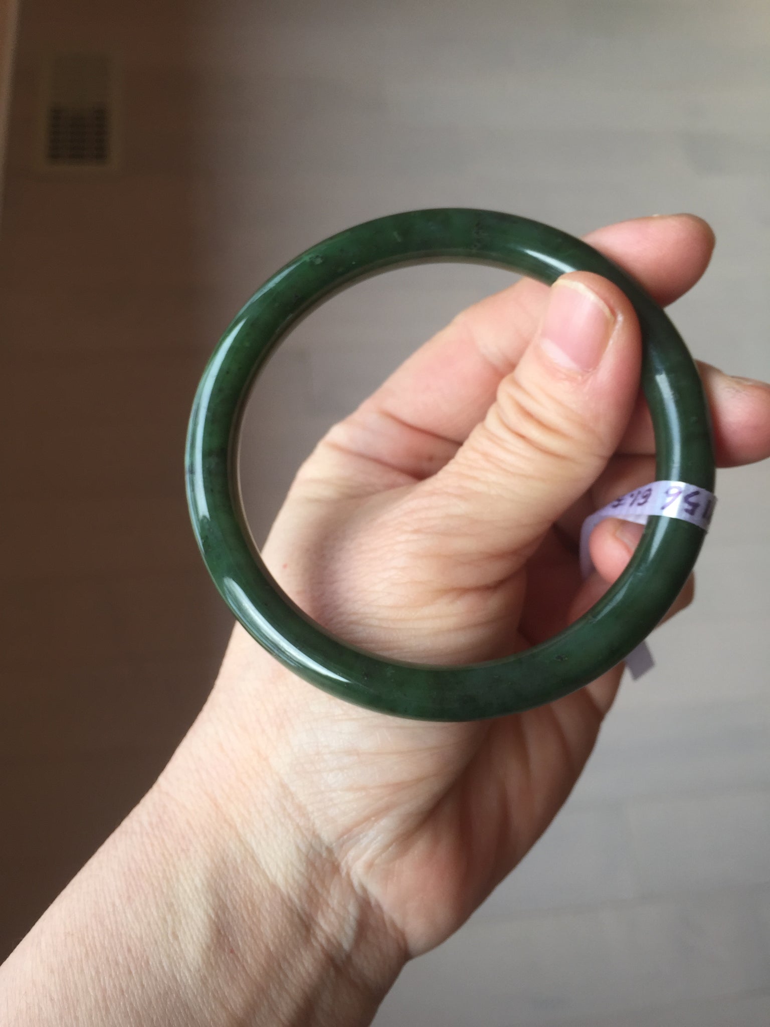 Imperfections: No crack. No hairline. Black spots. Some cotton spots. Some black cloudiness and spots. Has black colors. Under normal light, it is close to dark green/black.