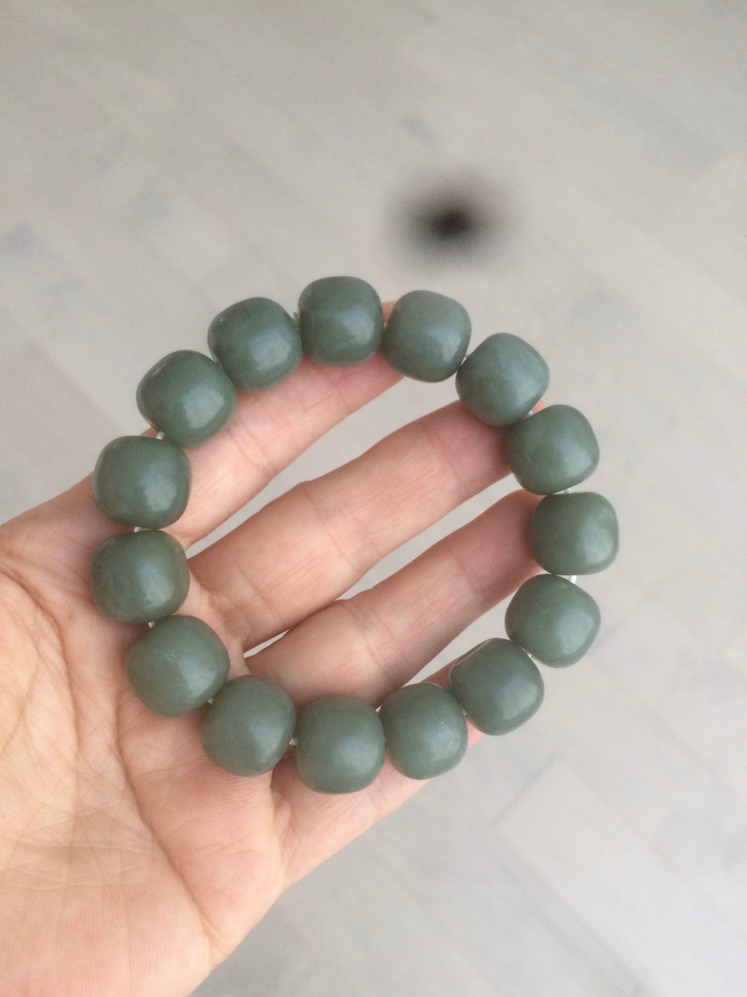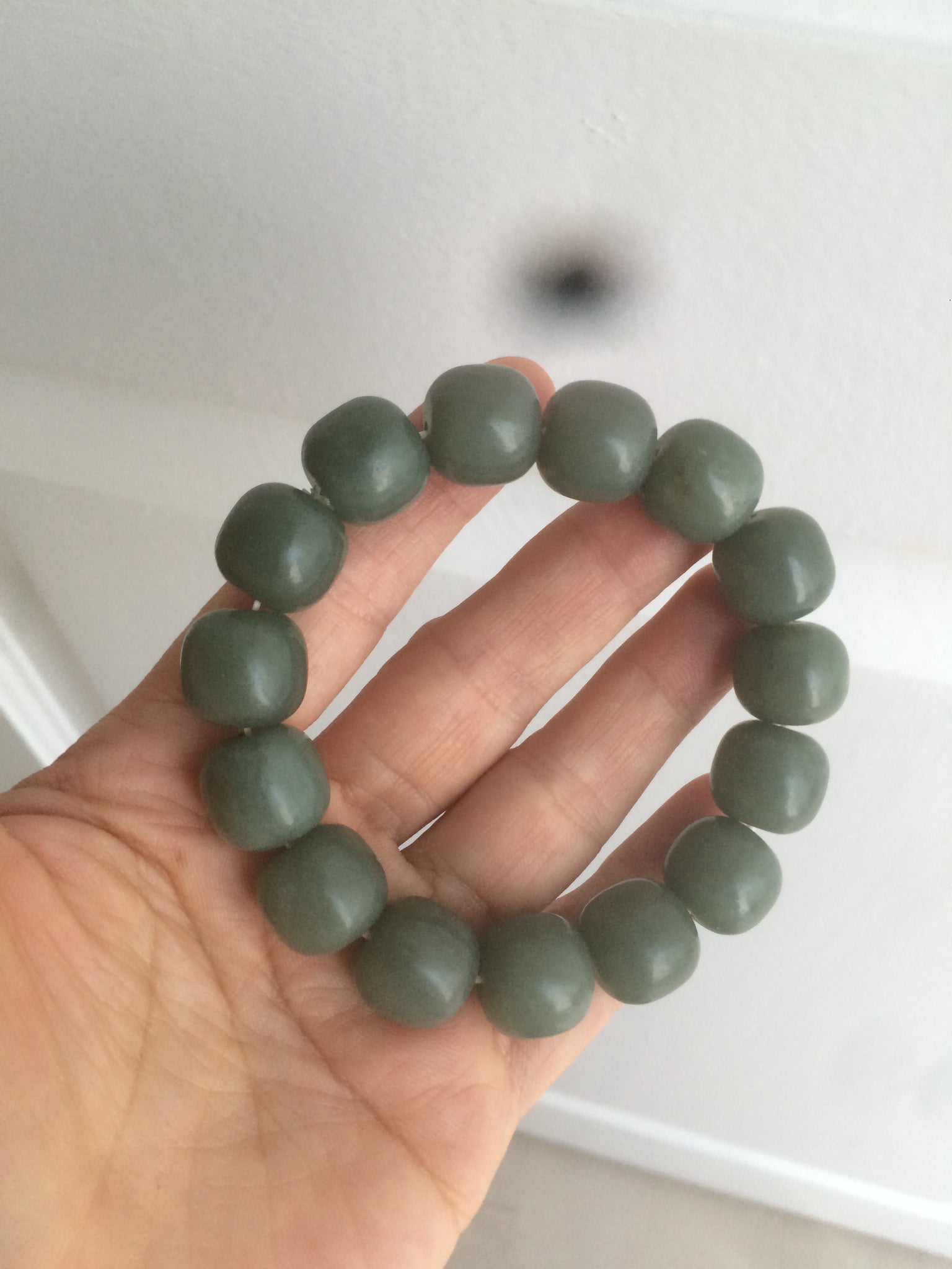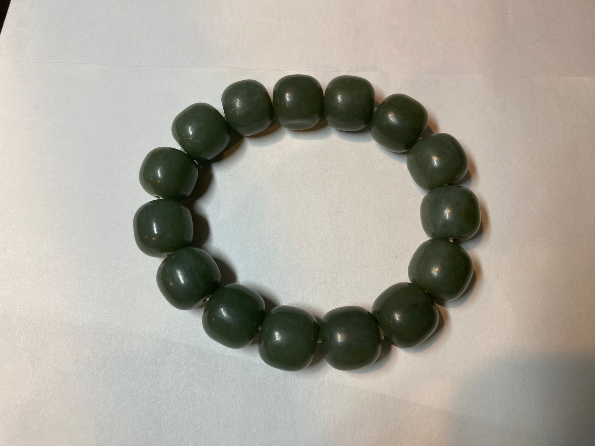 No crack. No hairline. Cotton spots/areas or sugar-brown areas. One dent area on one bead. The photos are always slightly better than the actual item when nephrite jade is semi-polished.