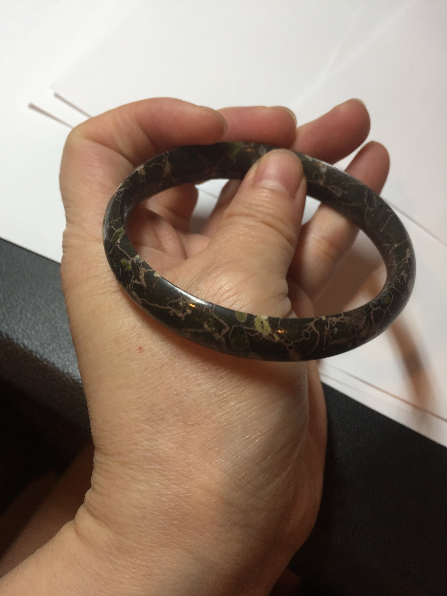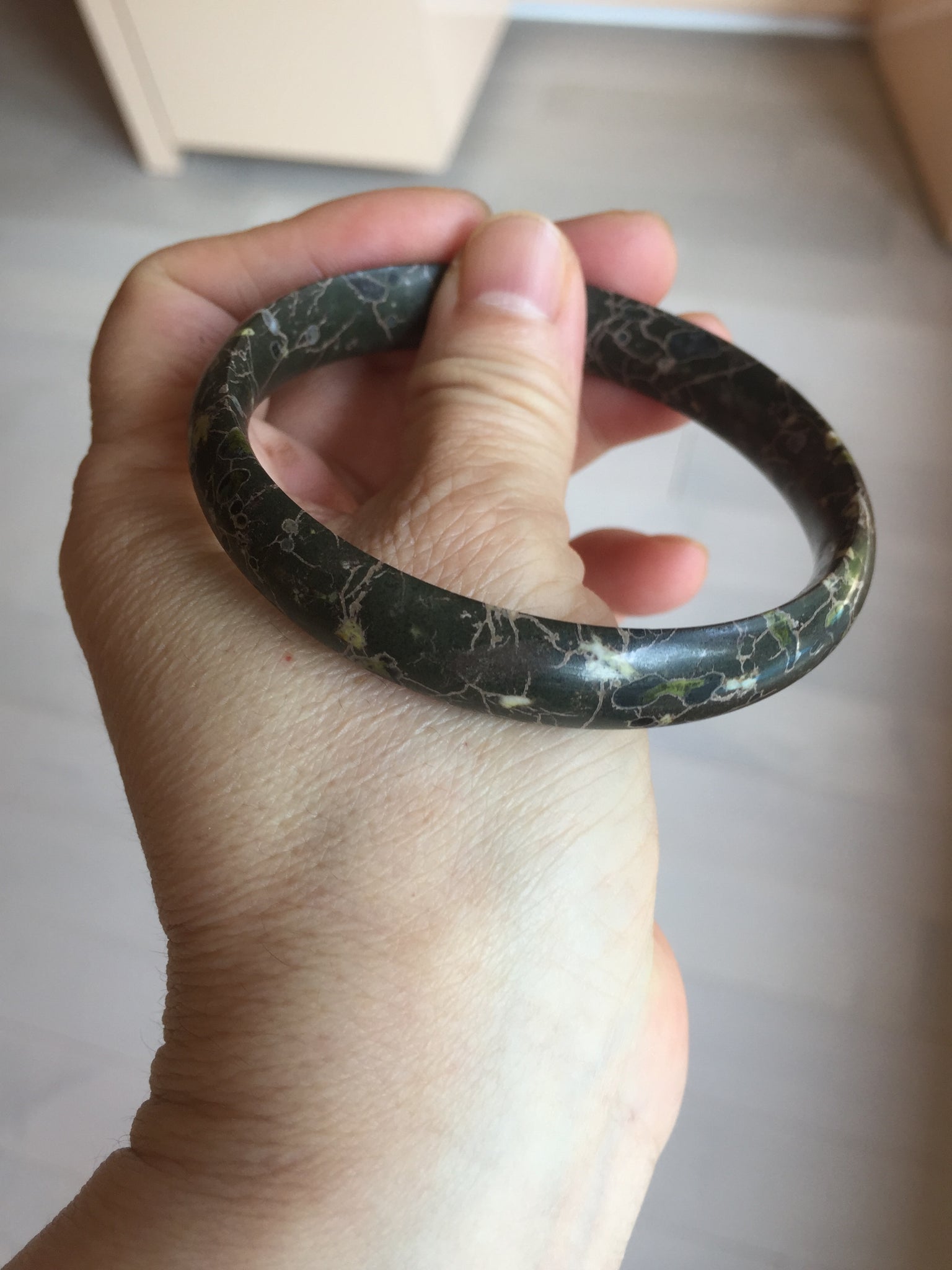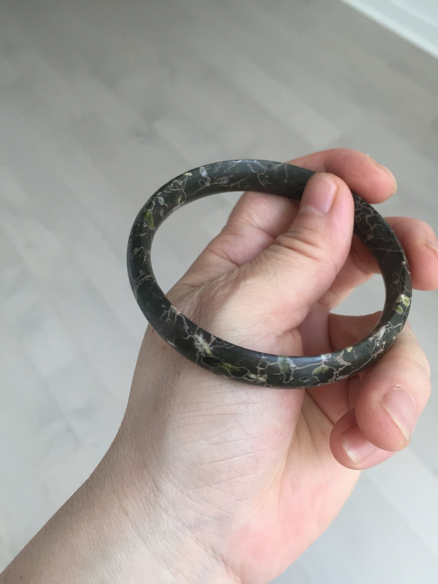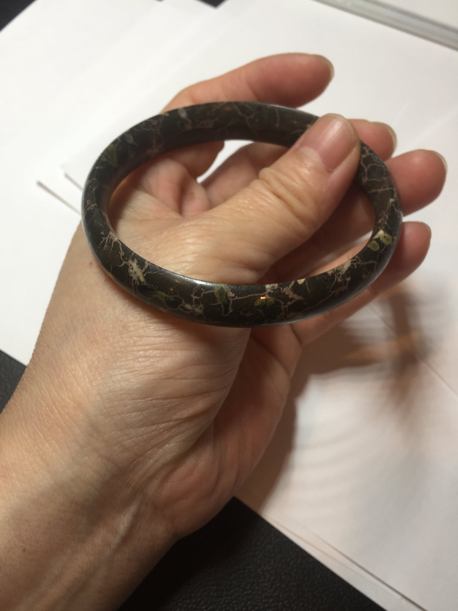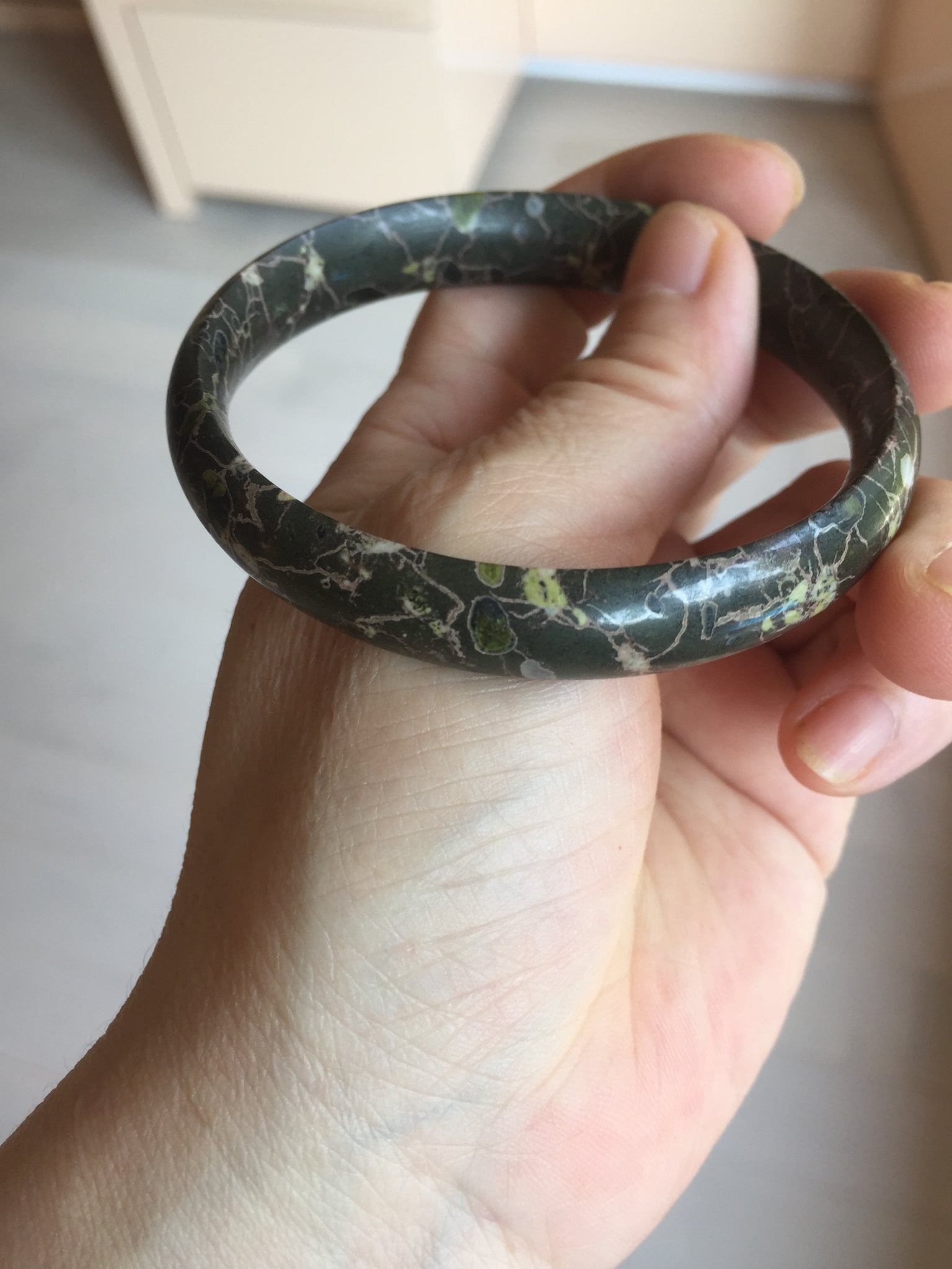 59.5mm 100% natural black background with white/yellow/red flowers Plum blossom Jade(梅花玉) bangle SY98-7