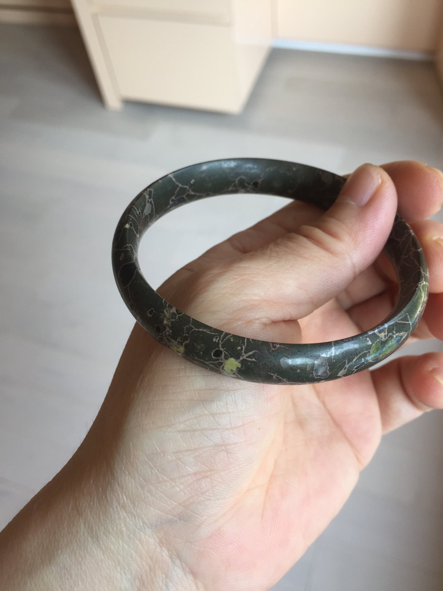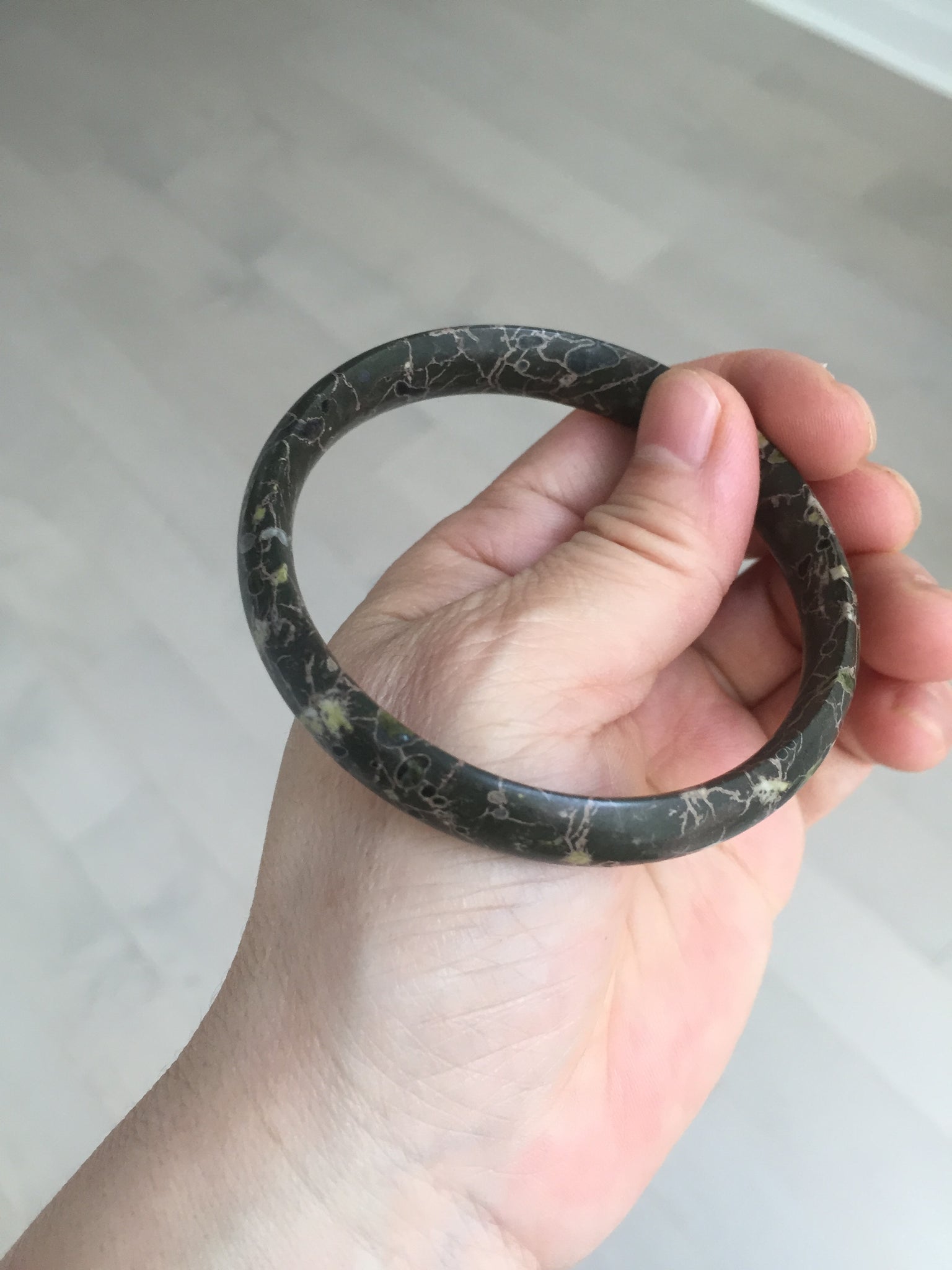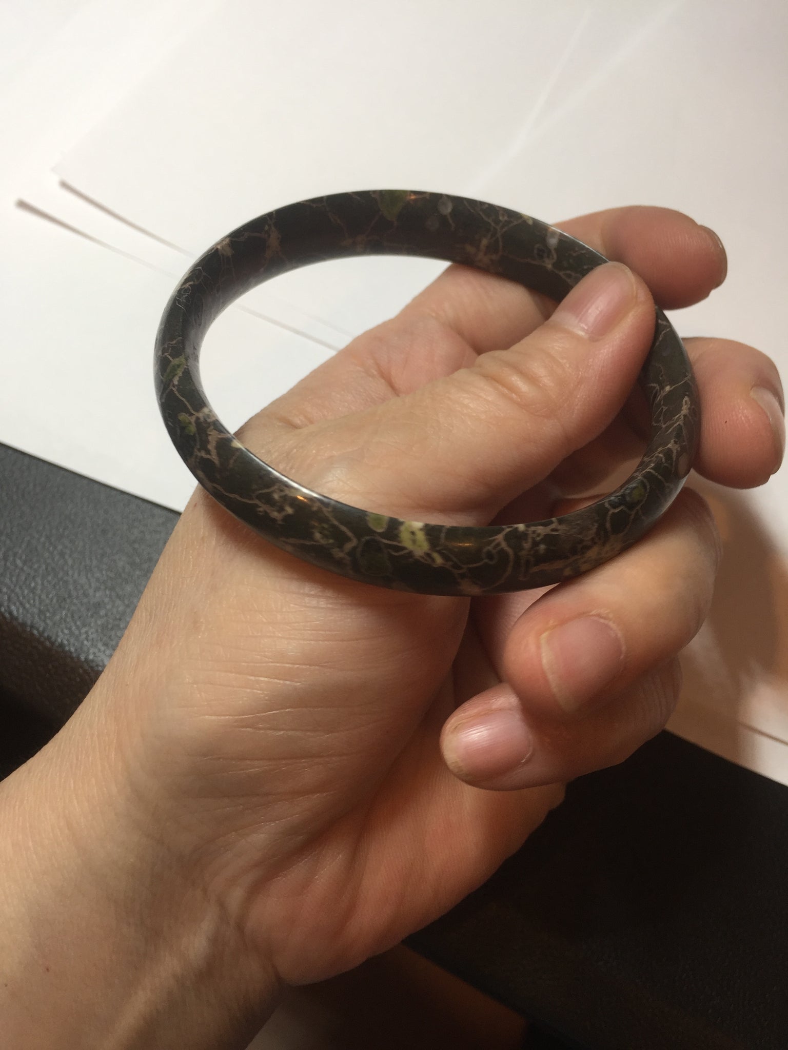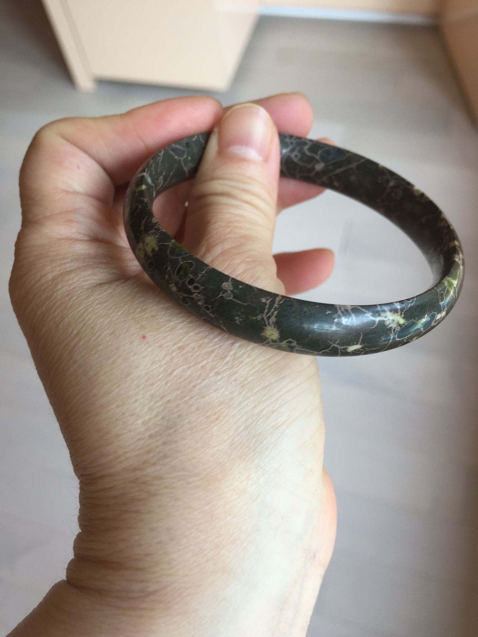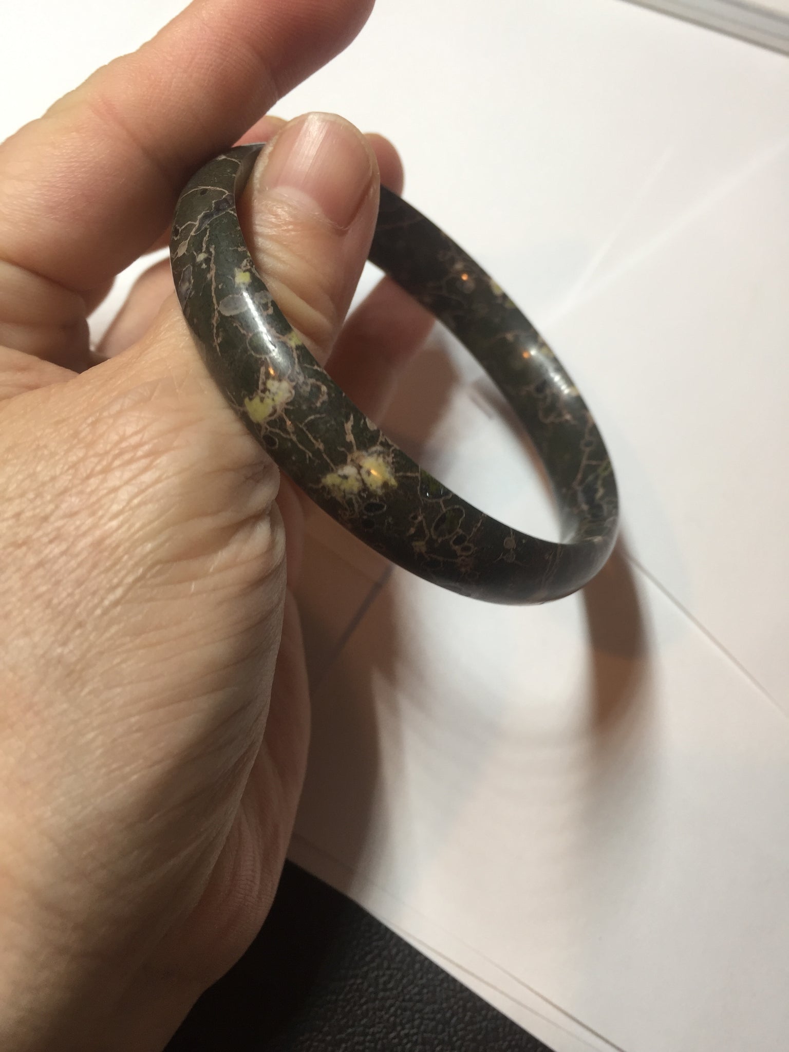 59.5mm 100% natural black background with white/yellow/red flowers Plum blossom Jade(梅花玉) bangle SY98-7