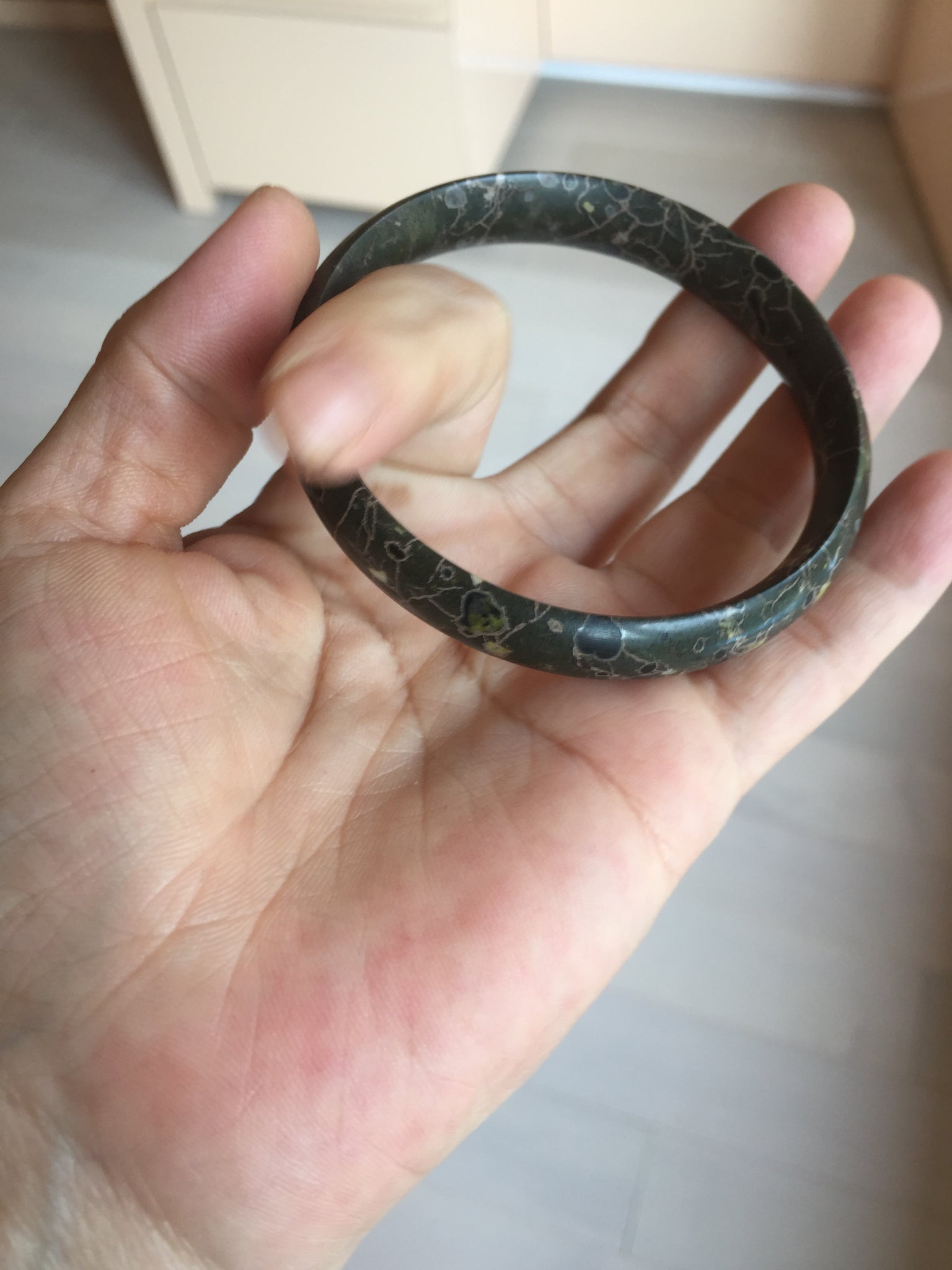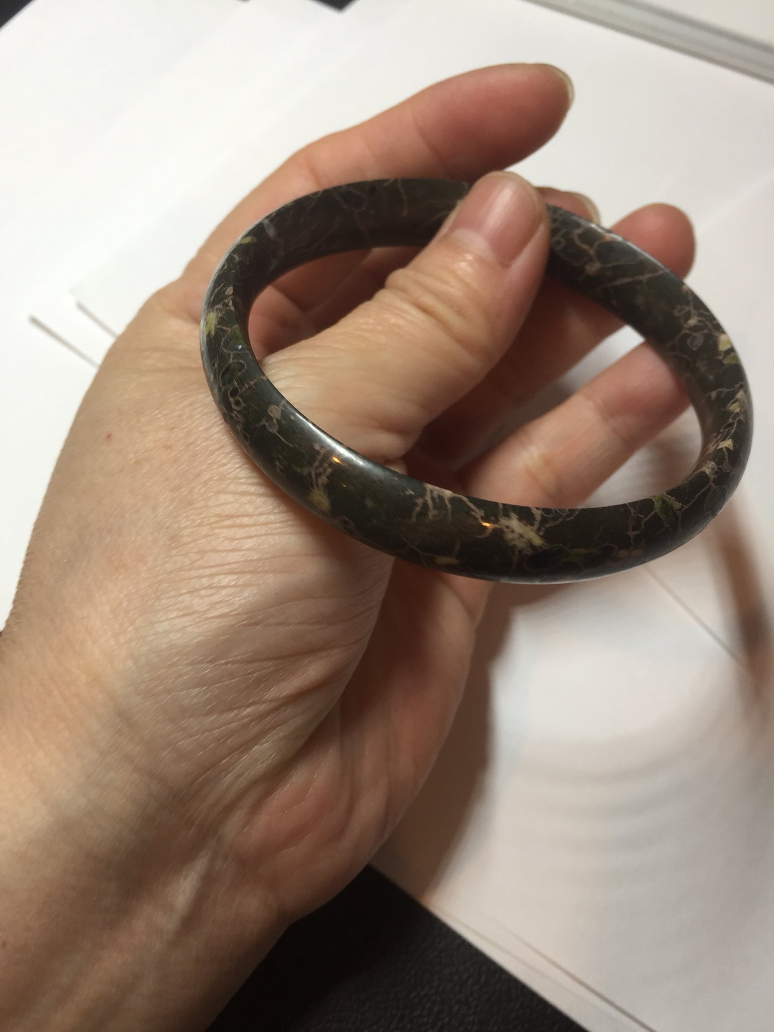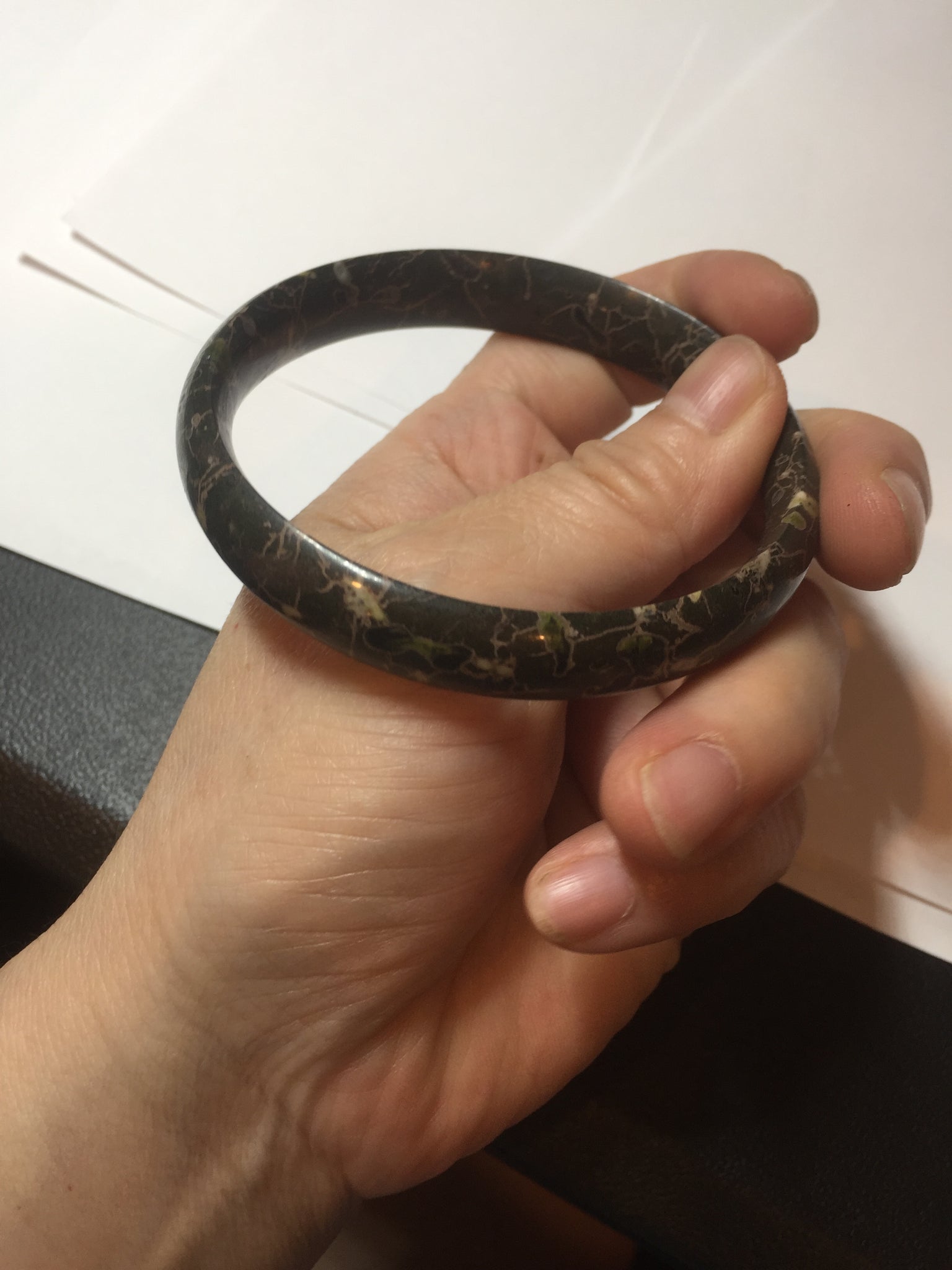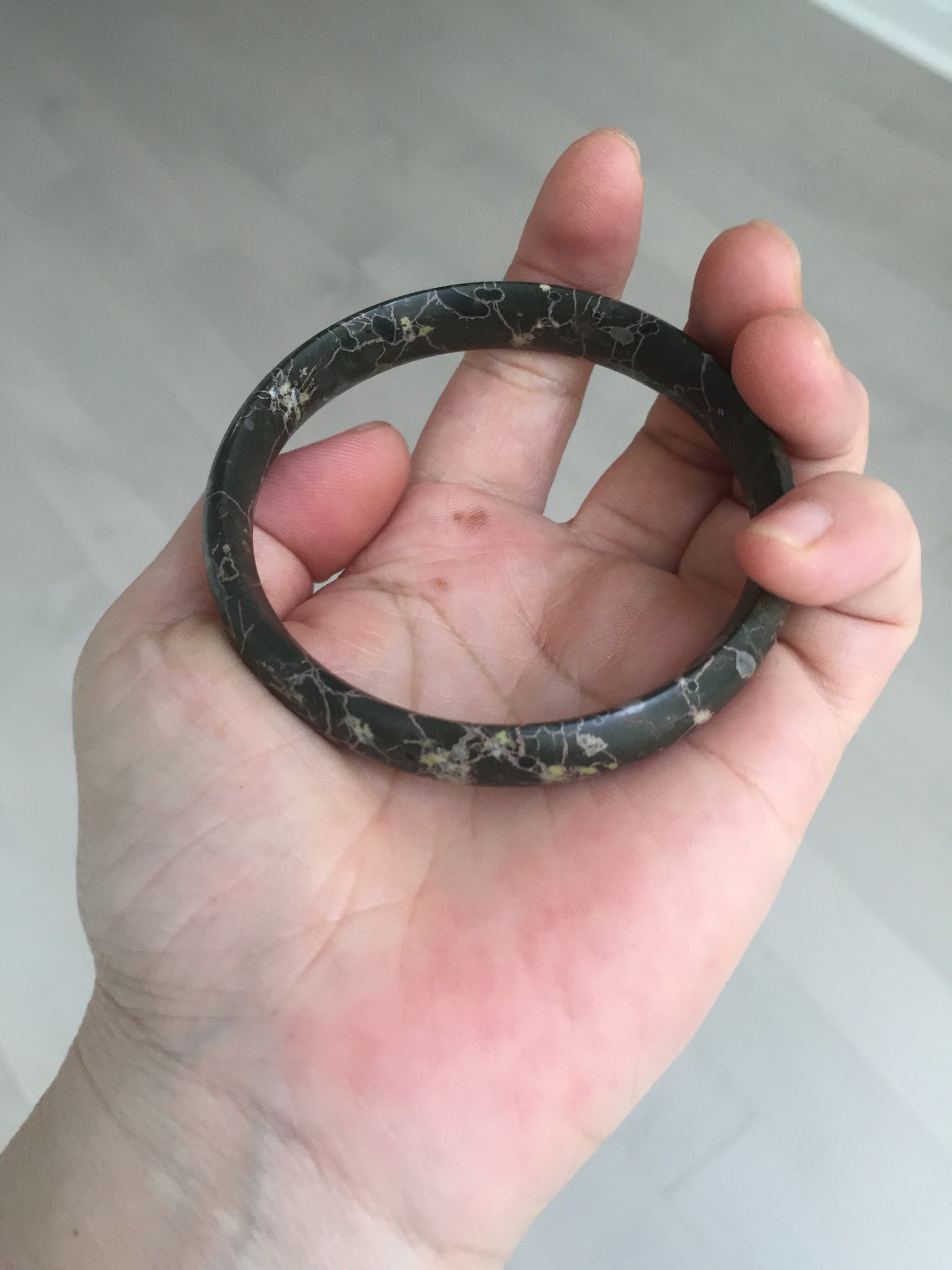 59.5mm 100% natural black background with white/yellow/red flowers Plum blossom Jade(梅花玉) bangle SY98-7