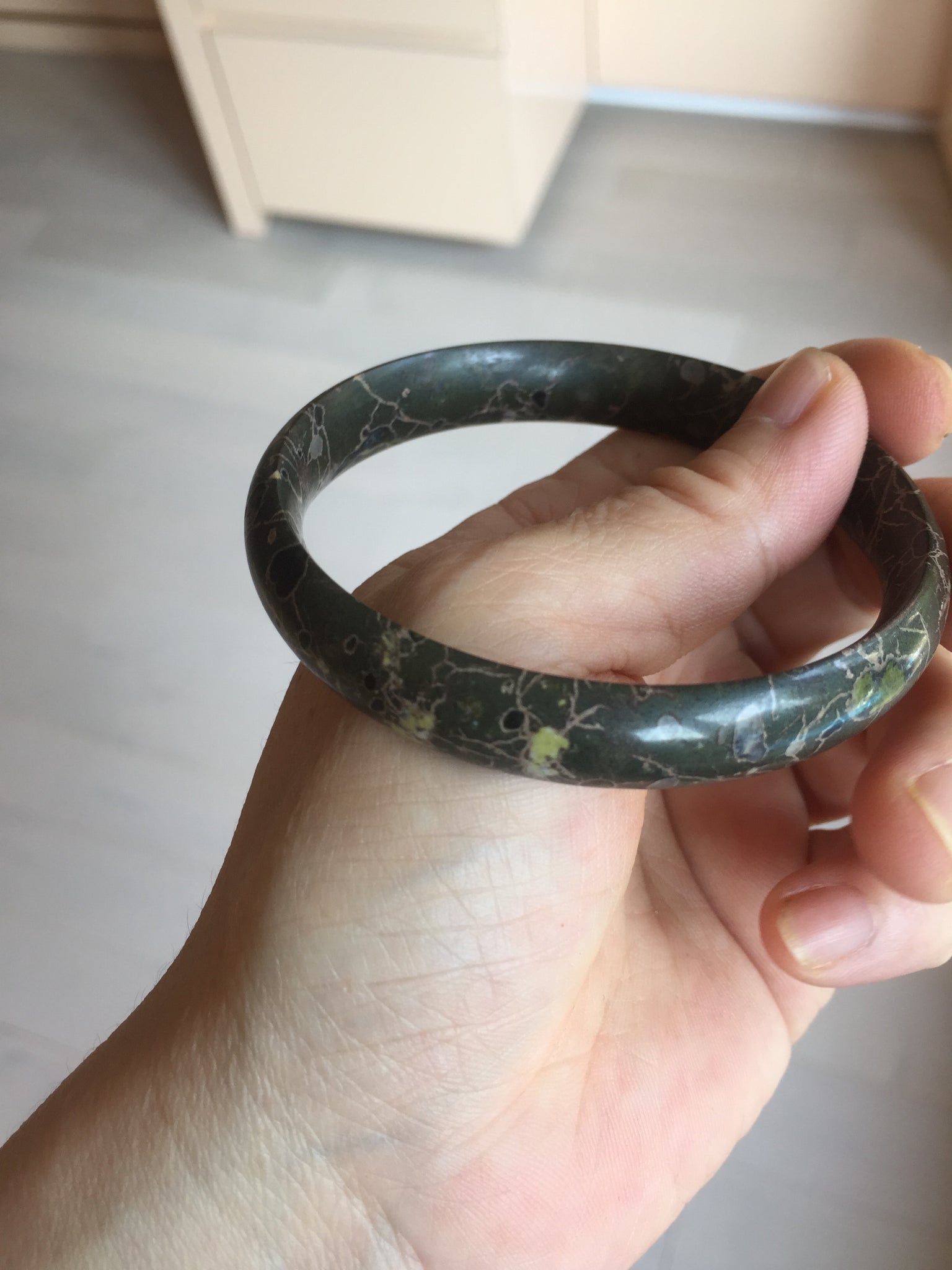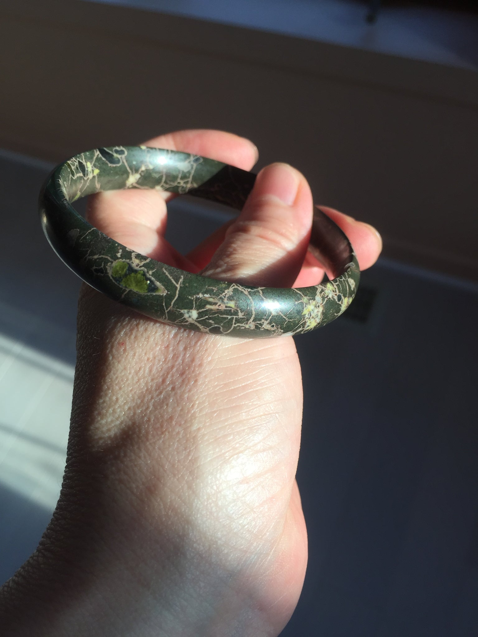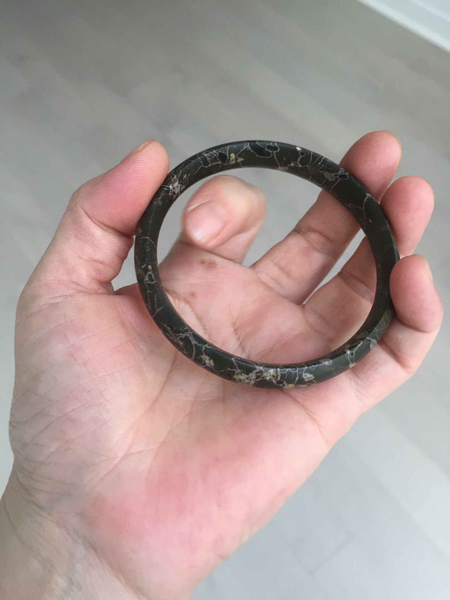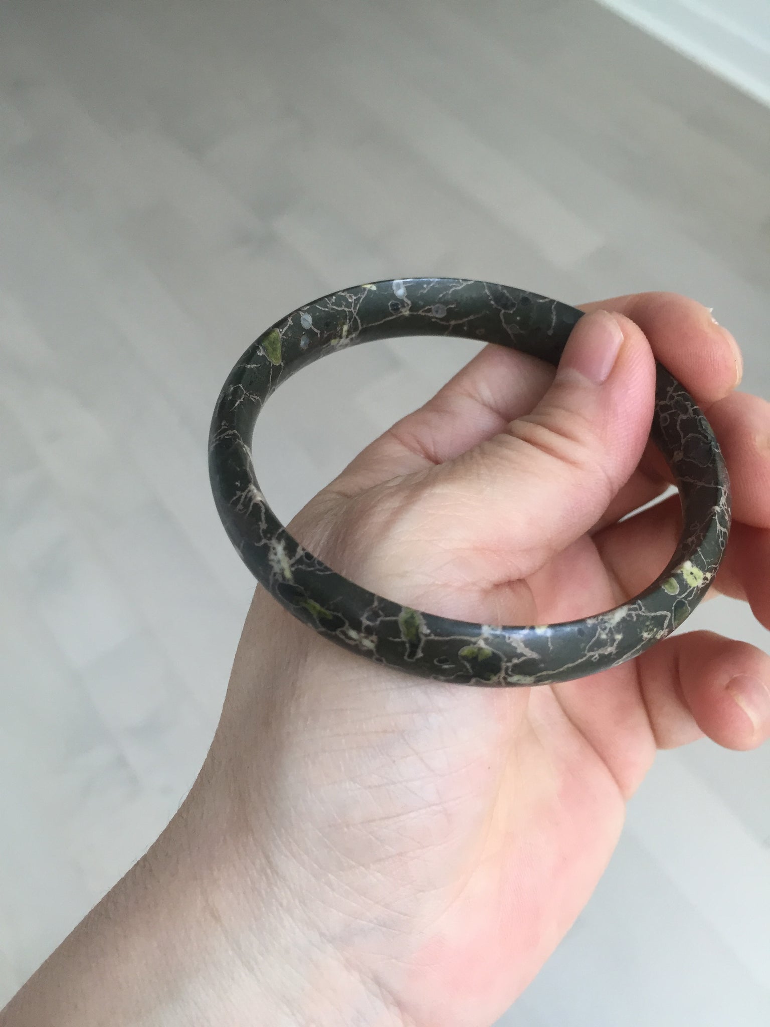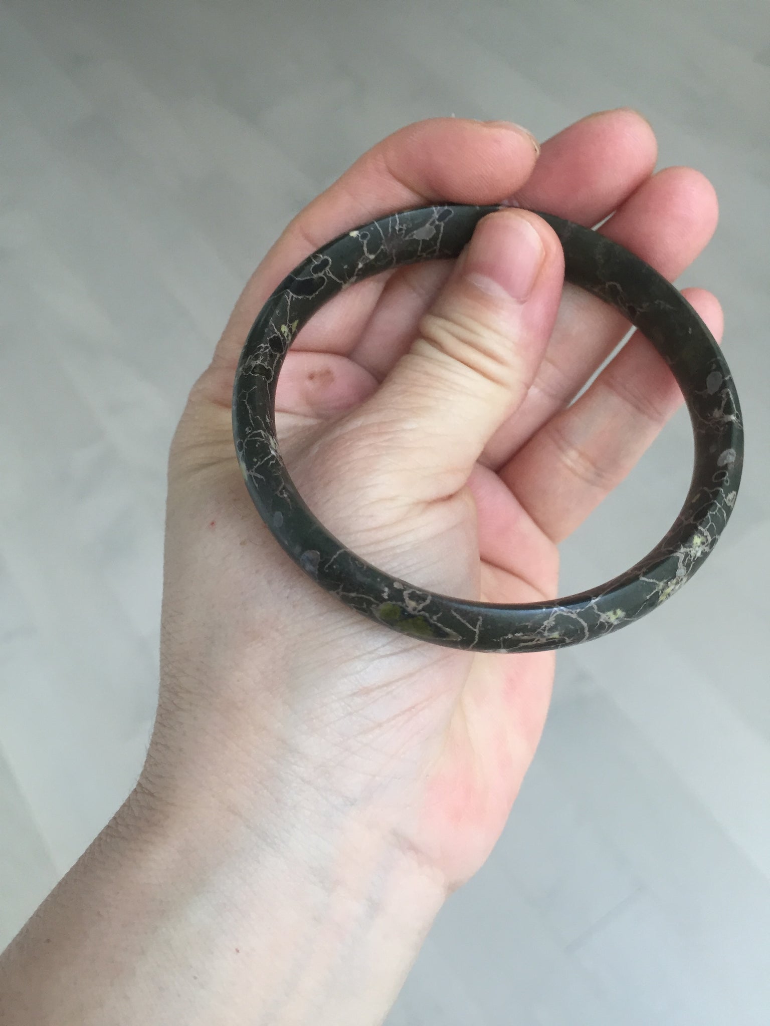 59.5mm 100% natural black background with white/yellow/red flowers Plum blossom Jade(梅花玉) bangle SY98-7