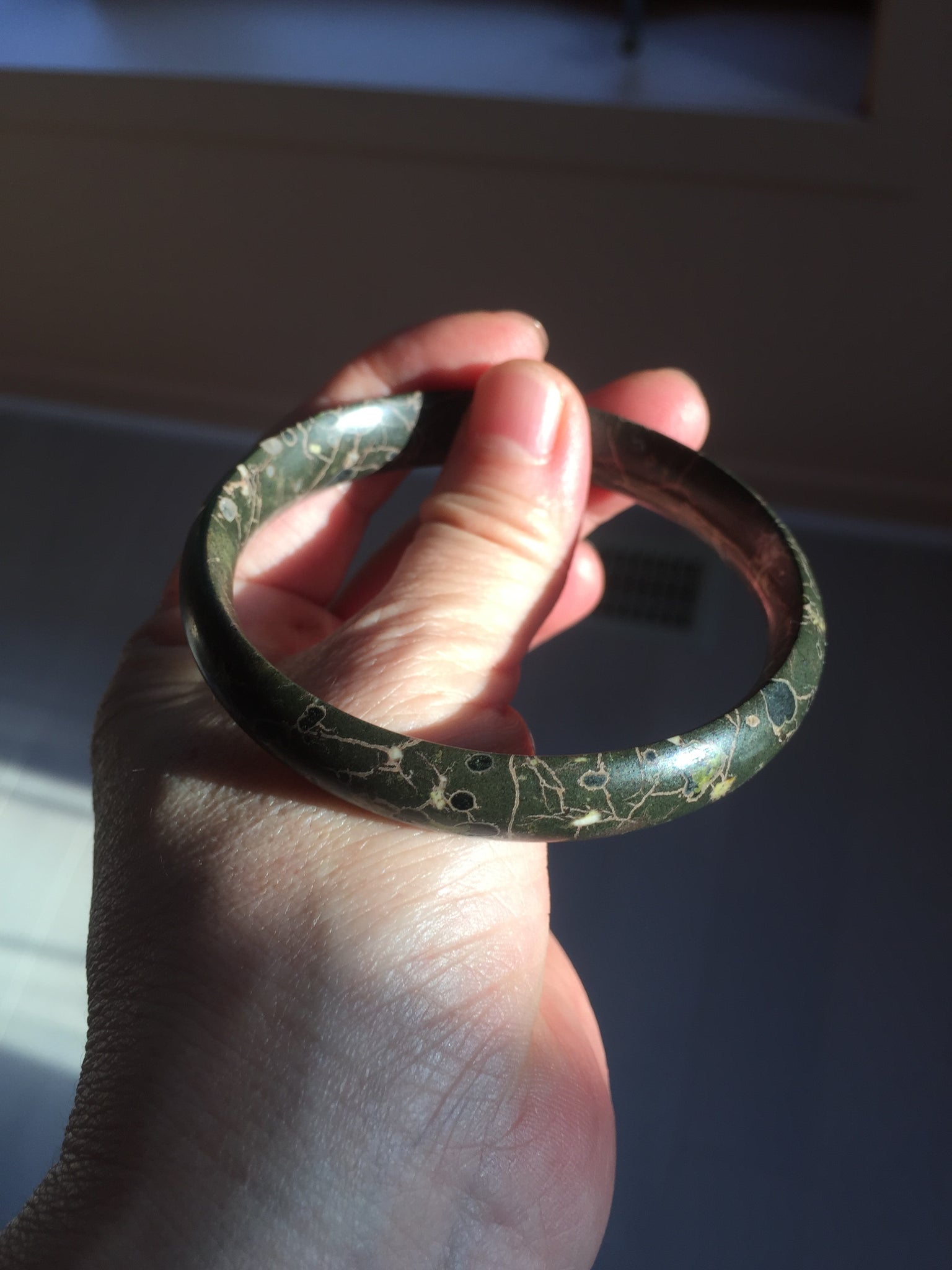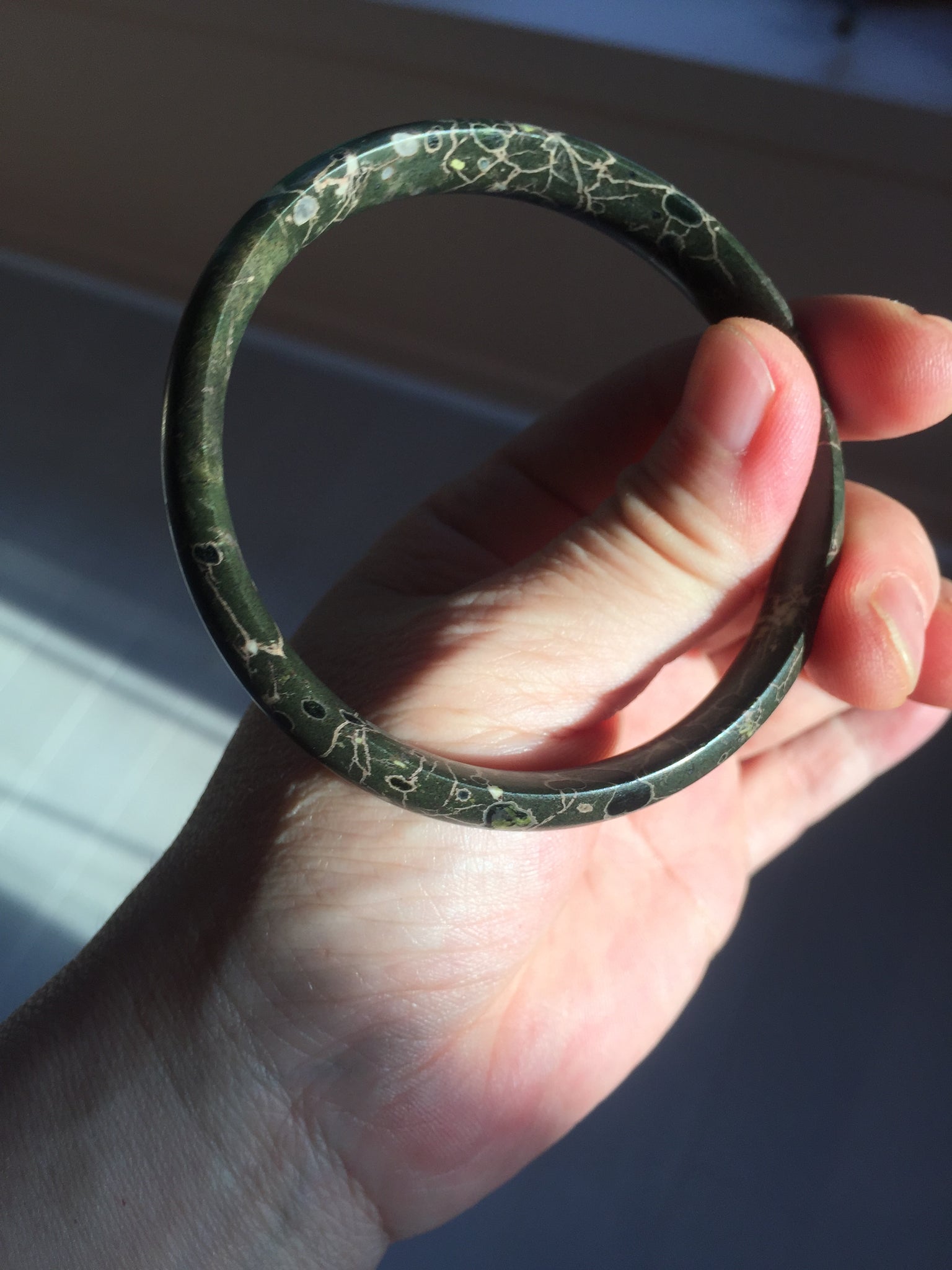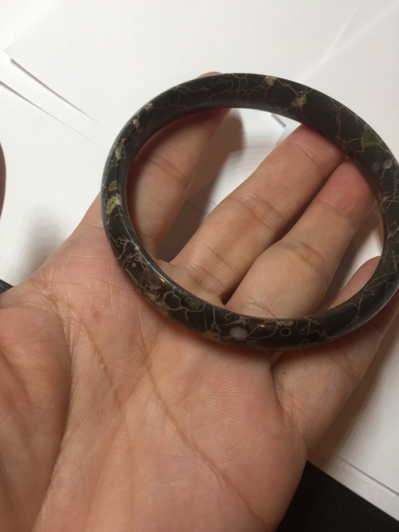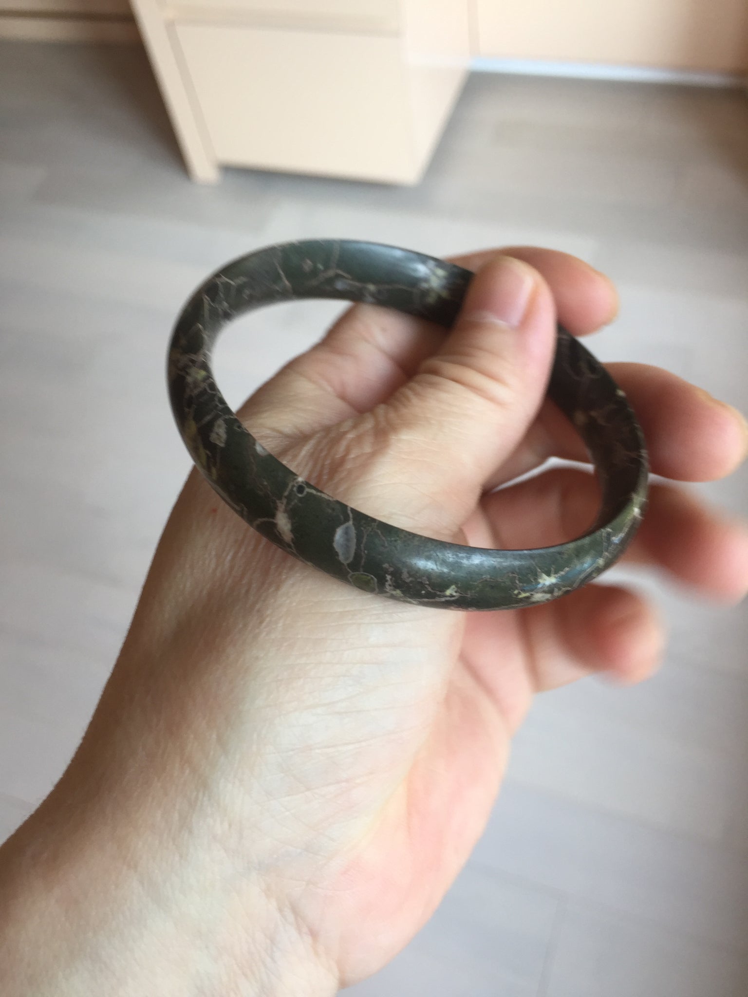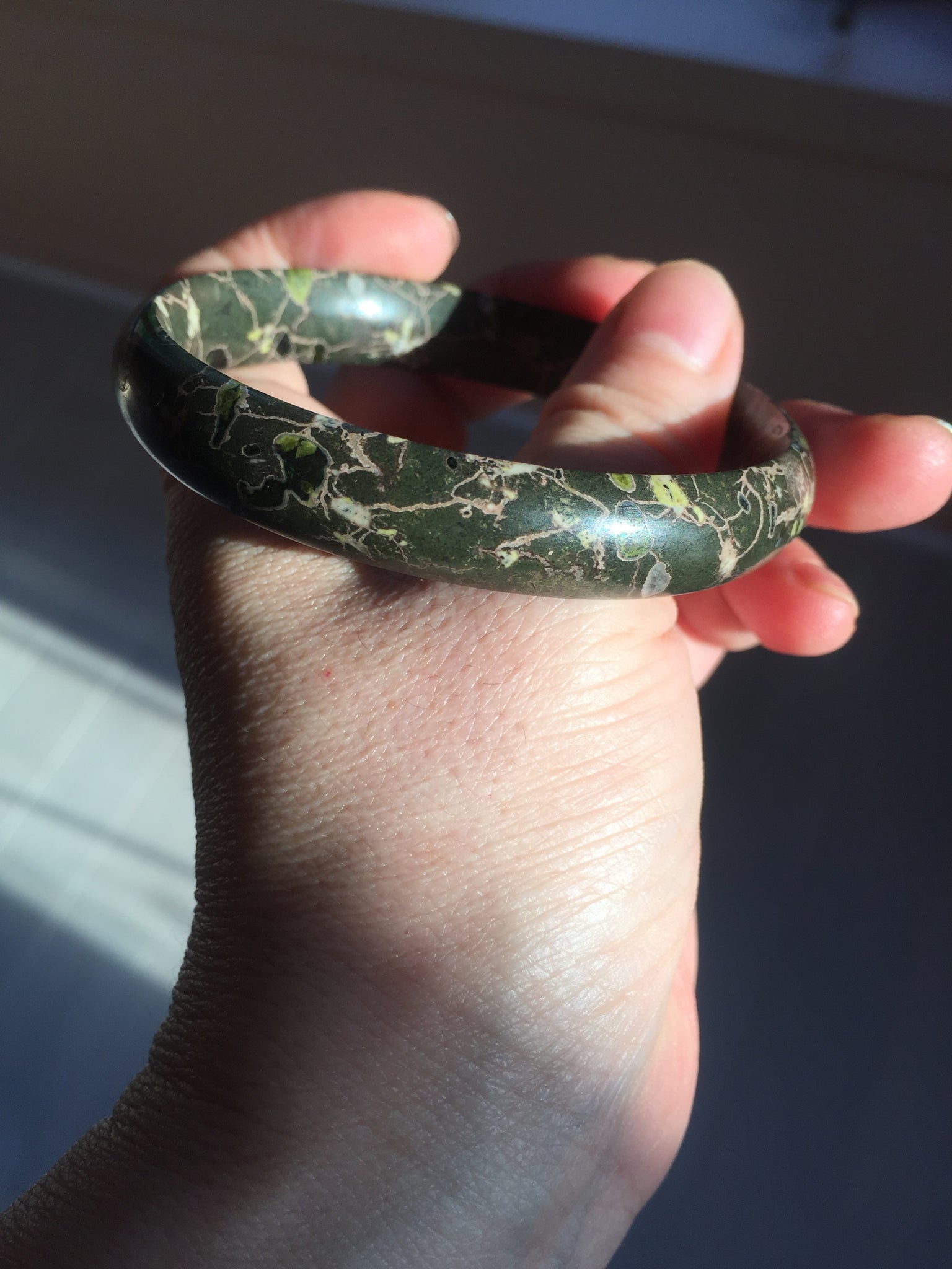 59.5mm 100% natural black background with white/yellow/red flowers Plum blossom Jade(梅花玉) bangle SY98-7