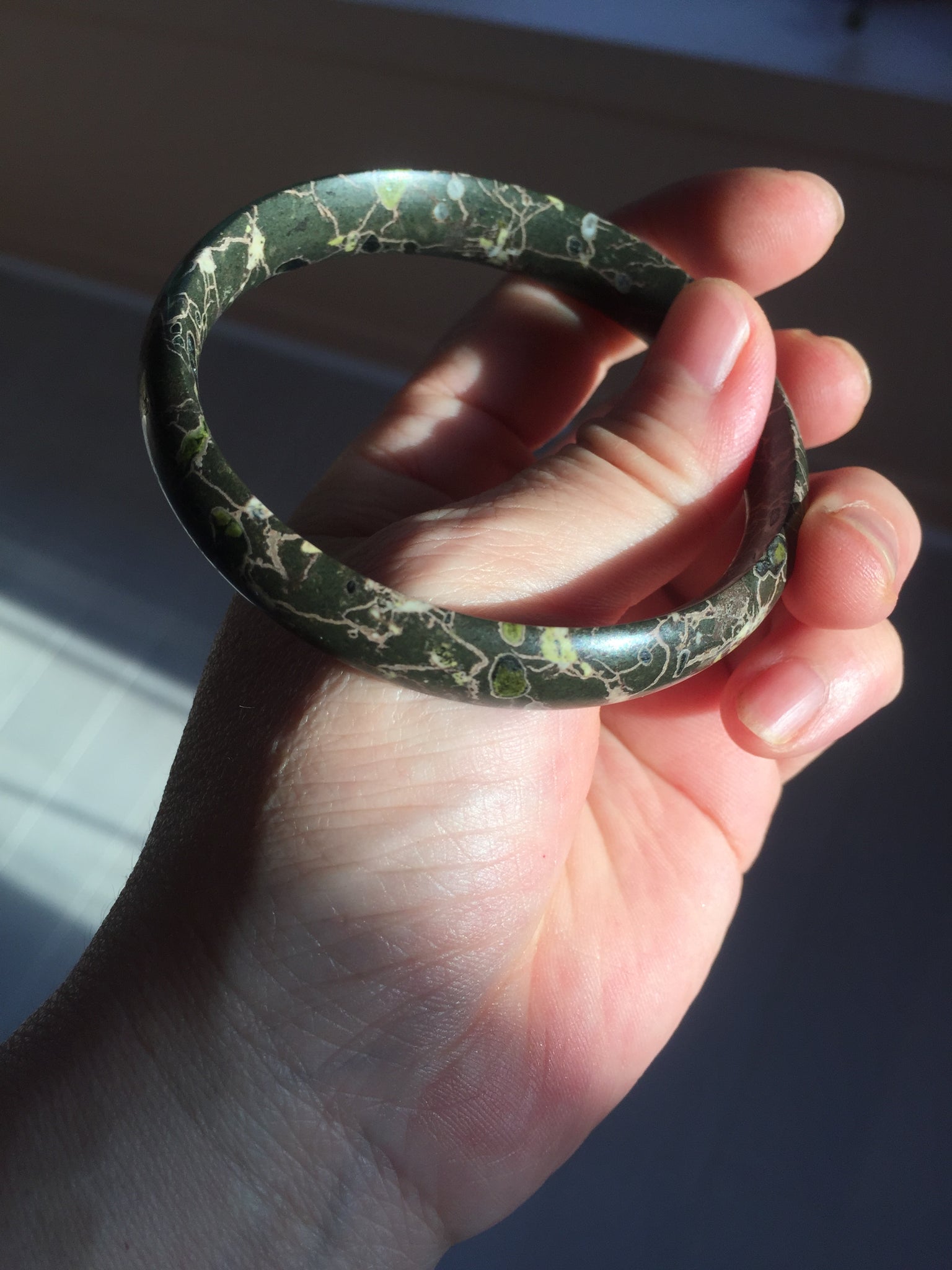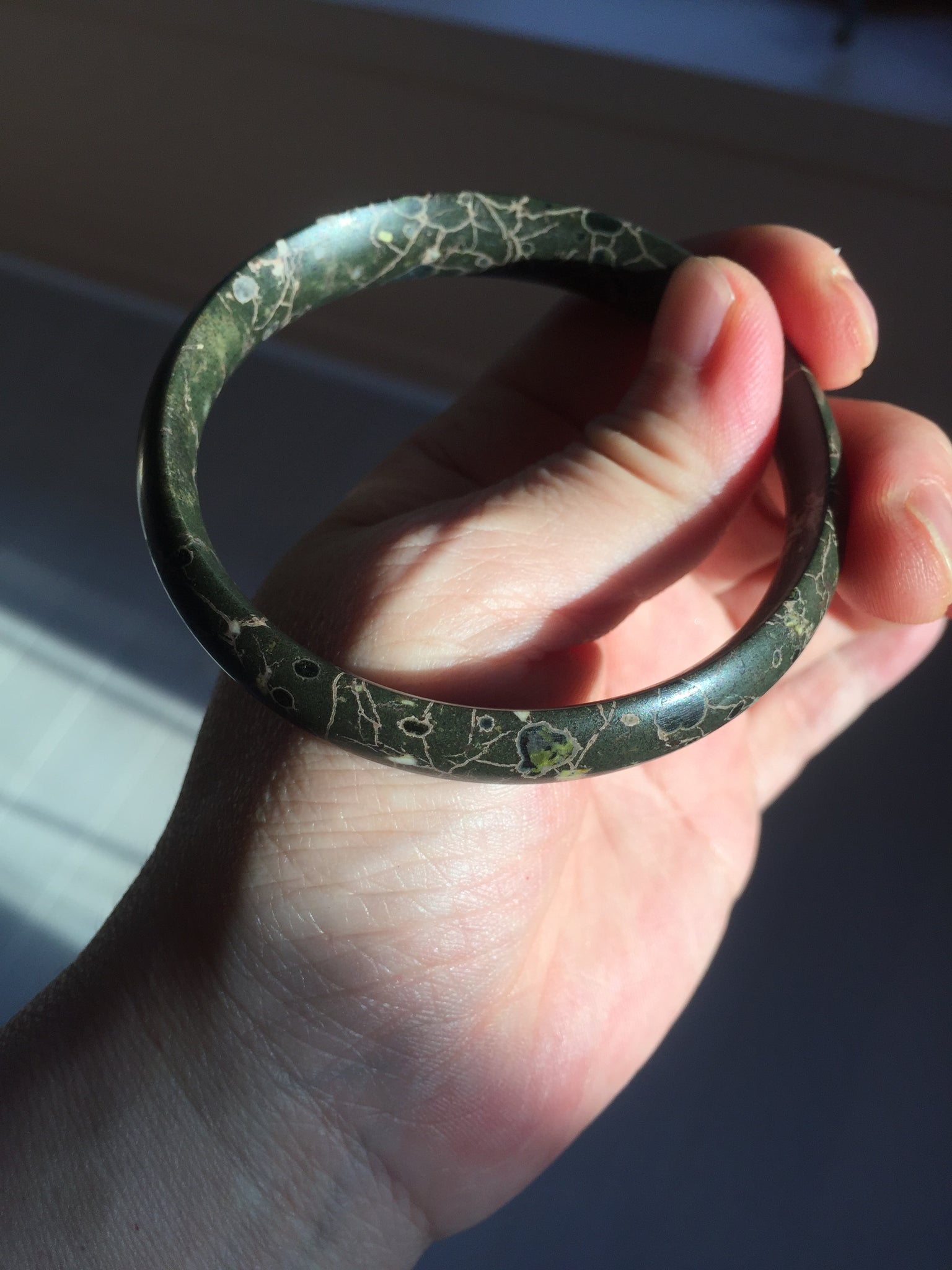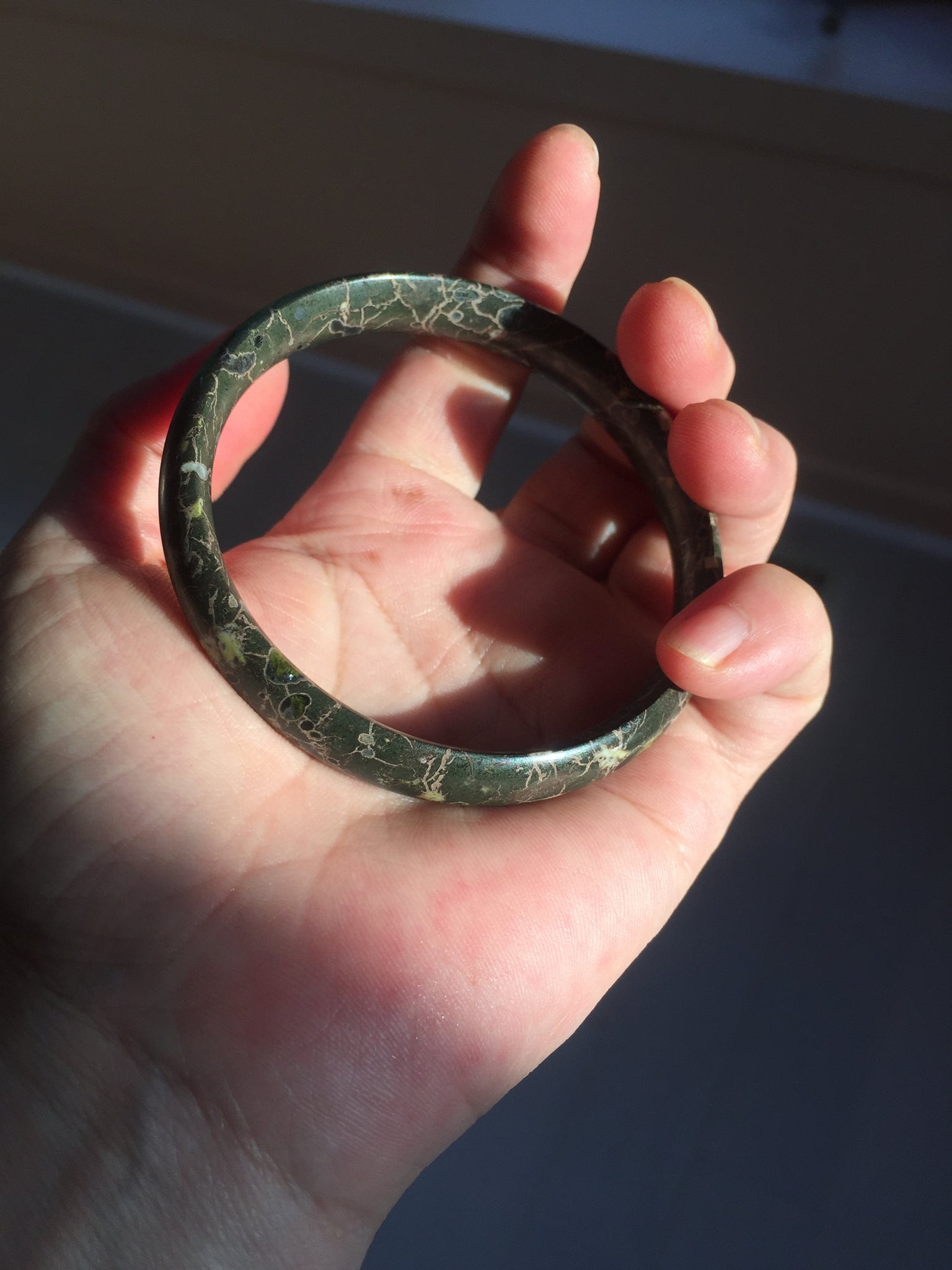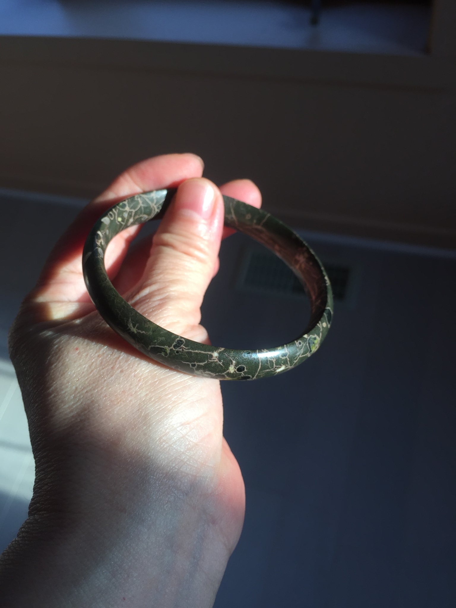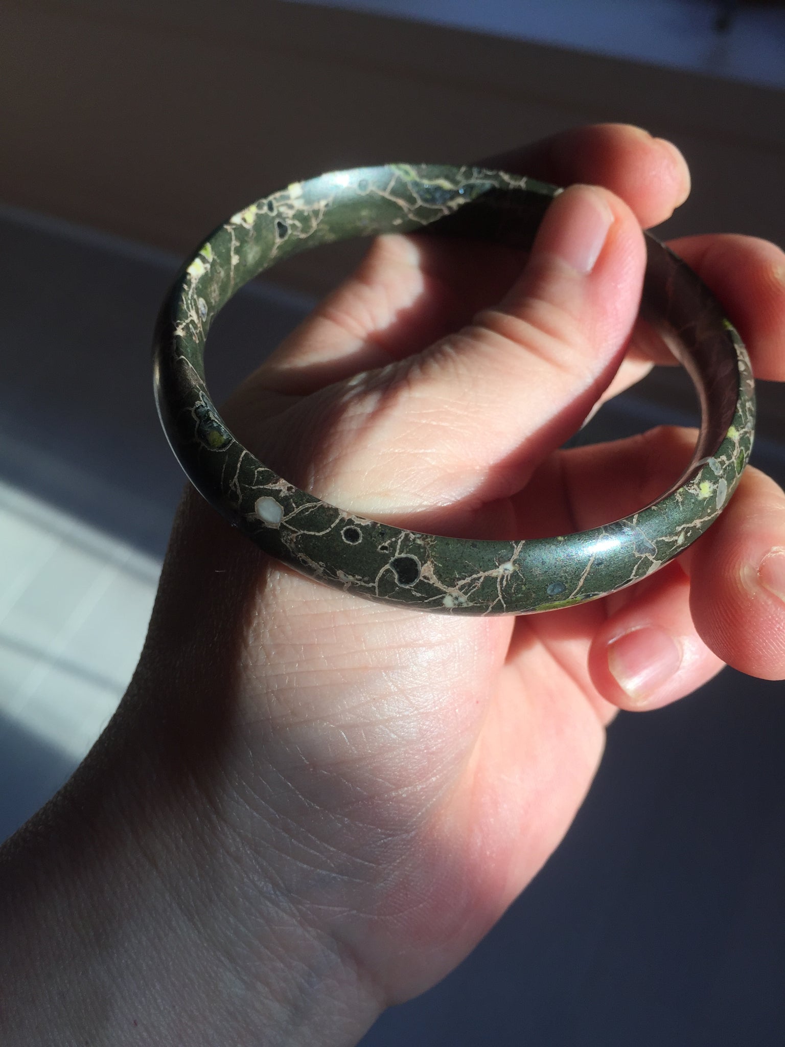 59.5mm 100% natural black background with white/yellow/red flowers Plum blossom Jade(梅花玉) bangle SY98-7