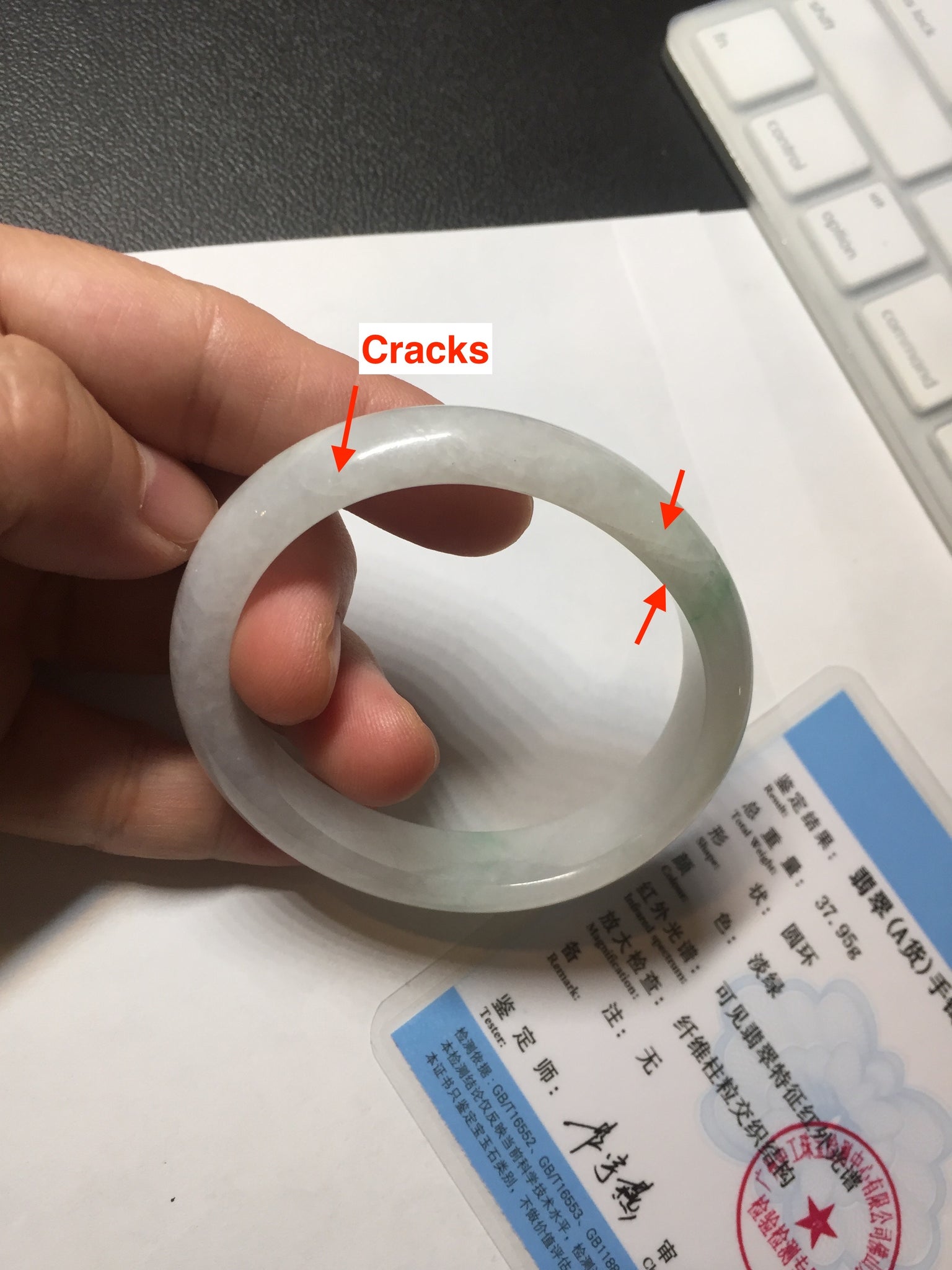 Flaws: Some cracks. The bangle is still solid. Some hairlines, cotton lines, and structure lines.