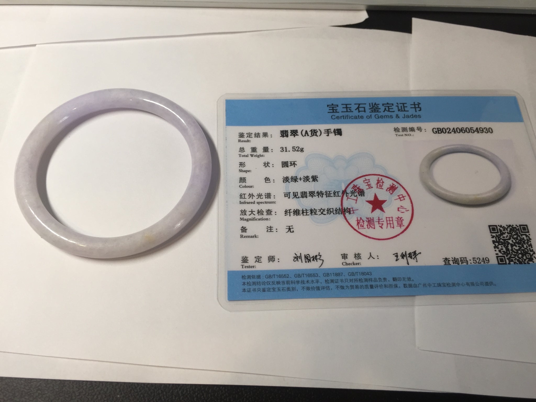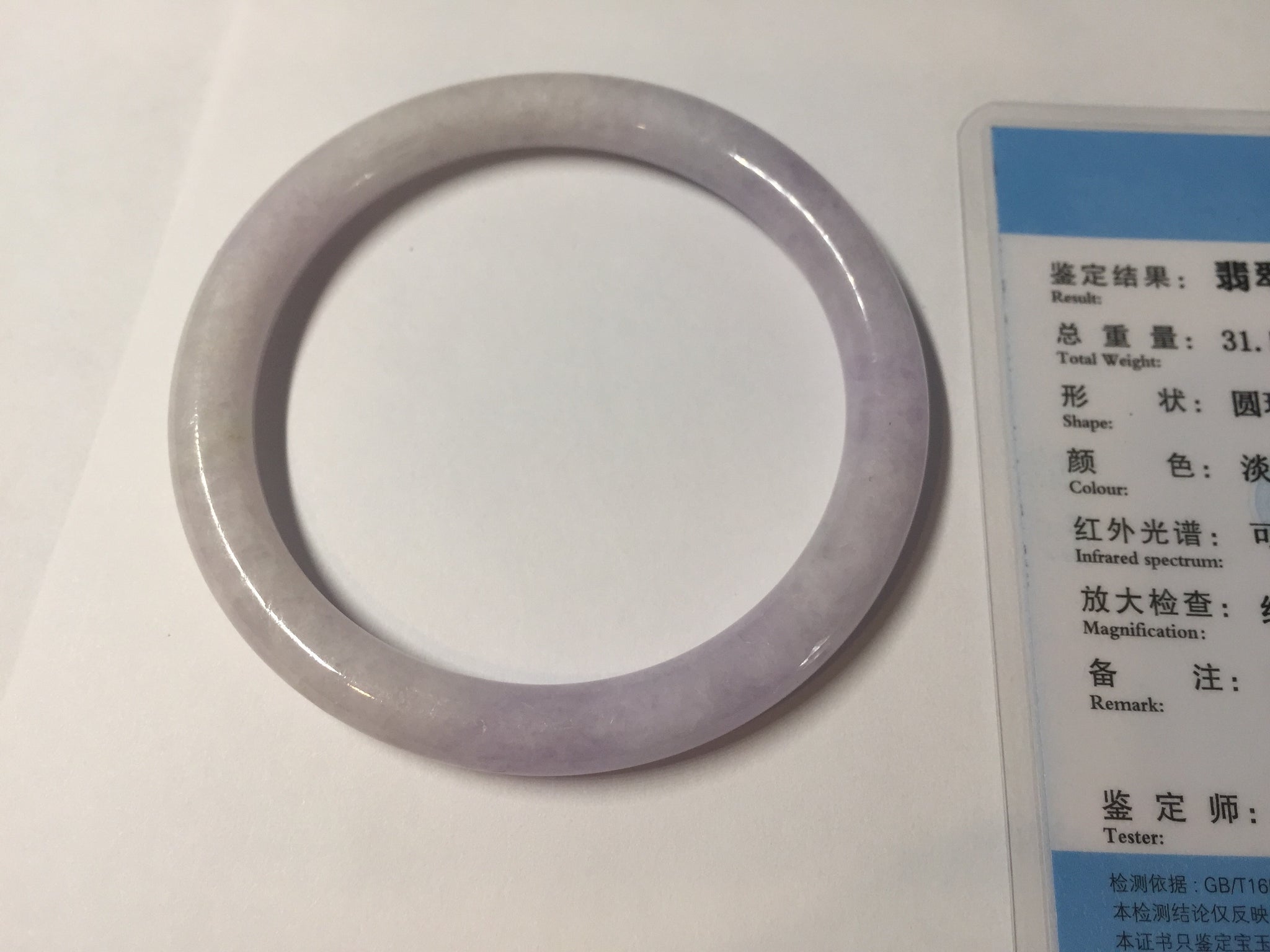 56.5mm certified Type A 100% Natural purple white oval Jadeite Jade bangle BQ75-4930