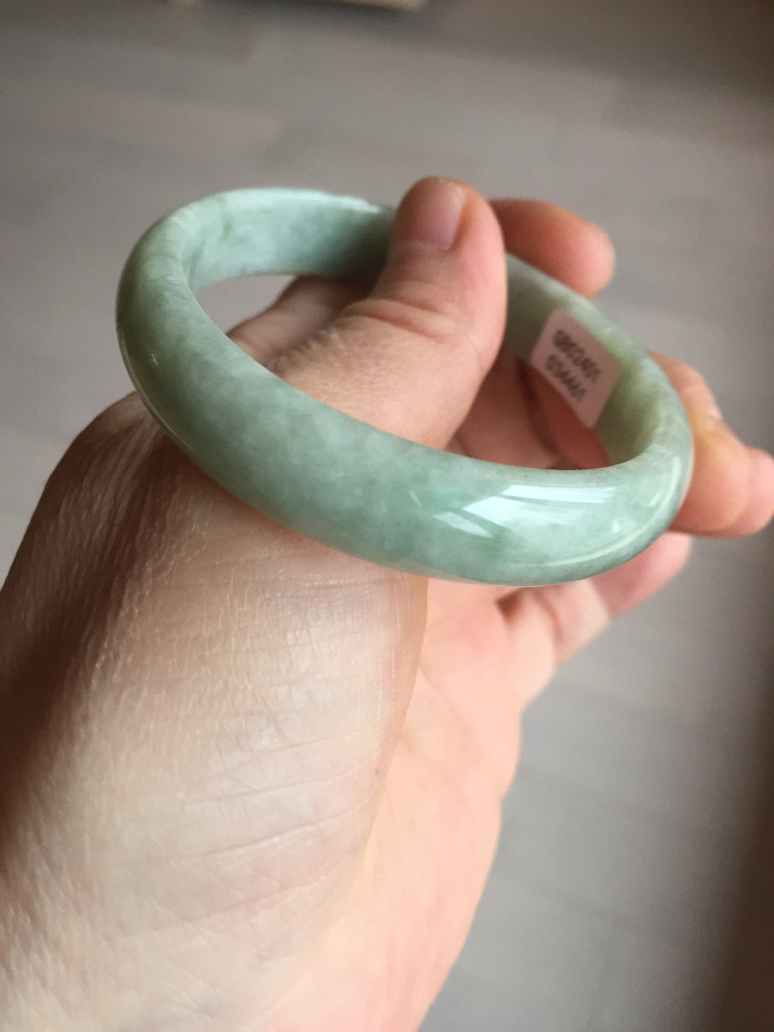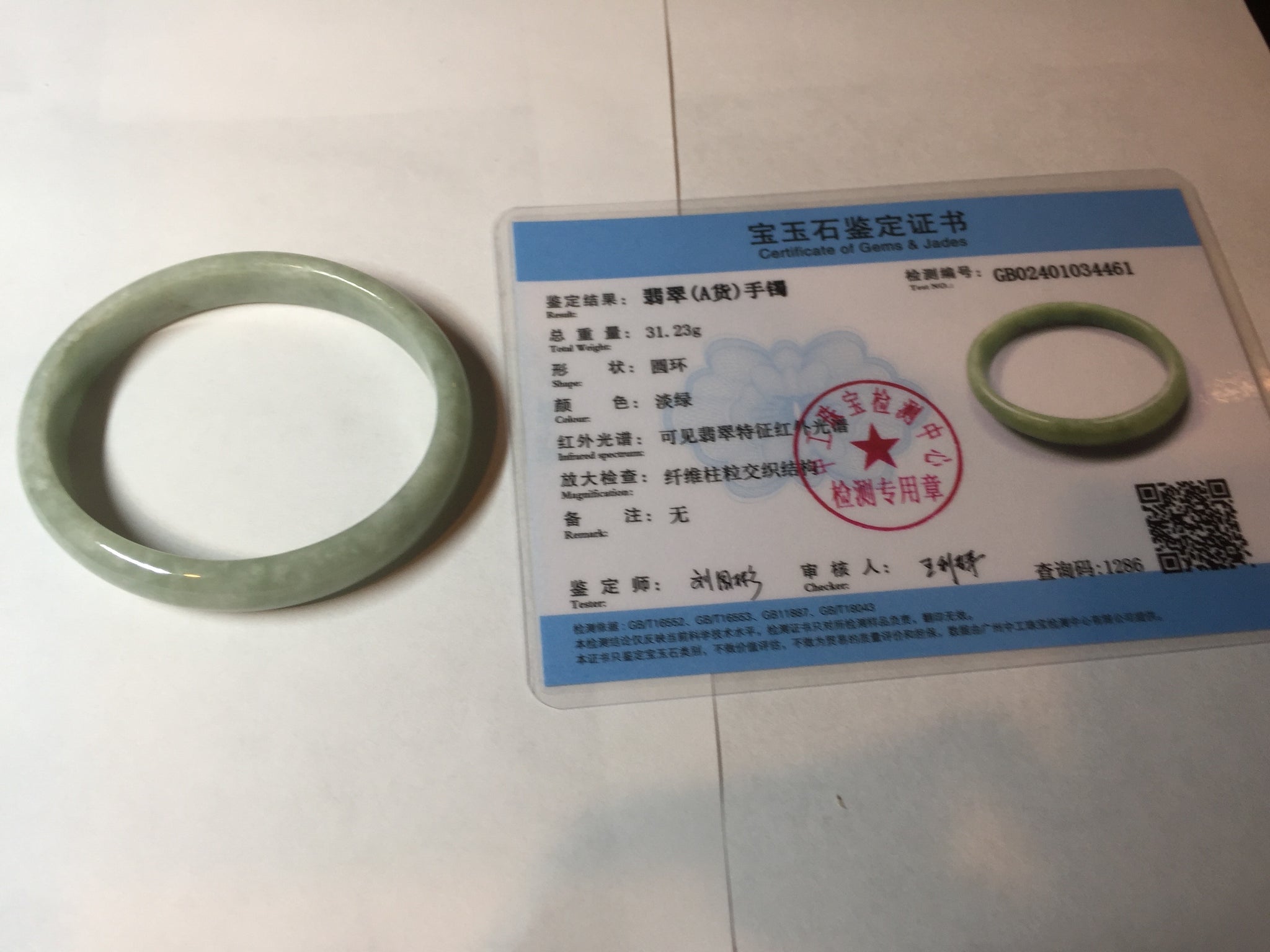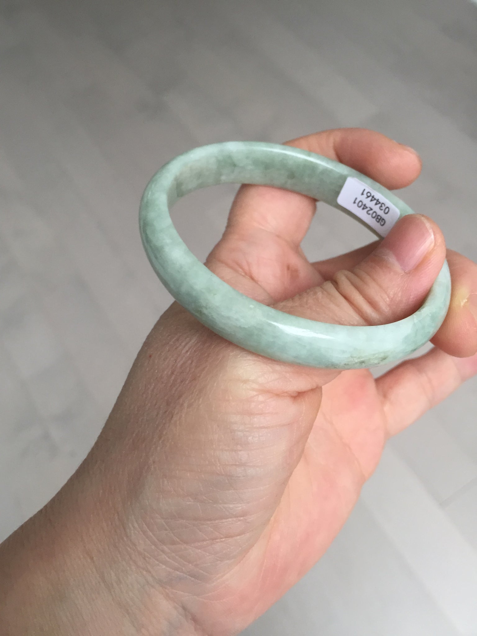 Imperfections: Some cracks, scratches, notches, and surface fissures. The bangle is still firm. Some hairlines and rough surfaces. Some cotton lines and cotton spots. Not transparent. Not watery.