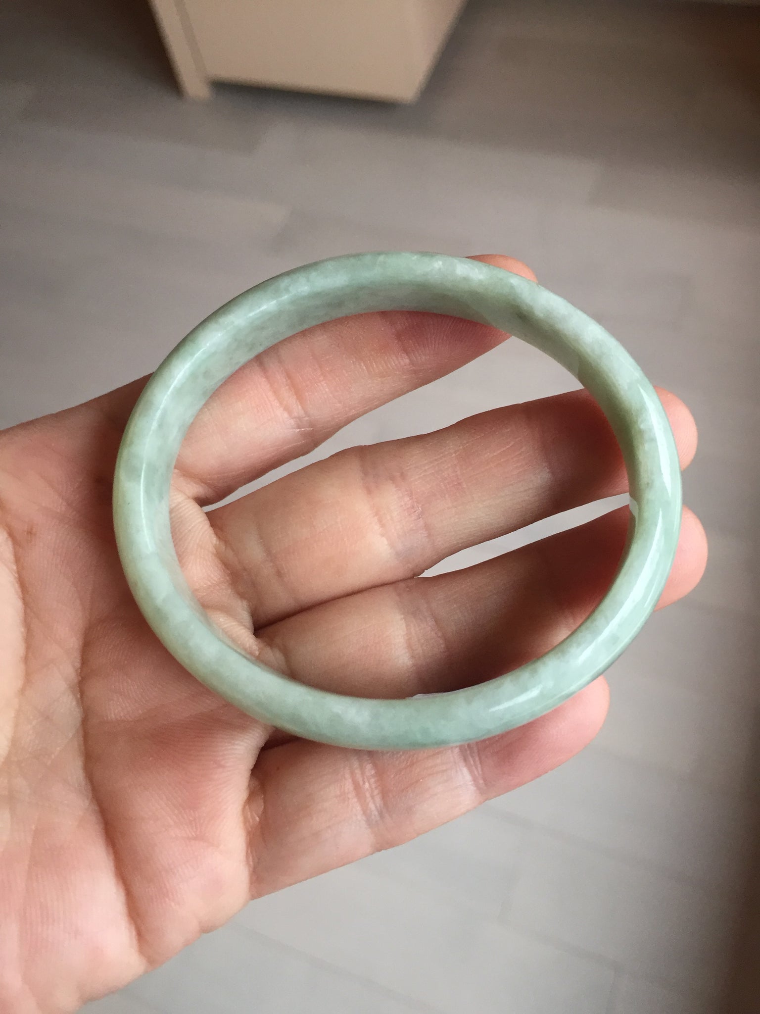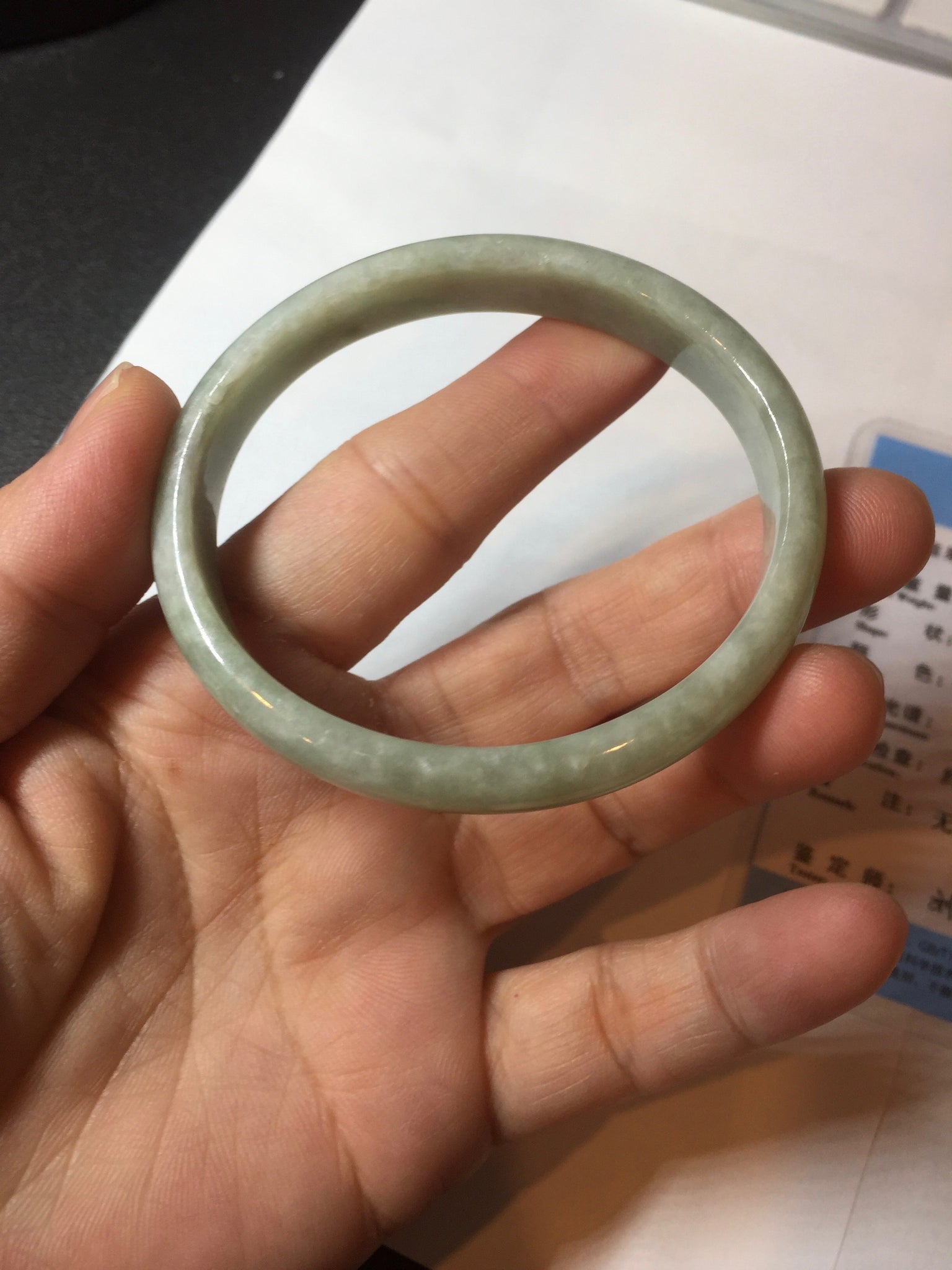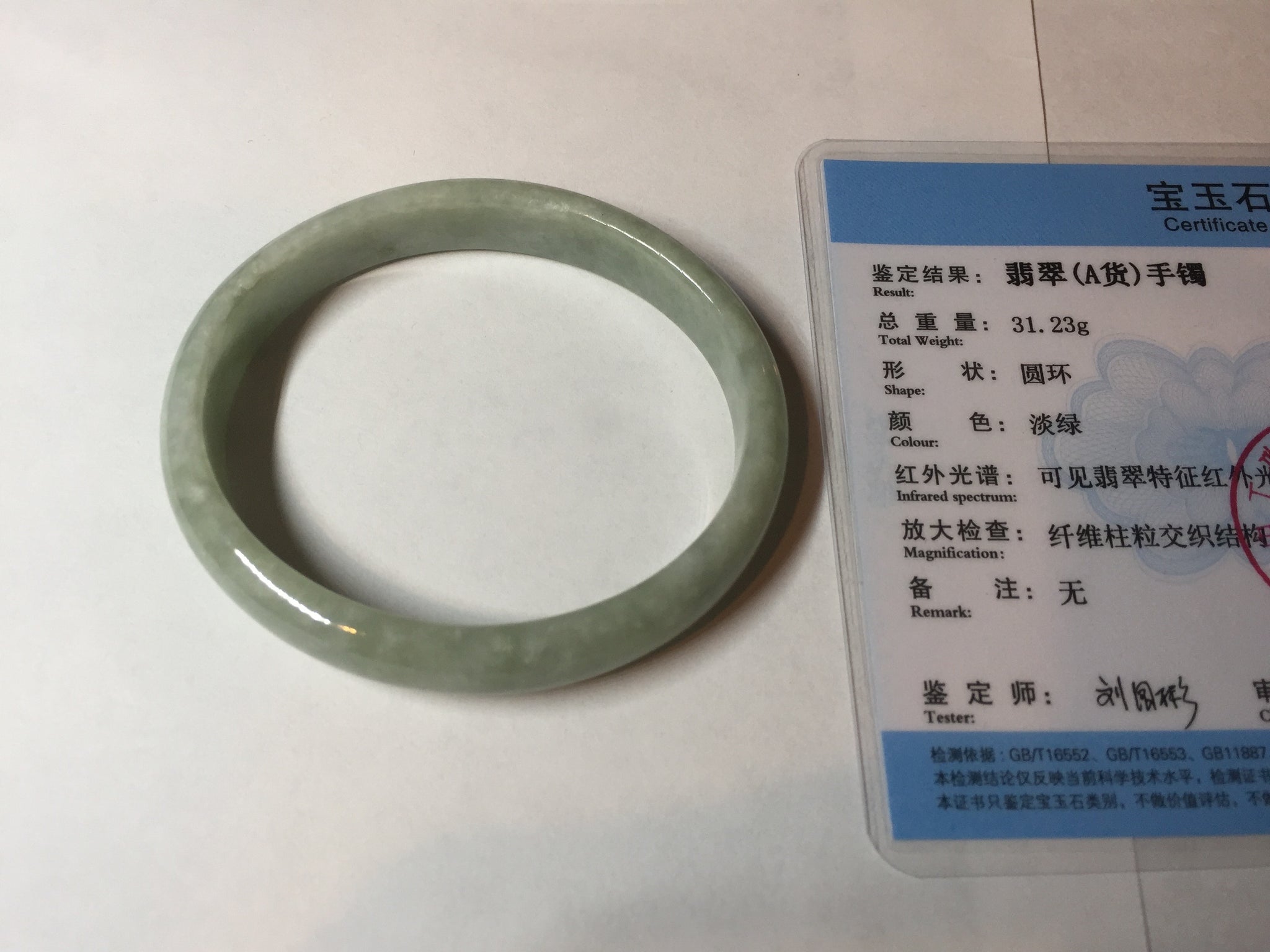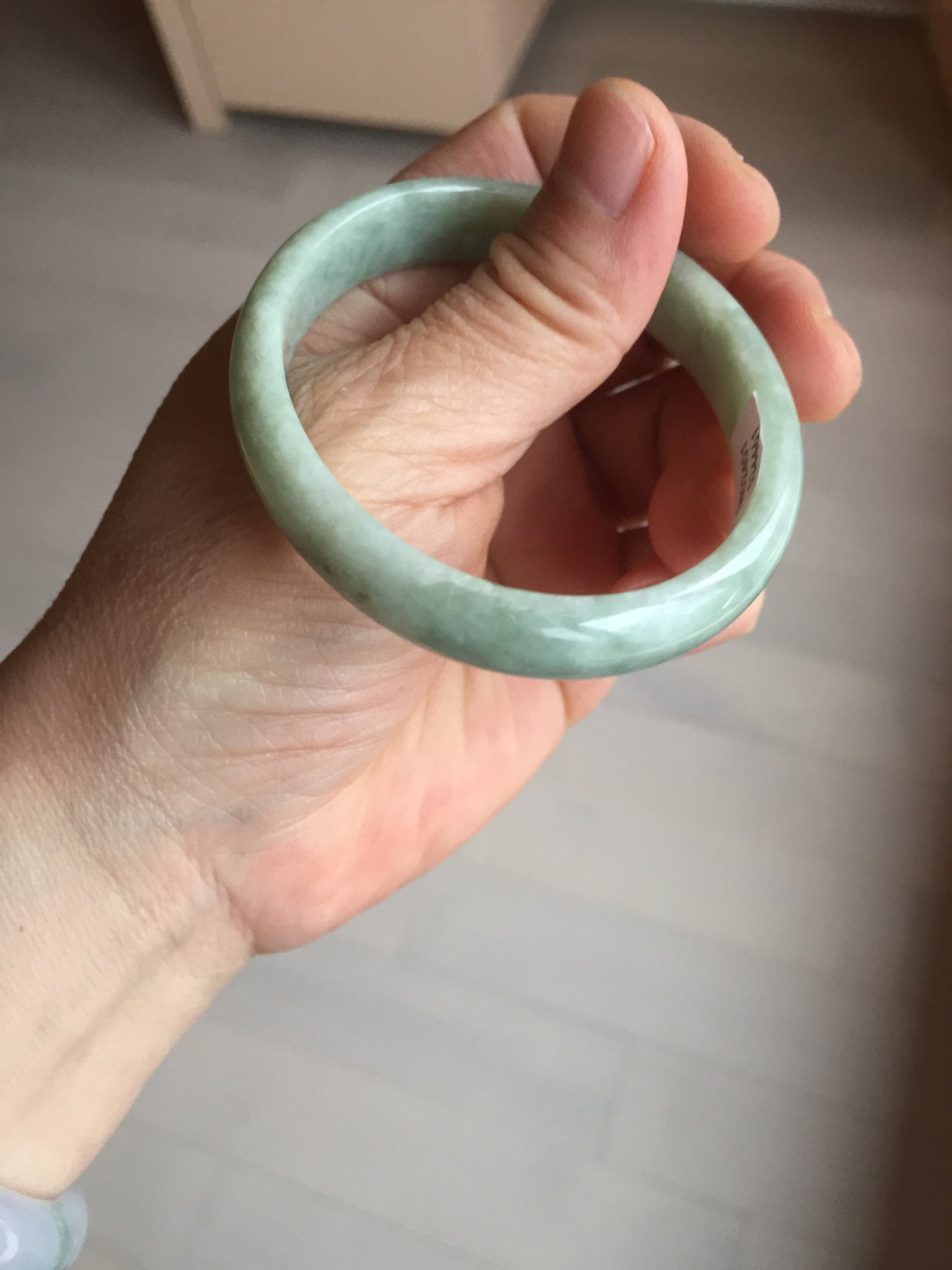 Imperfections: Some cracks, scratches, notches, and surface fissures. The bangle is still firm. Some hairlines and rough surfaces. Some cotton lines and cotton spots. Not transparent. Not watery.