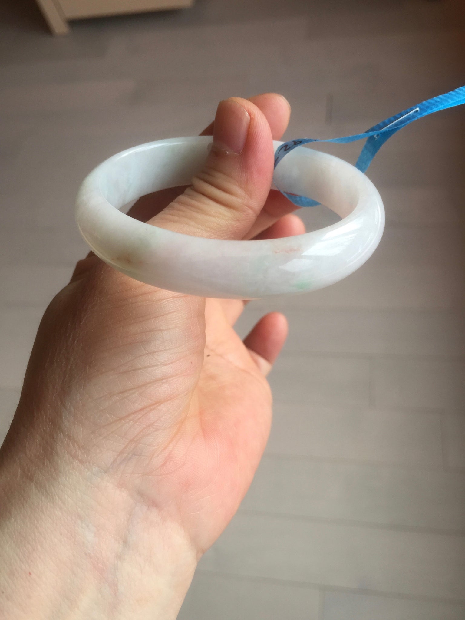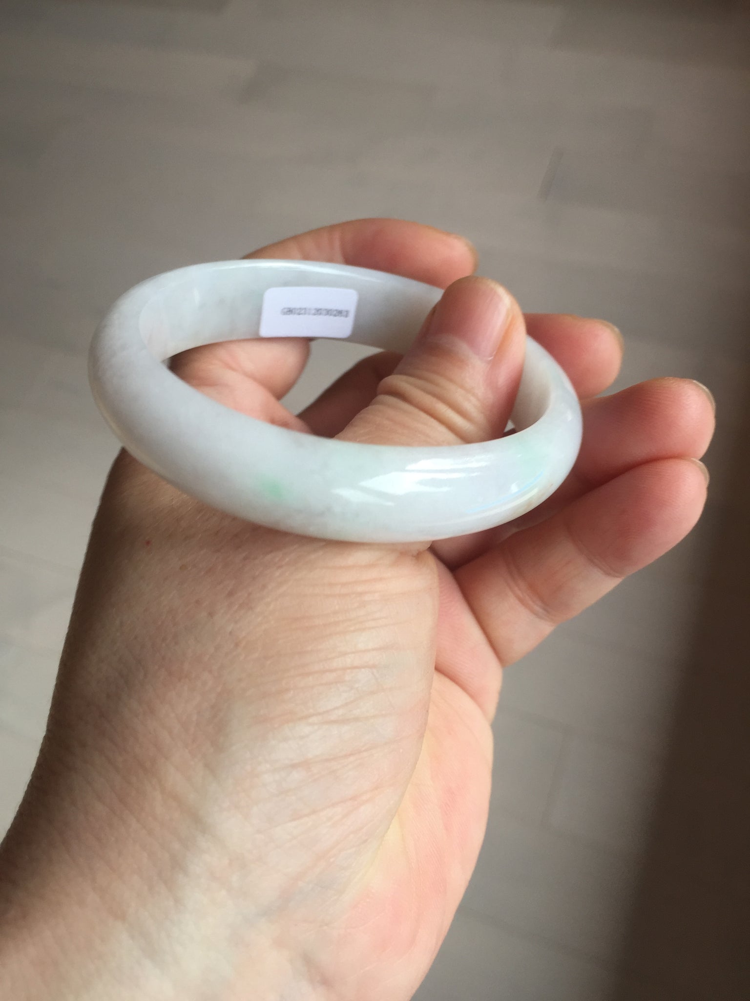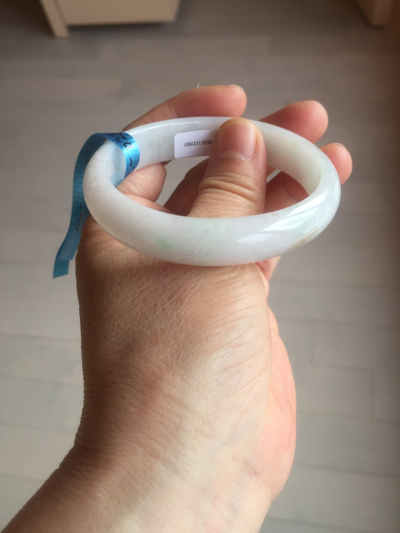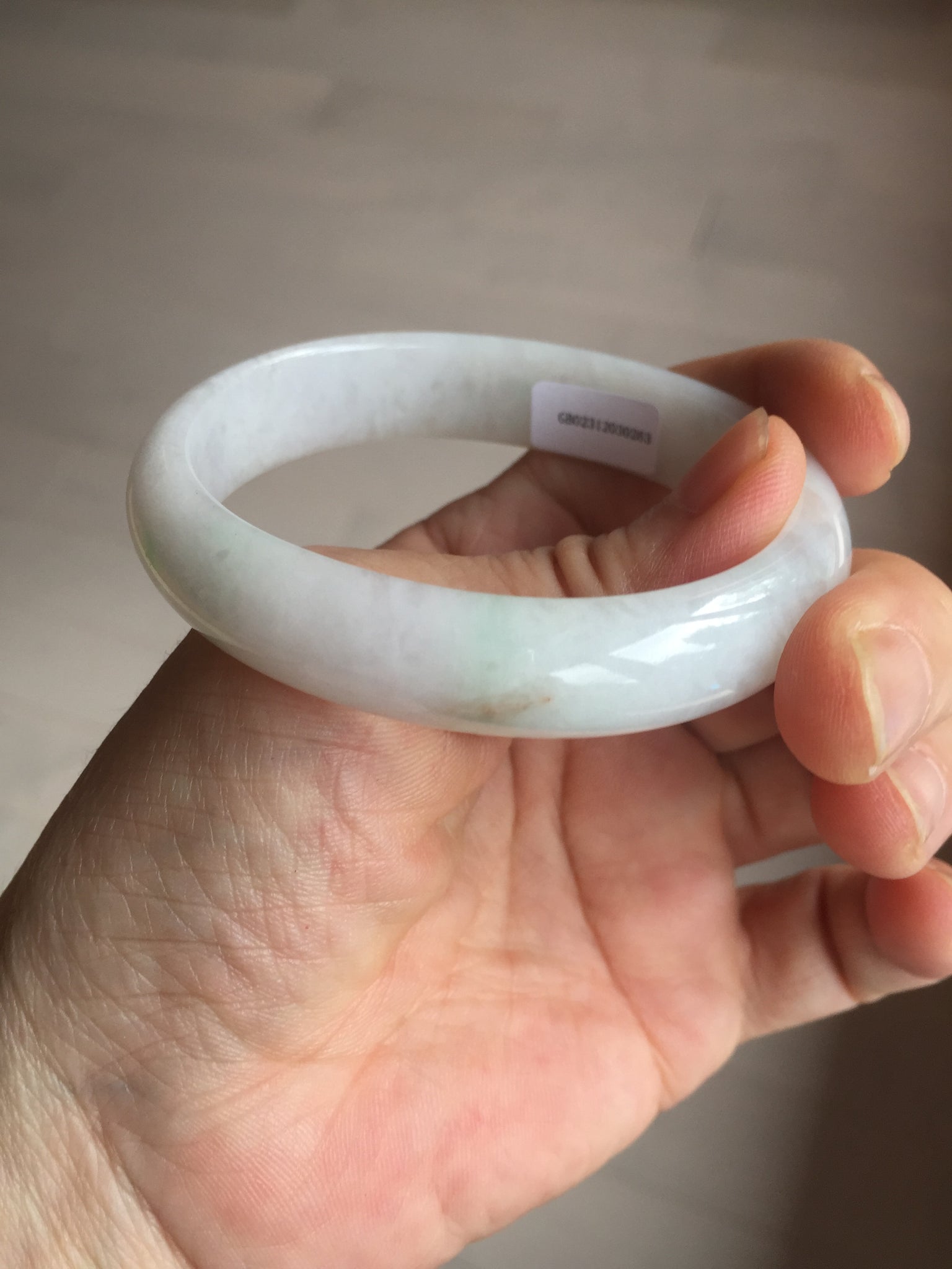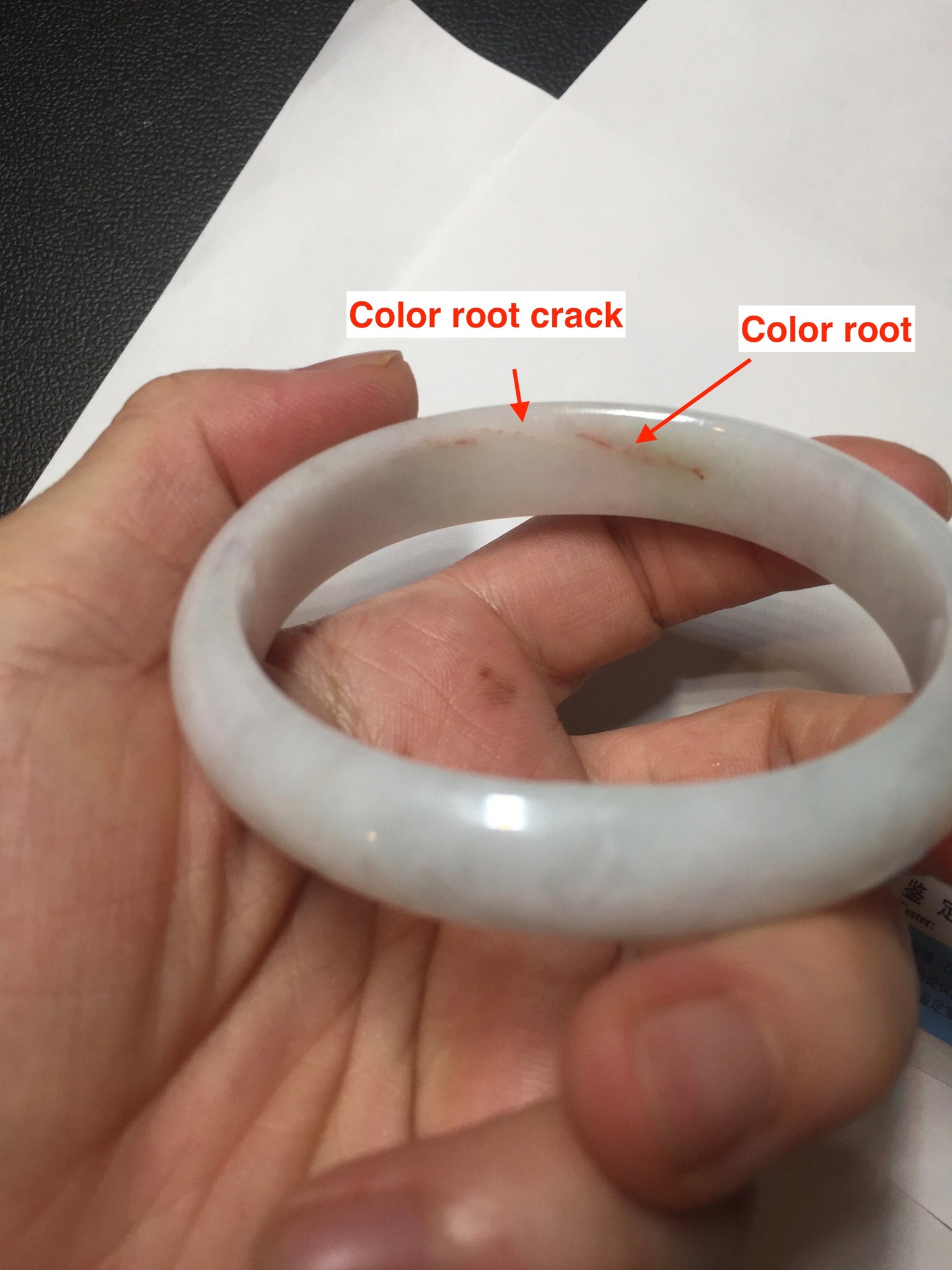 Imperfections: One crack. Some scratches, hairlines, rough surfaces, cotton lines, and cotton spots. It is not transparent or watery.