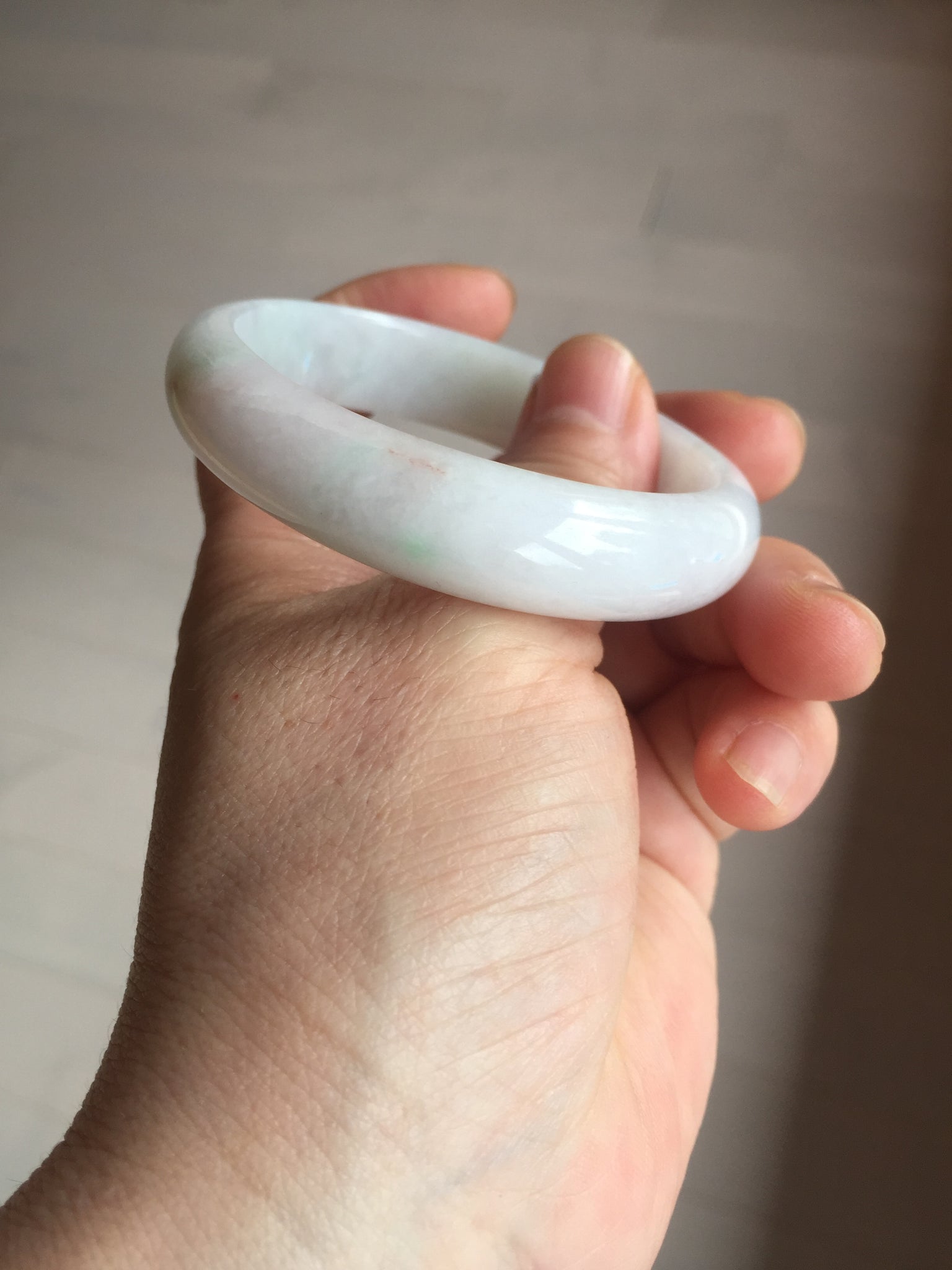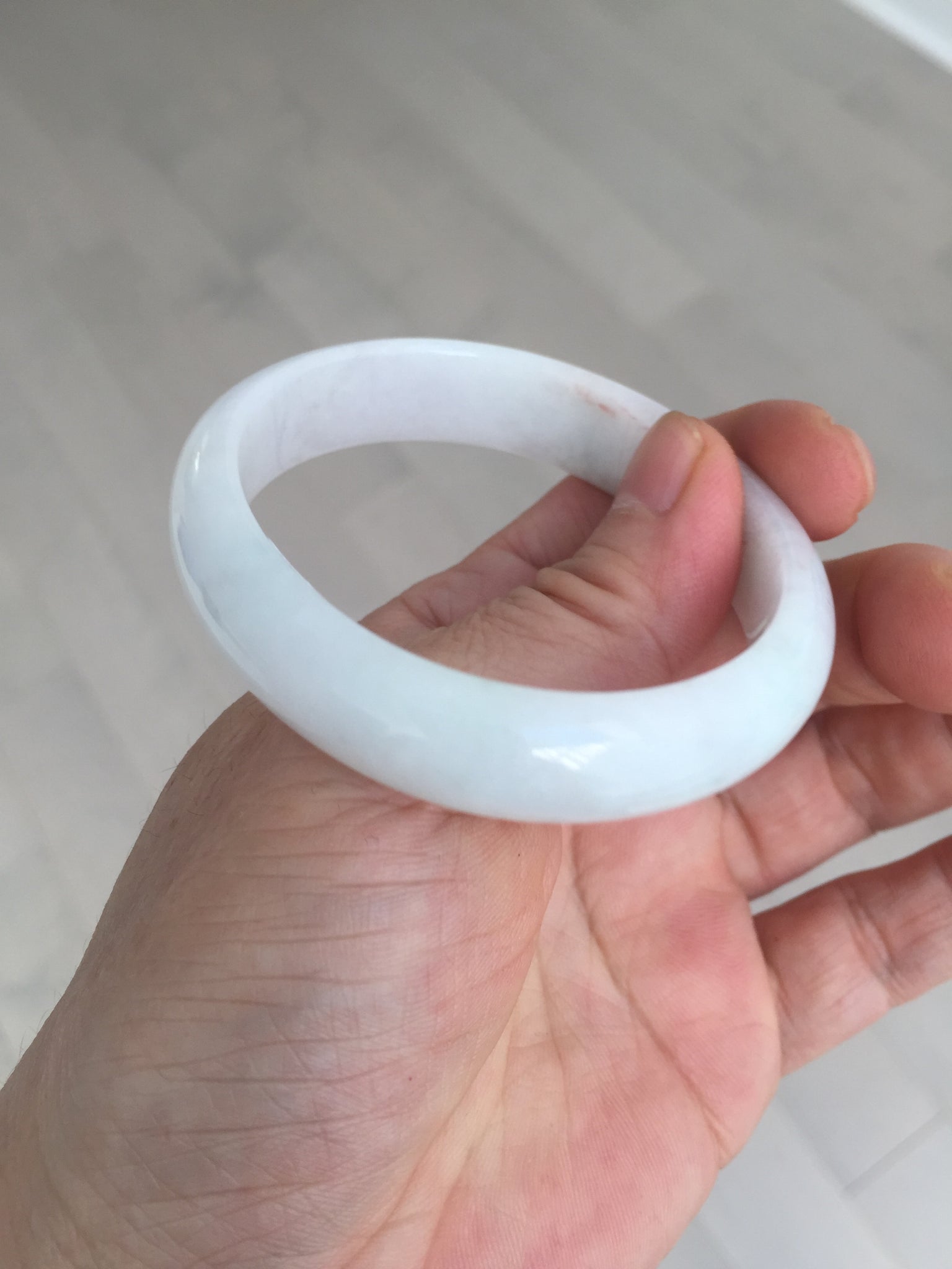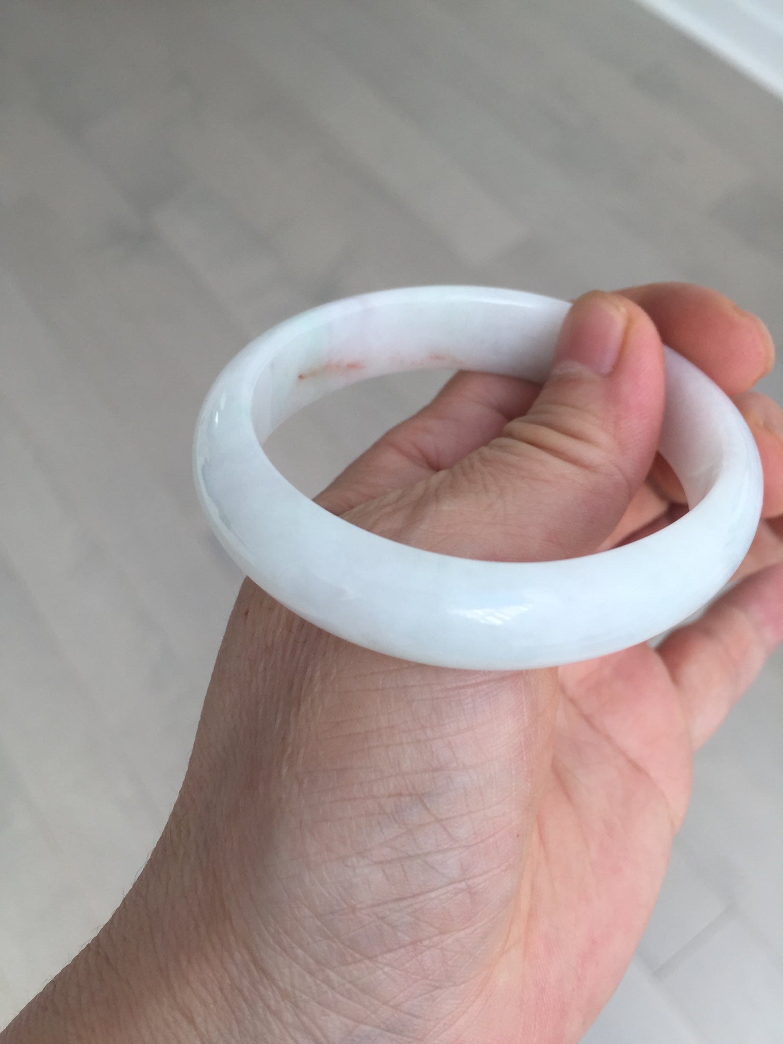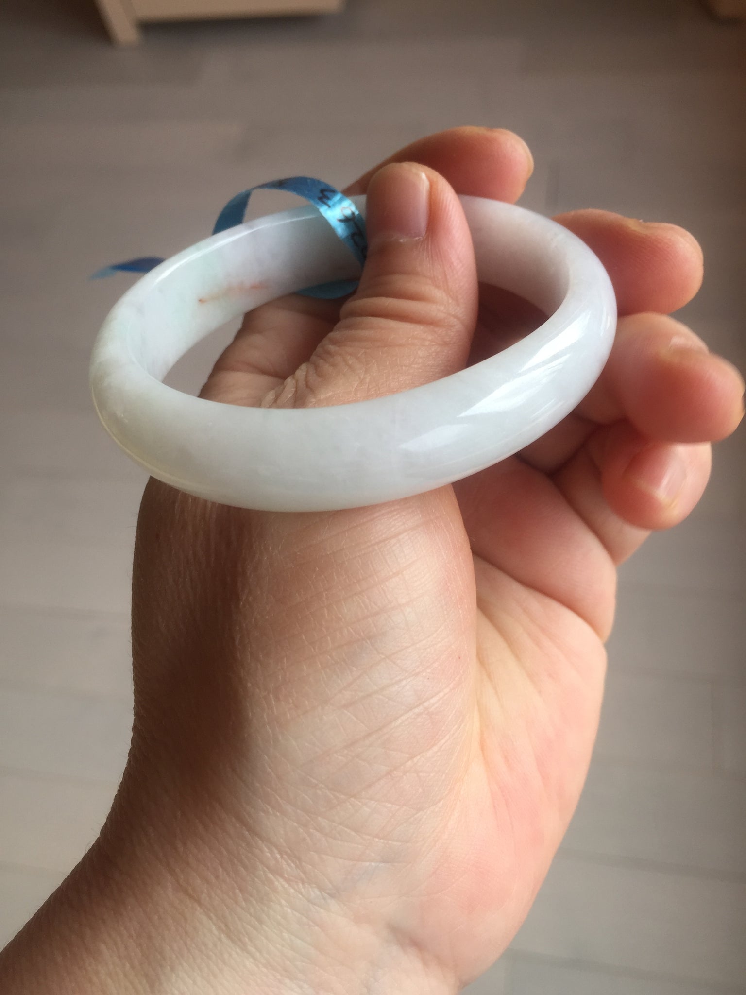 Imperfections: One crack. Some scratches, hairlines, rough surfaces, cotton lines, and cotton spots. It is not transparent or watery.