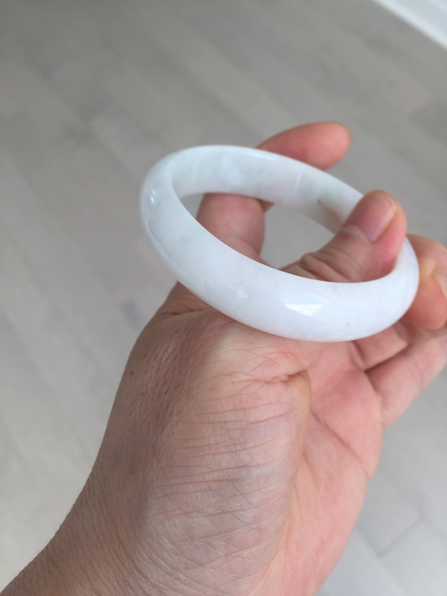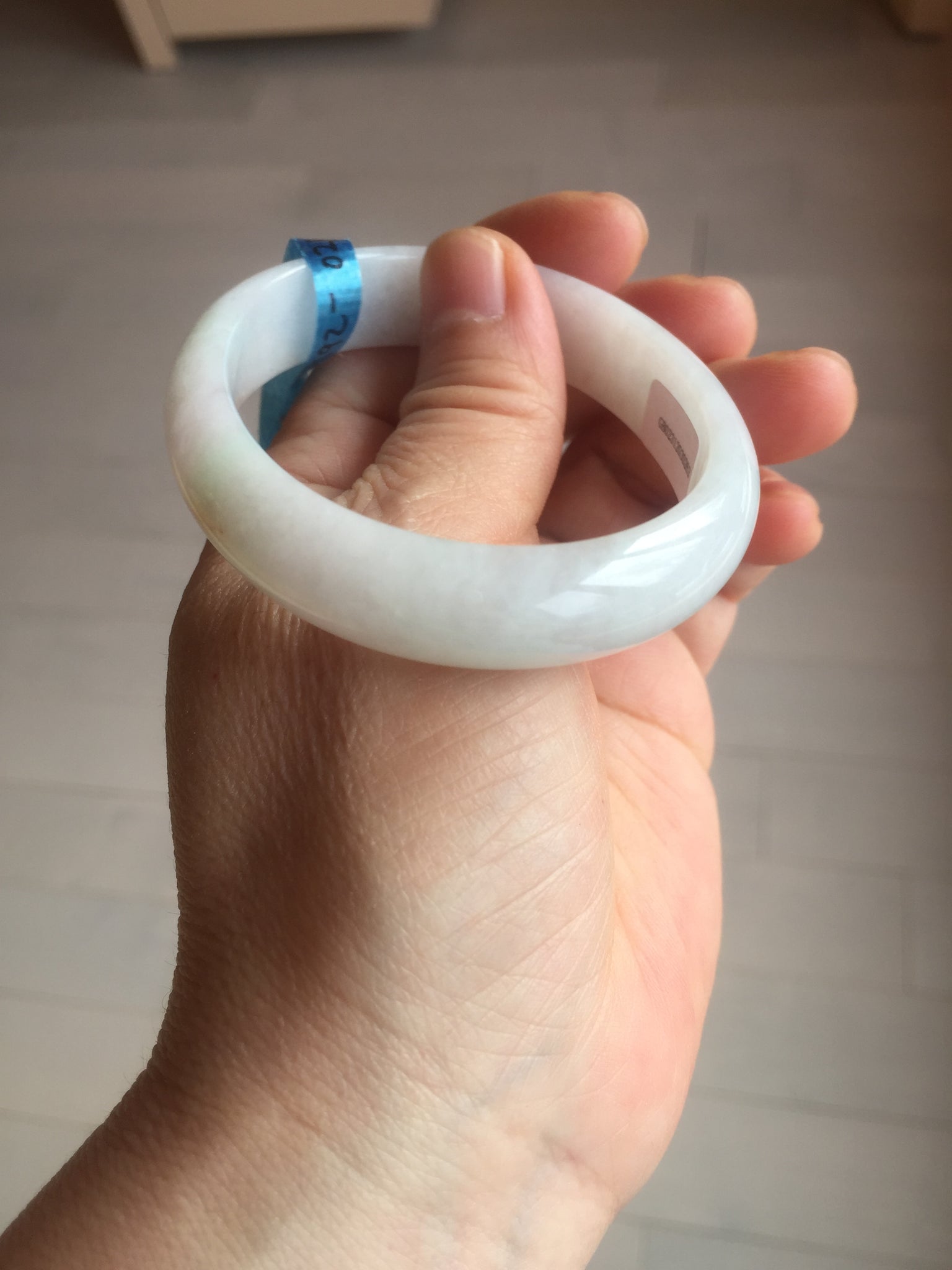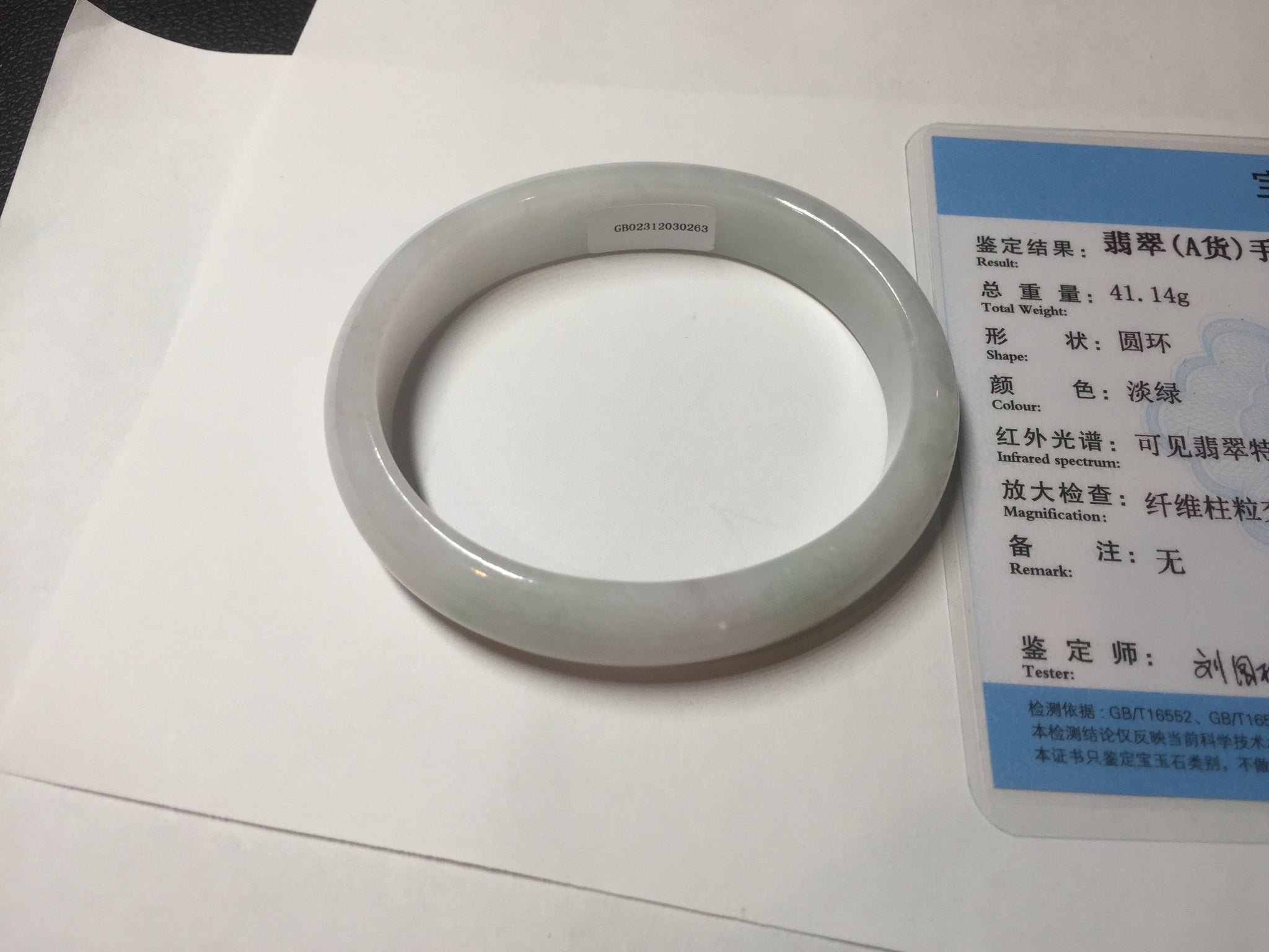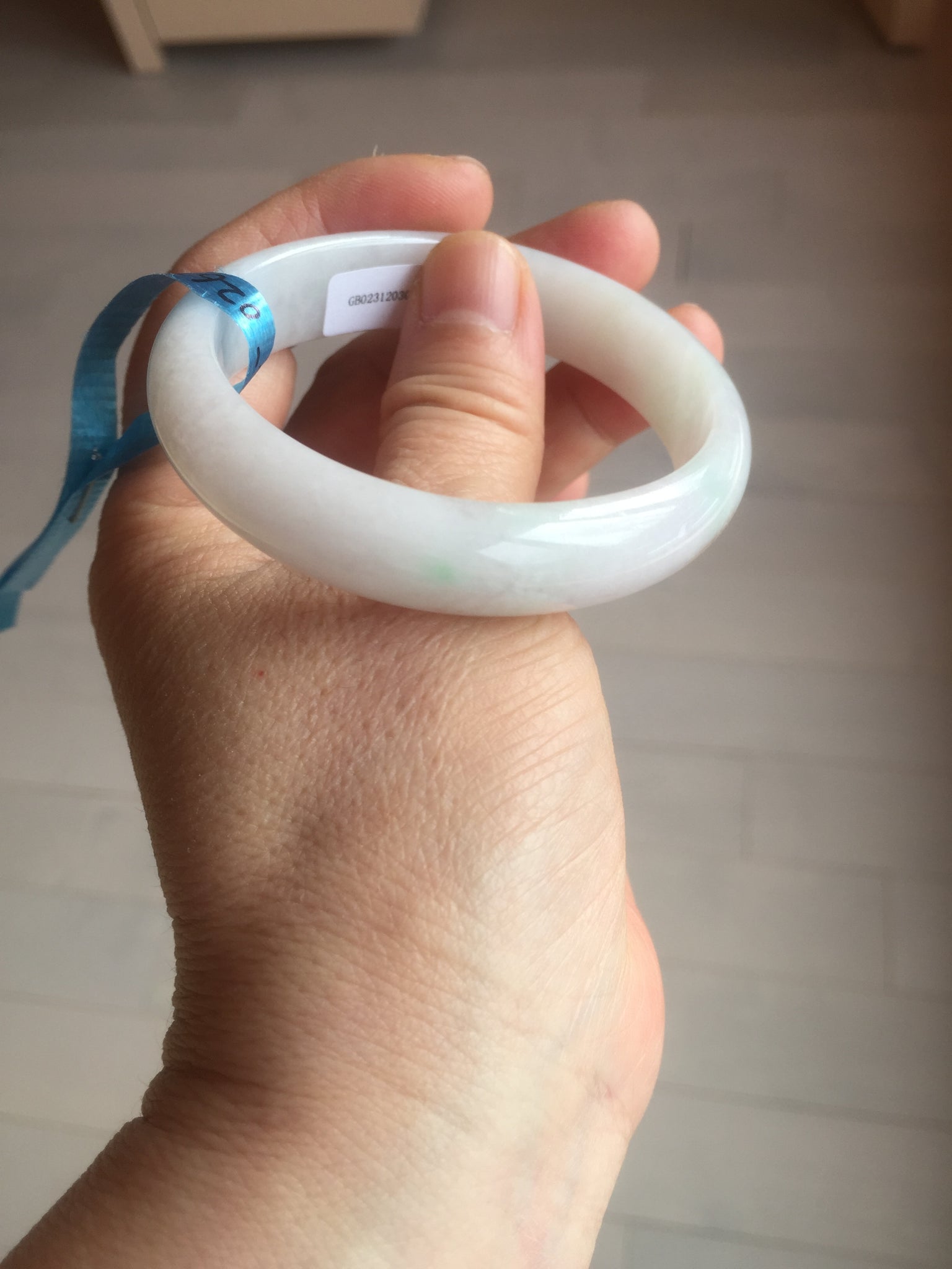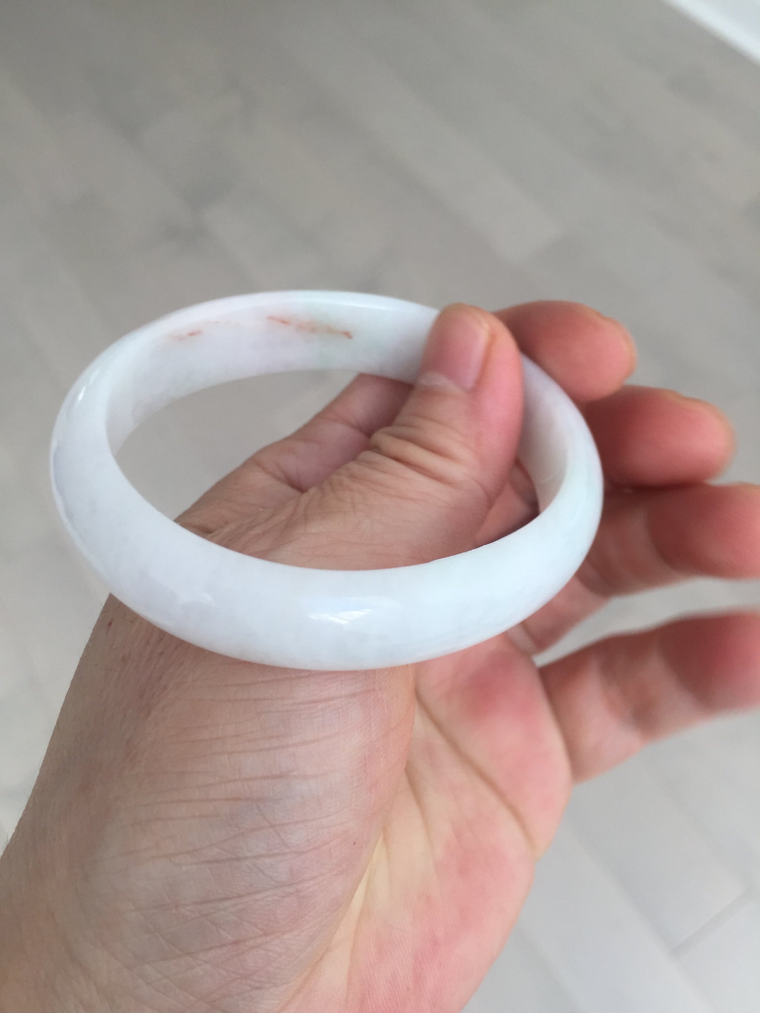 Imperfections: One crack. Some scratches, hairlines, rough surfaces, cotton lines, and cotton spots. It is not transparent or watery.