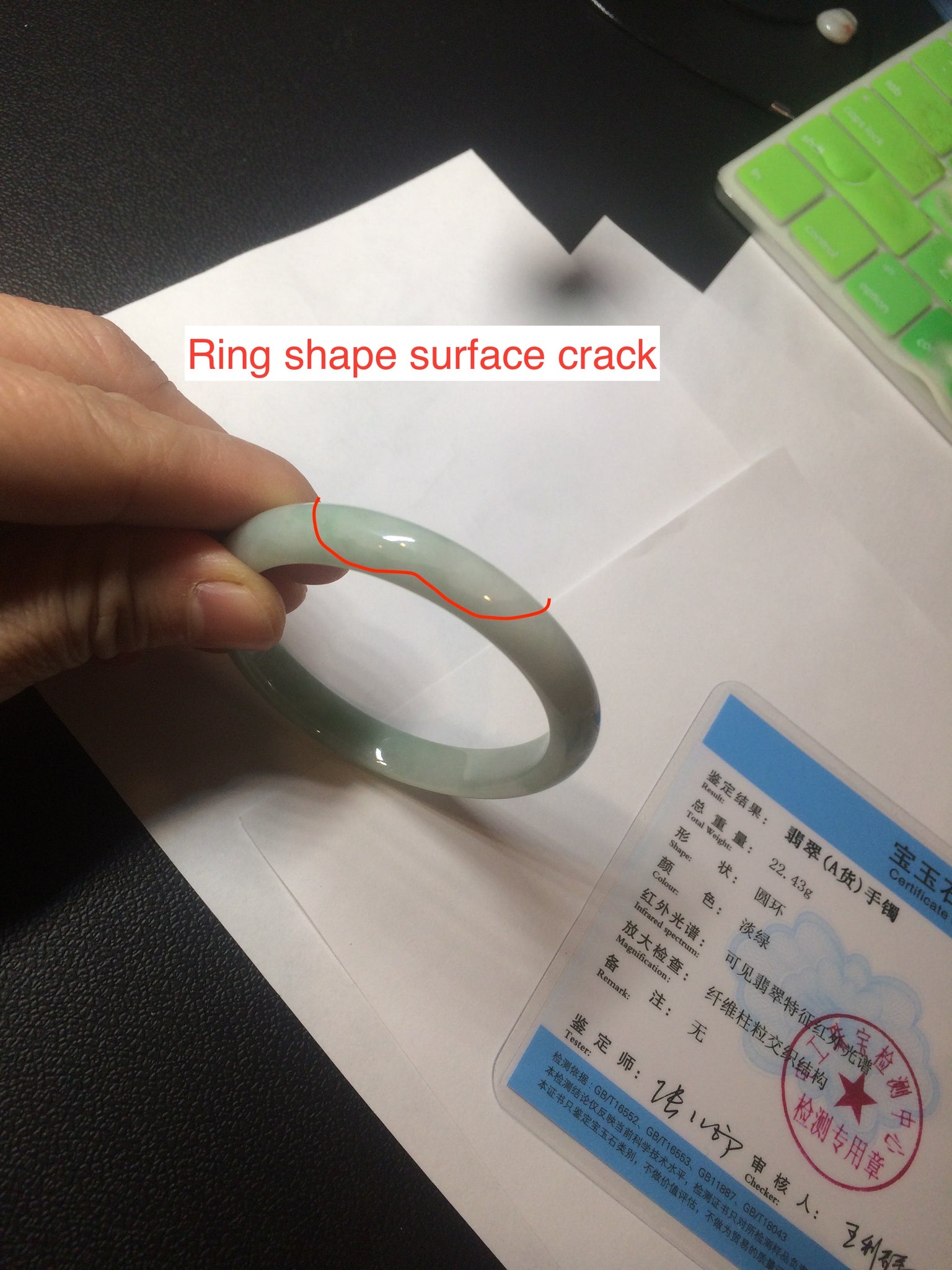 Flaws: One ring-shaped surface crack. One Cotton area.