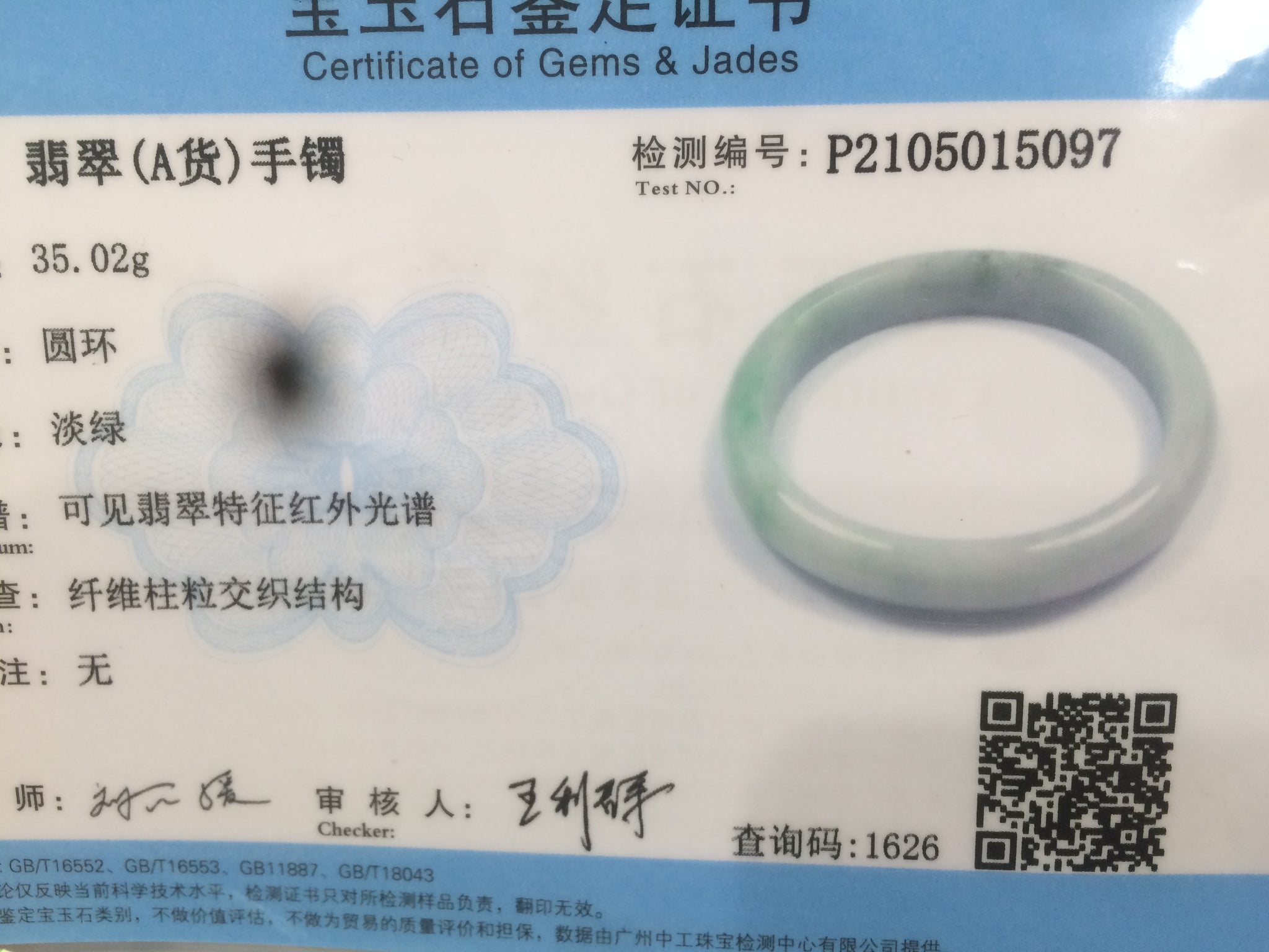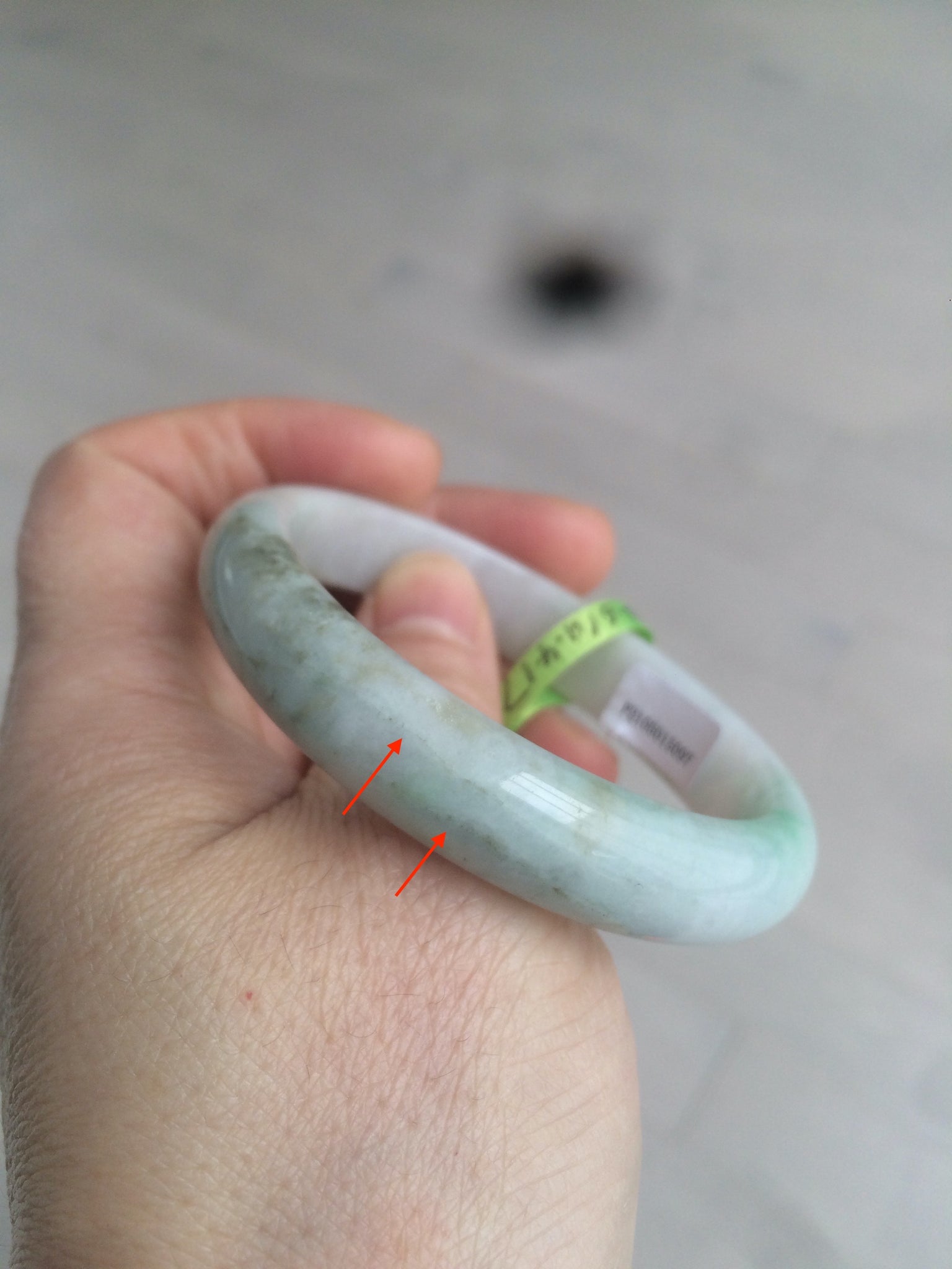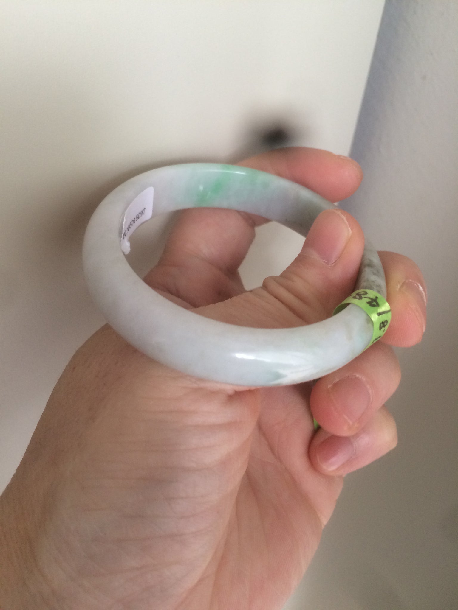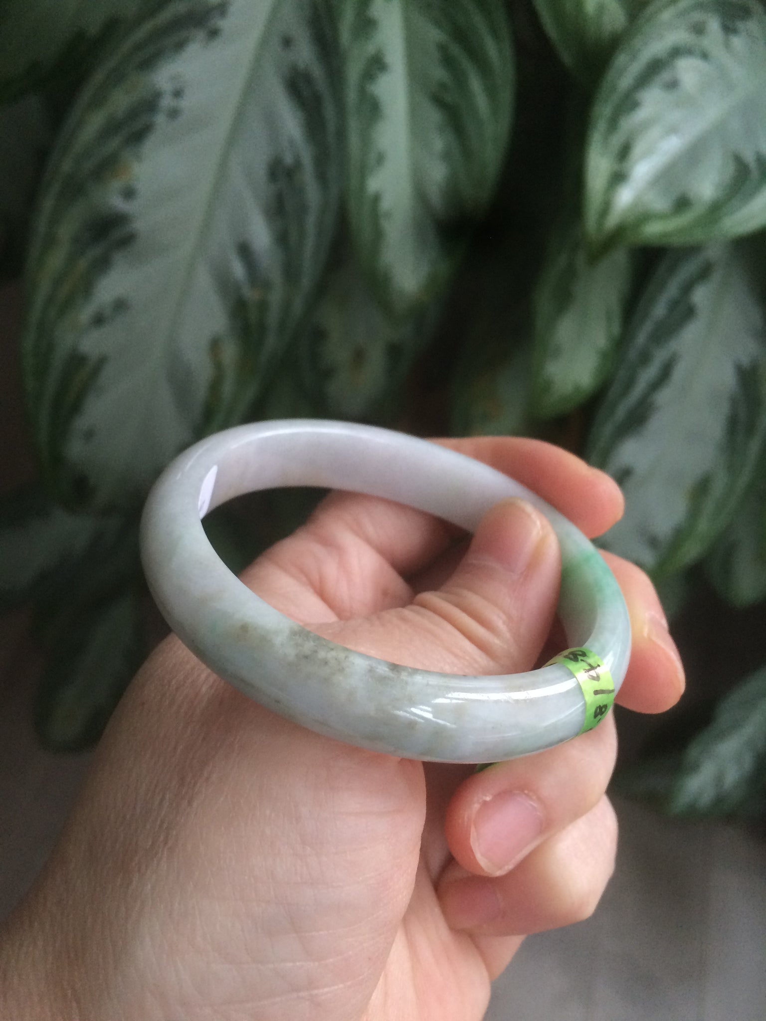 51mm Certified Type A 100% Natural sunny green/black oval Jadeite Jade bangle AJ9-5097