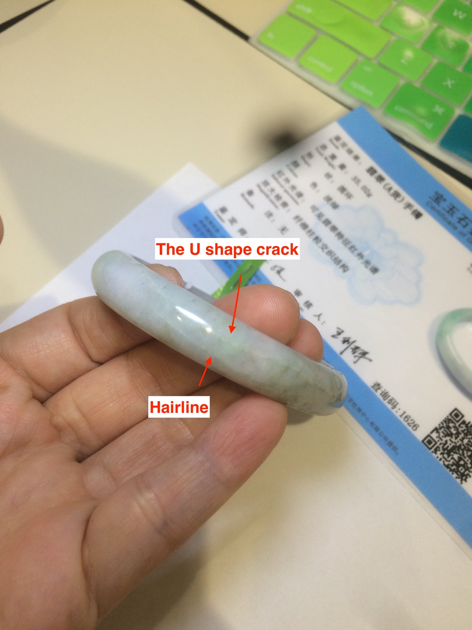 One U shape crack(I feel it like a cotton line or dirty line. Finger can feel a little bit of it just because the texture difference). Some hairlines. Black spots and areas. The texture is not so fine.