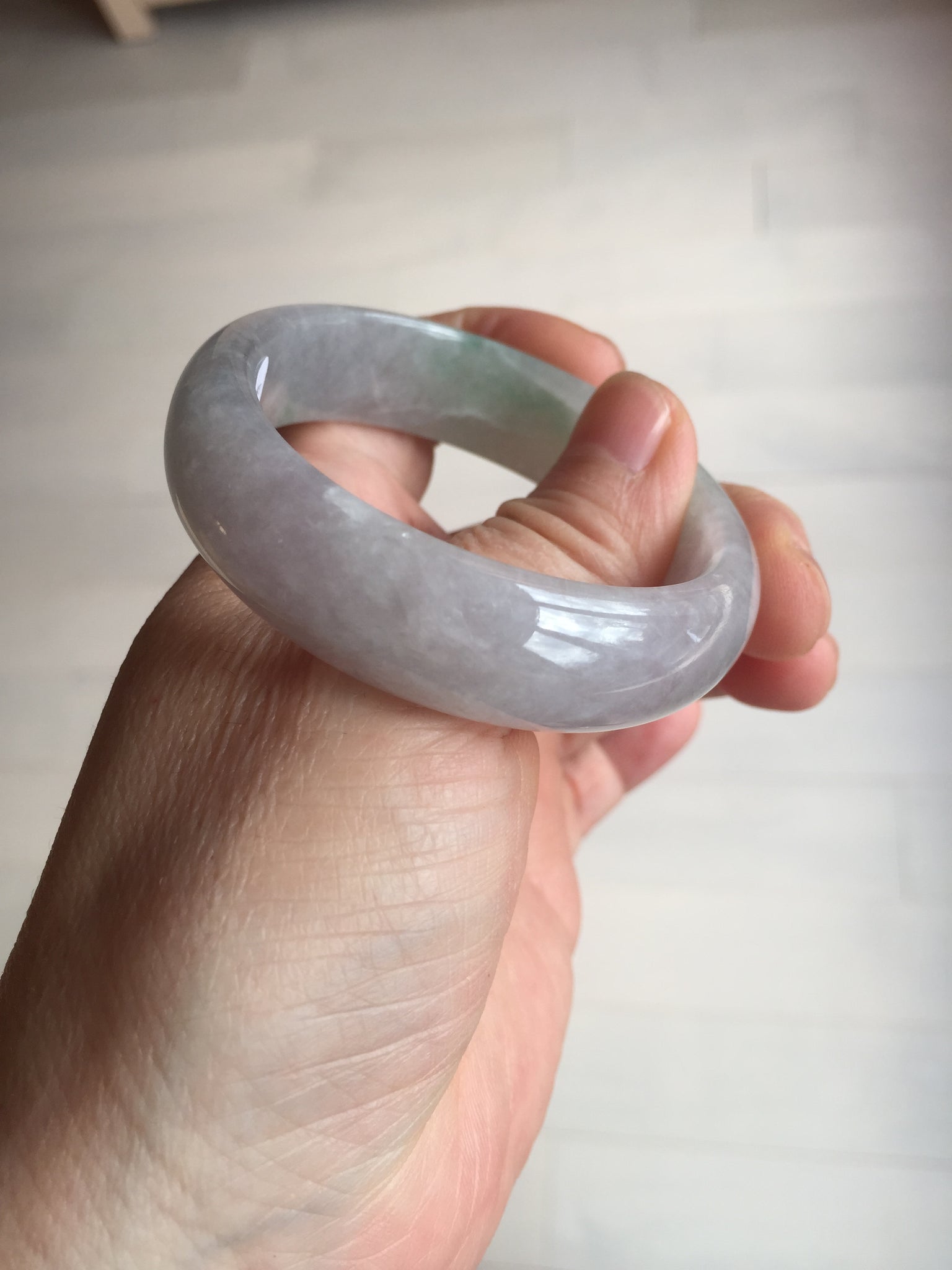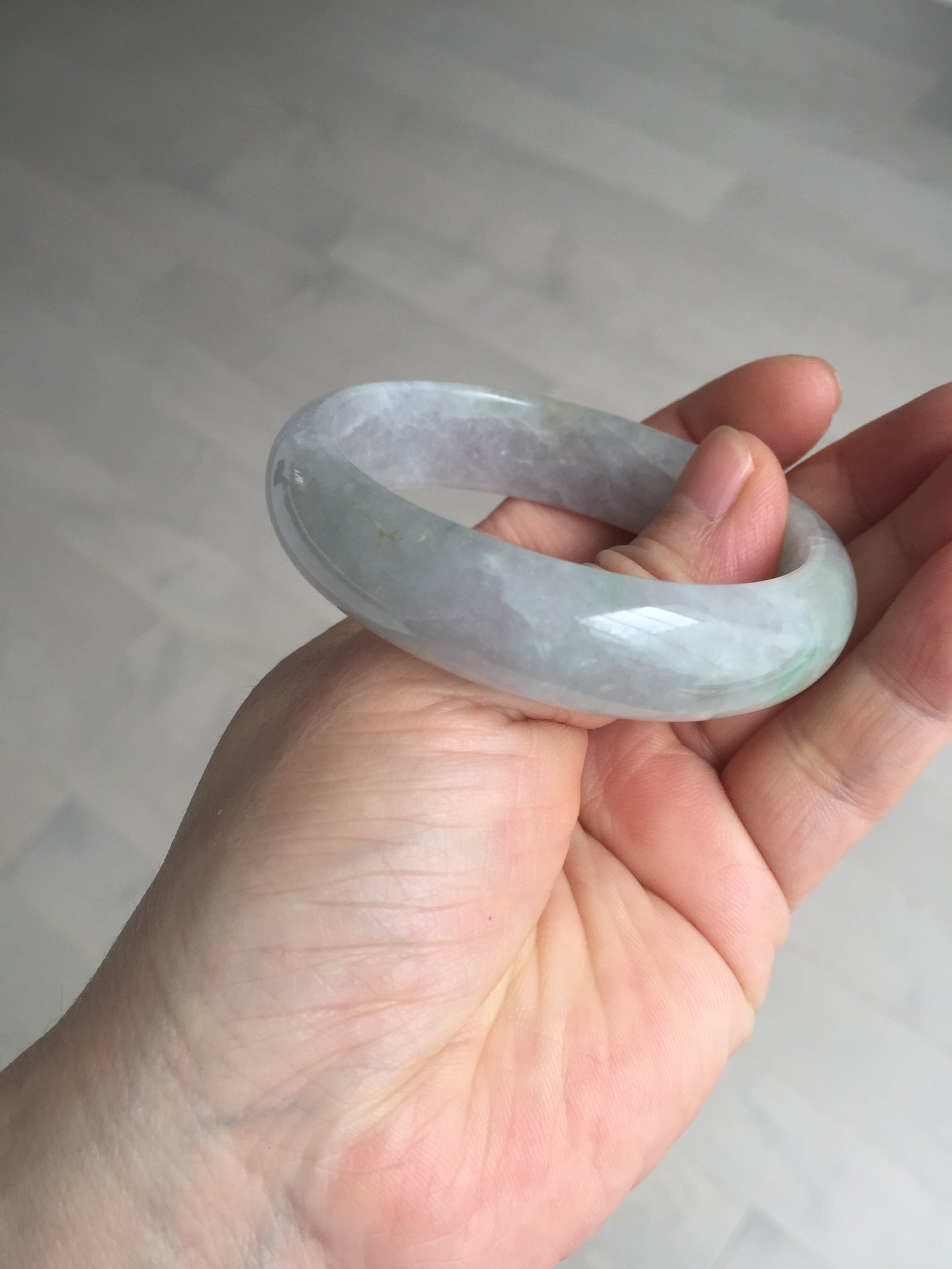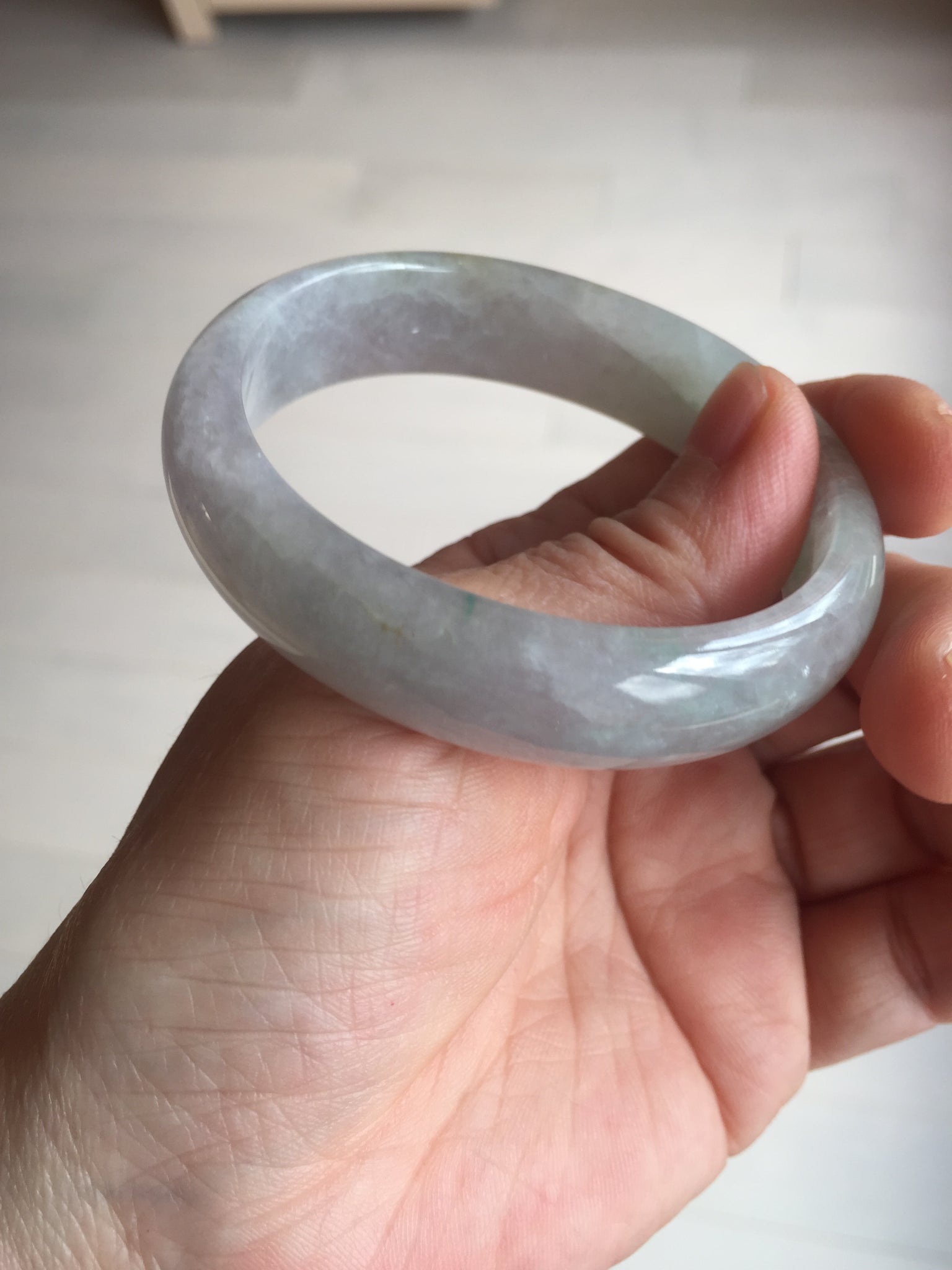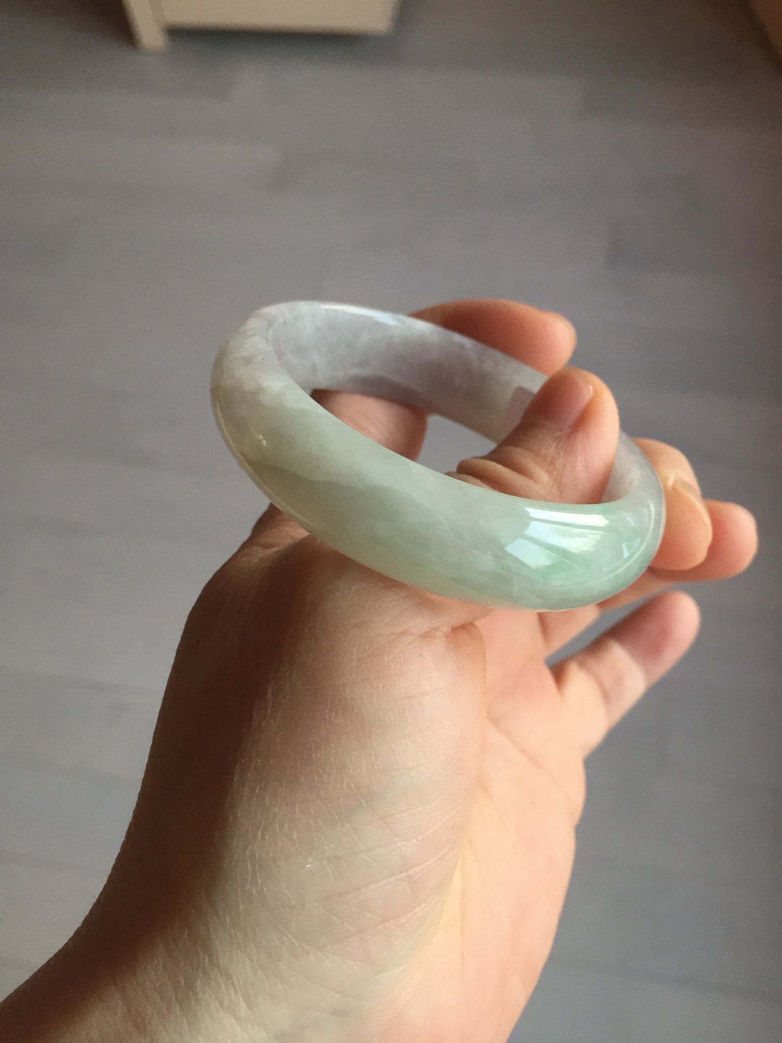 Some cracks and the bangle is solid (guaranteed!). Some hairlines or cotton lines, cotton spots, and cotton areas. The purple is lighter than in the photos due to the purple color always being more camera-friendly.